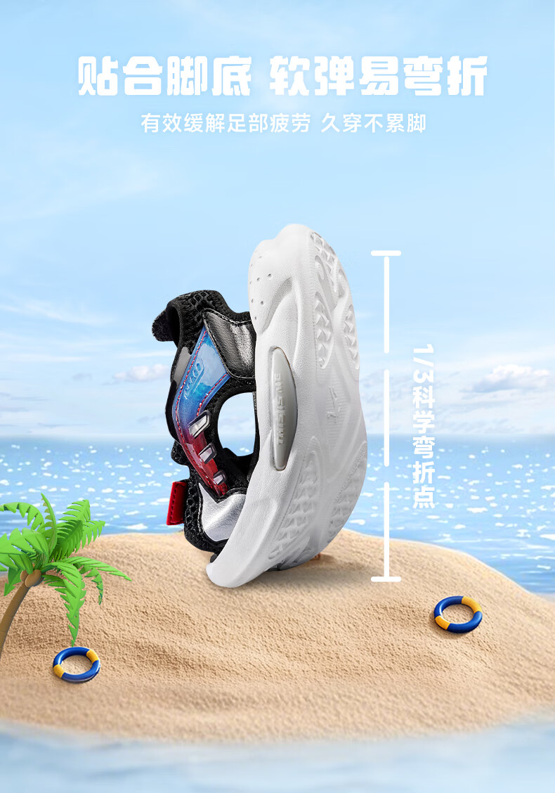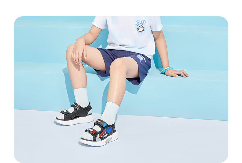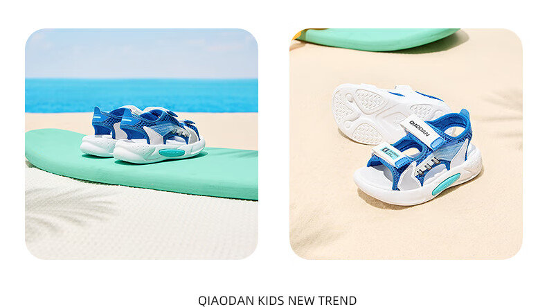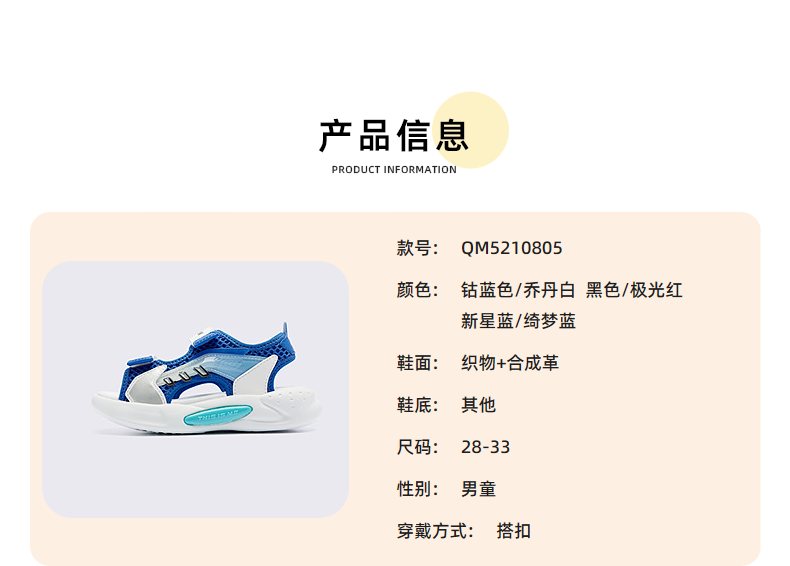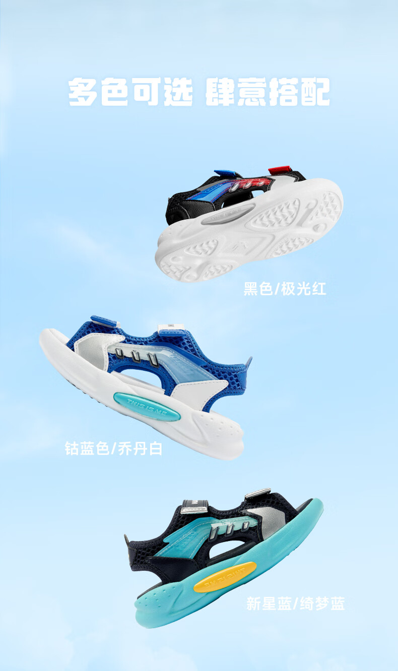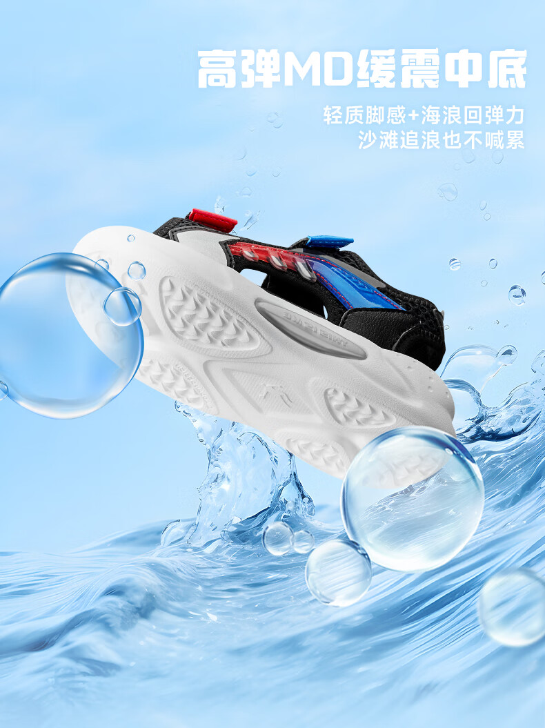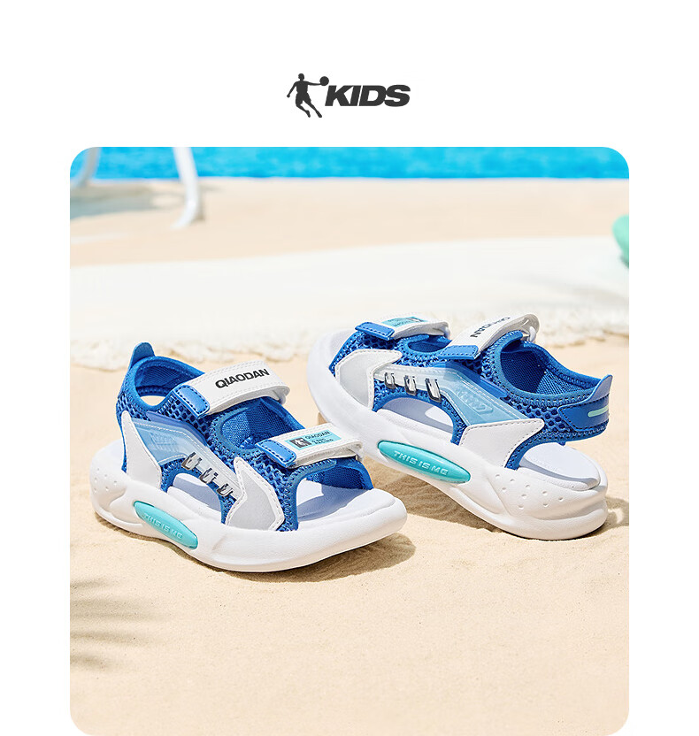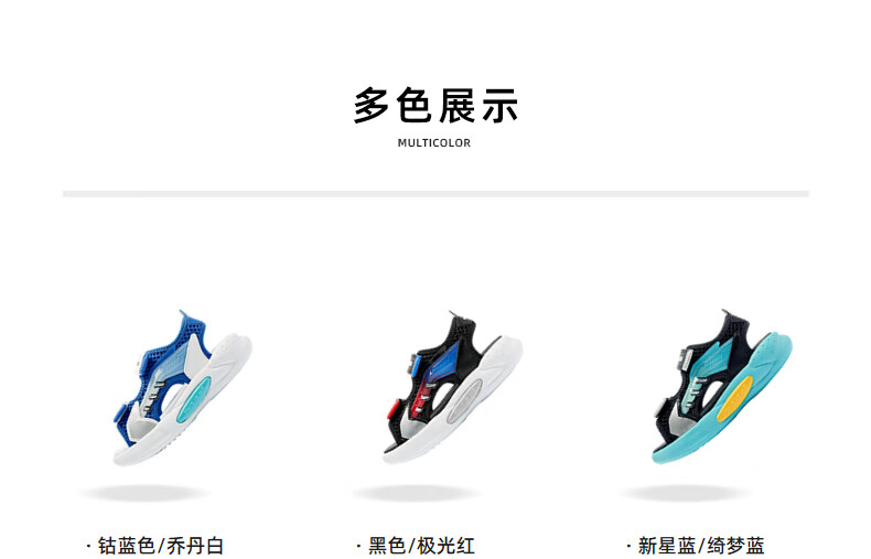 Jordan QIAODAN children's shoes children's sandals 2025 summer new baby boy breathable non-slip Velcro children's sports shoes black/aurora red 30