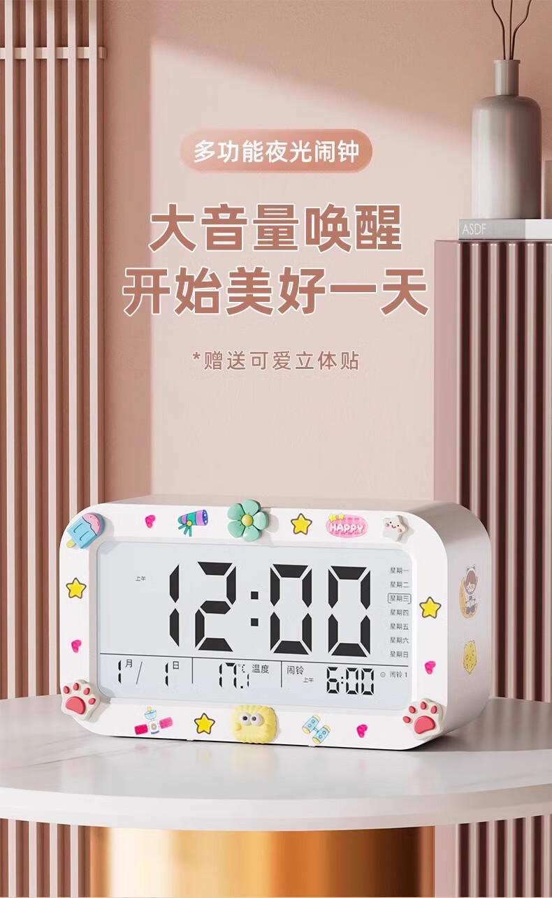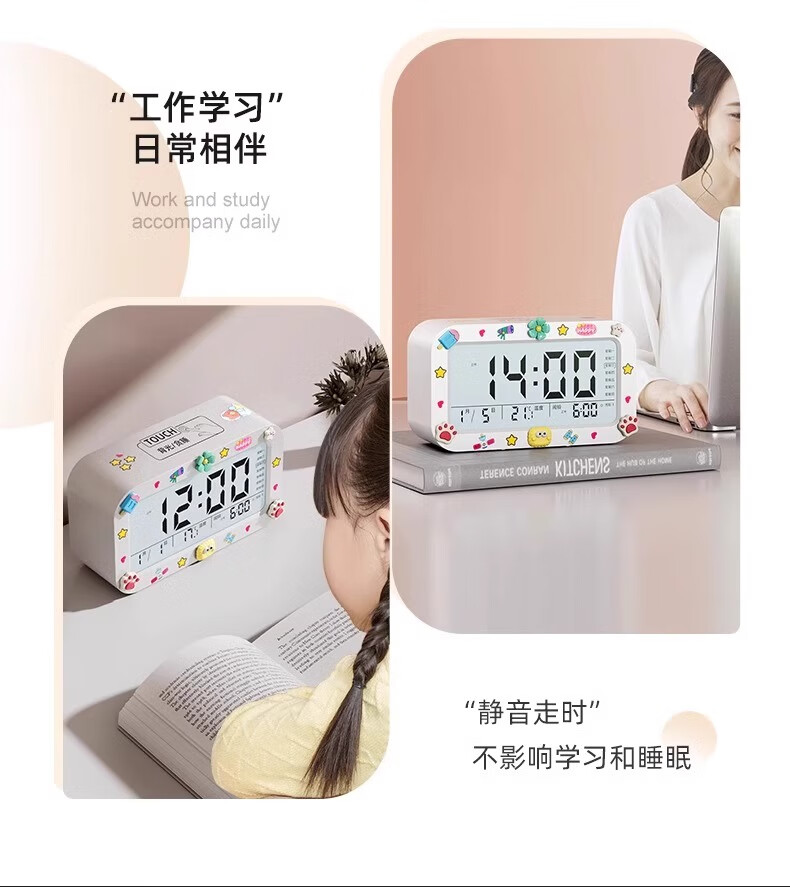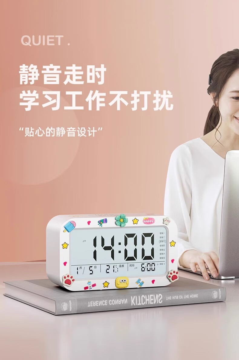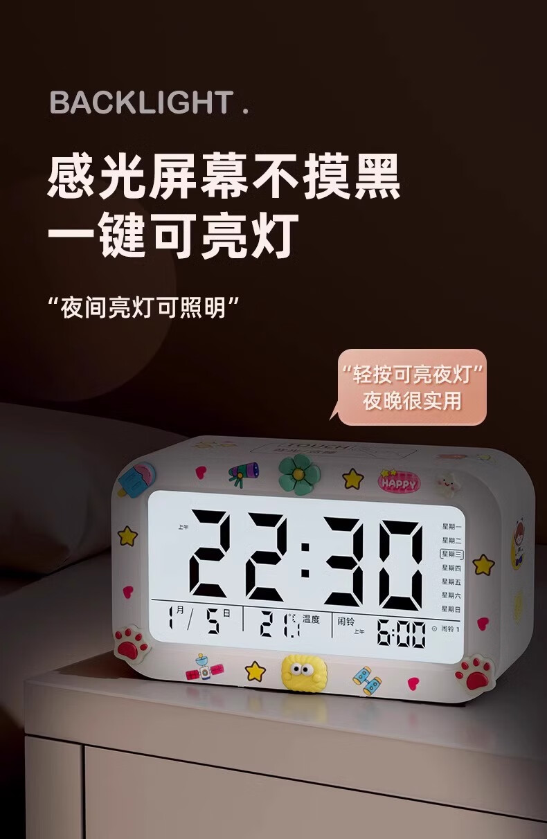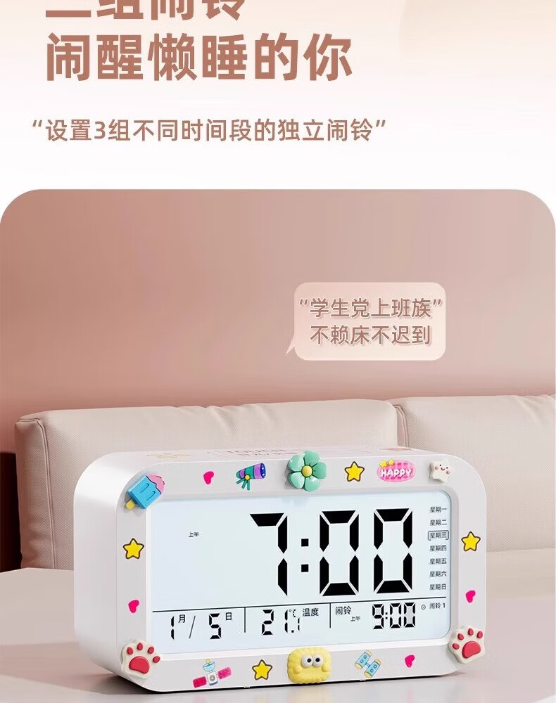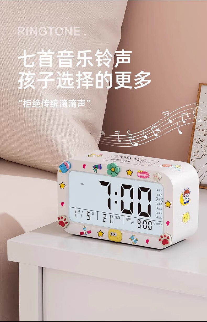 Alarm clock student-specific smart 2025 new wake-up artifact powerfully wakes up children boys and girls electronic clock creative luminous desktop bedside rechargeable digital clock rechargeable model - pink voice broadcast + three sets of alarms