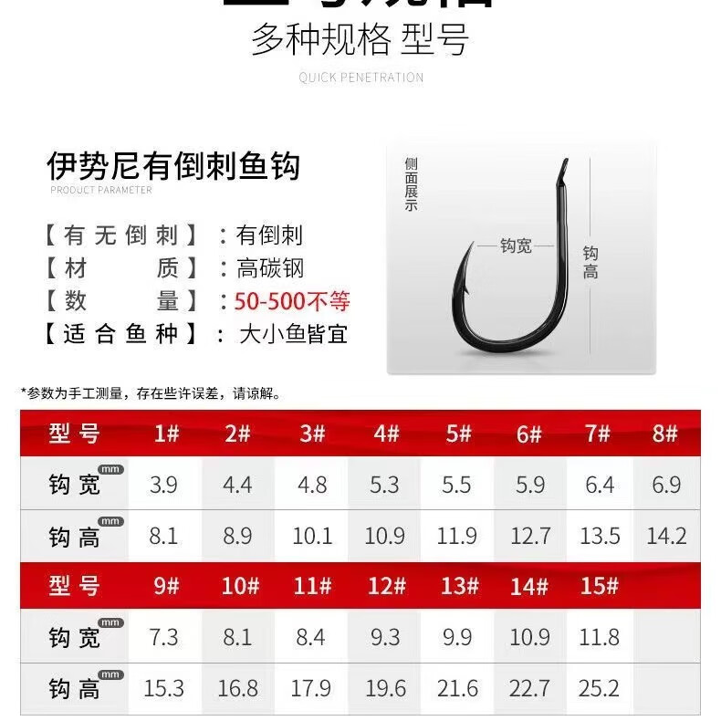 Collection of black needle Iseni fish hooks, bulk barbed fish hooks, small hooks, imported fishing hooks, fishing gear, Iseni barbs, 50 pieces, No. 3