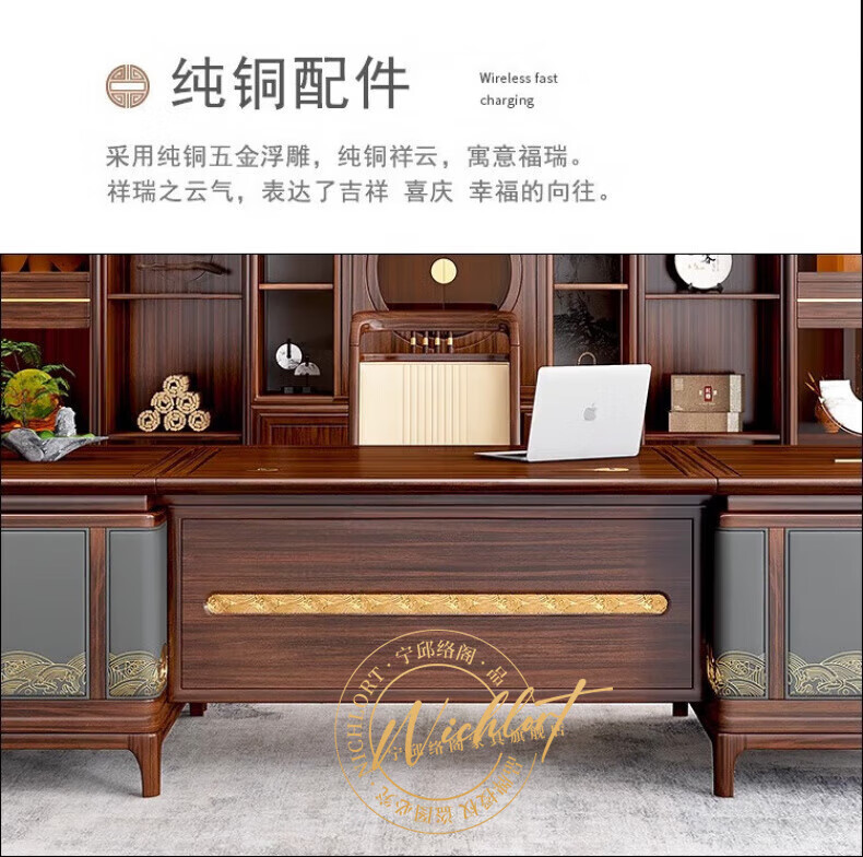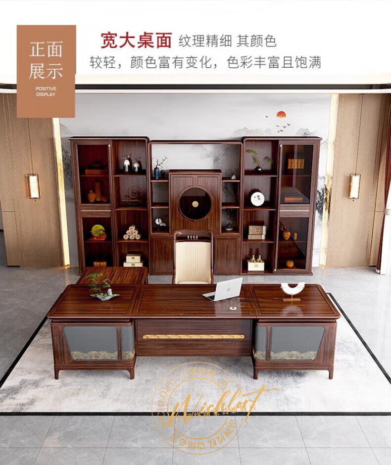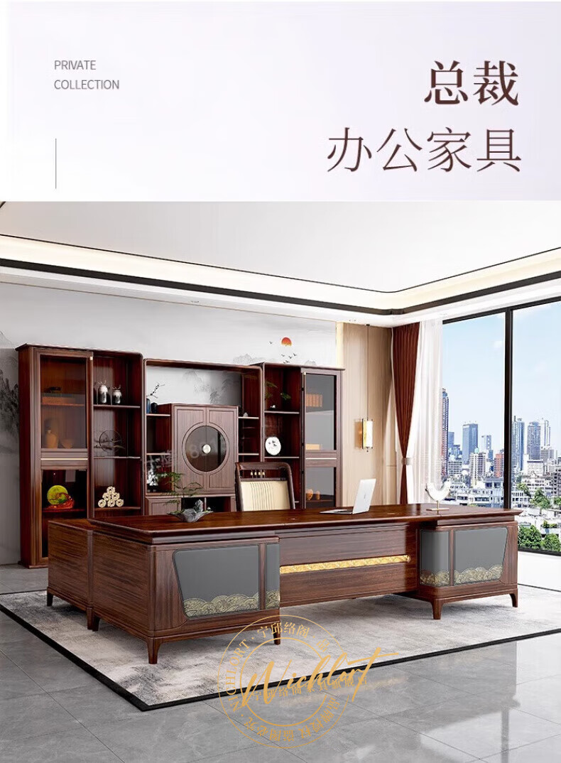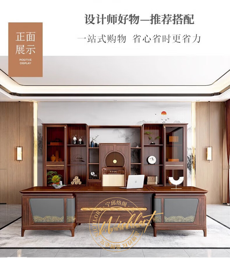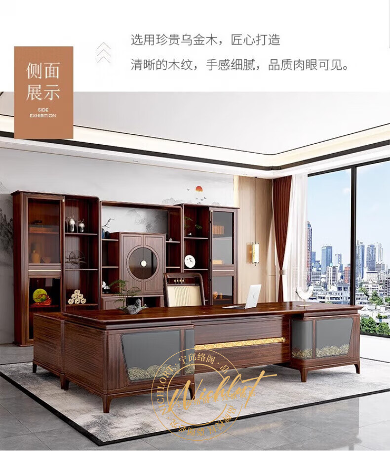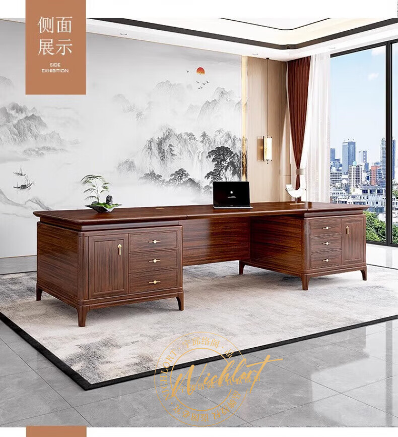 Ningqiu Luoge (NICHLORT) new Chinese-style solid wood boss desk office desk light luxury high-end executive desk modern simple president desk Chinese-style desk 3.0 meters office desk ebony wood