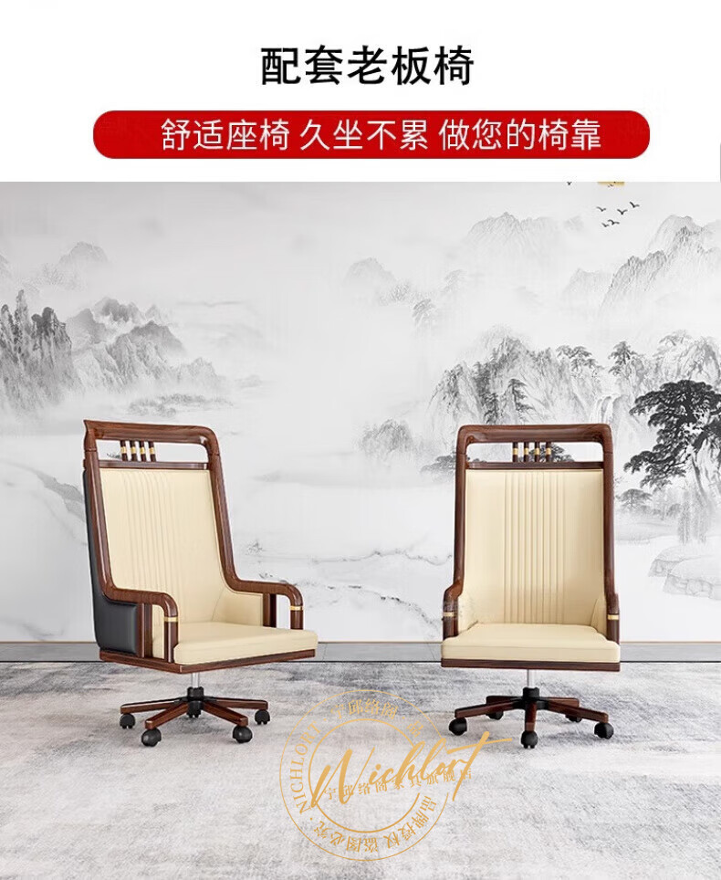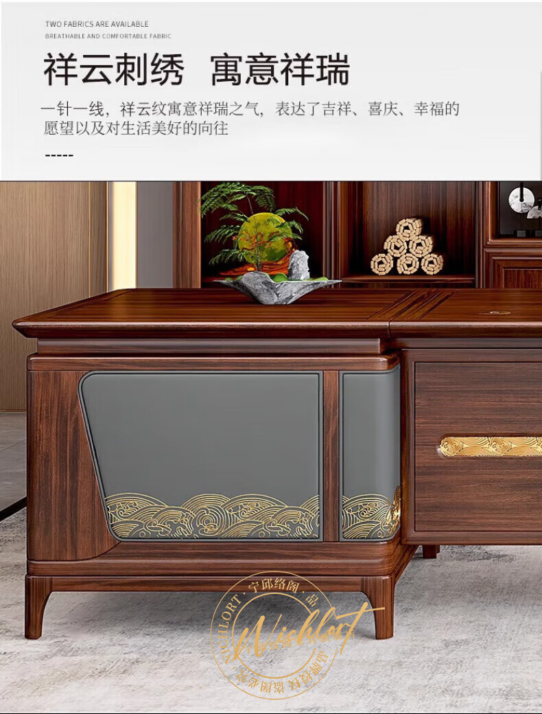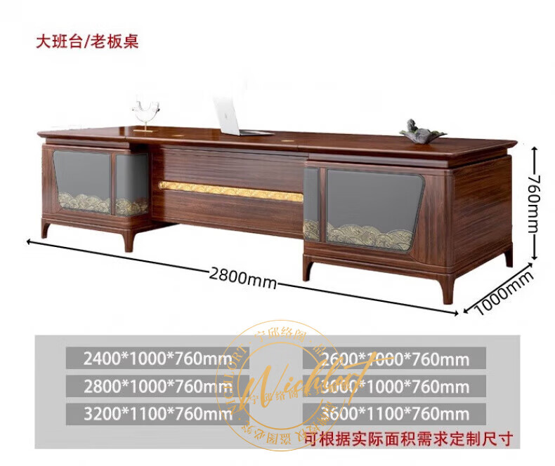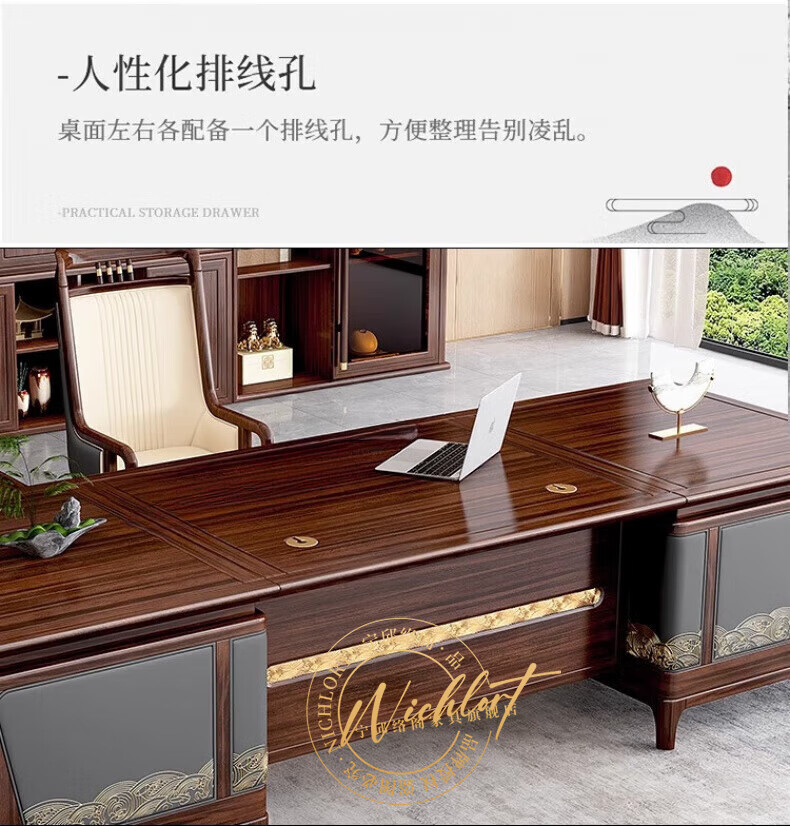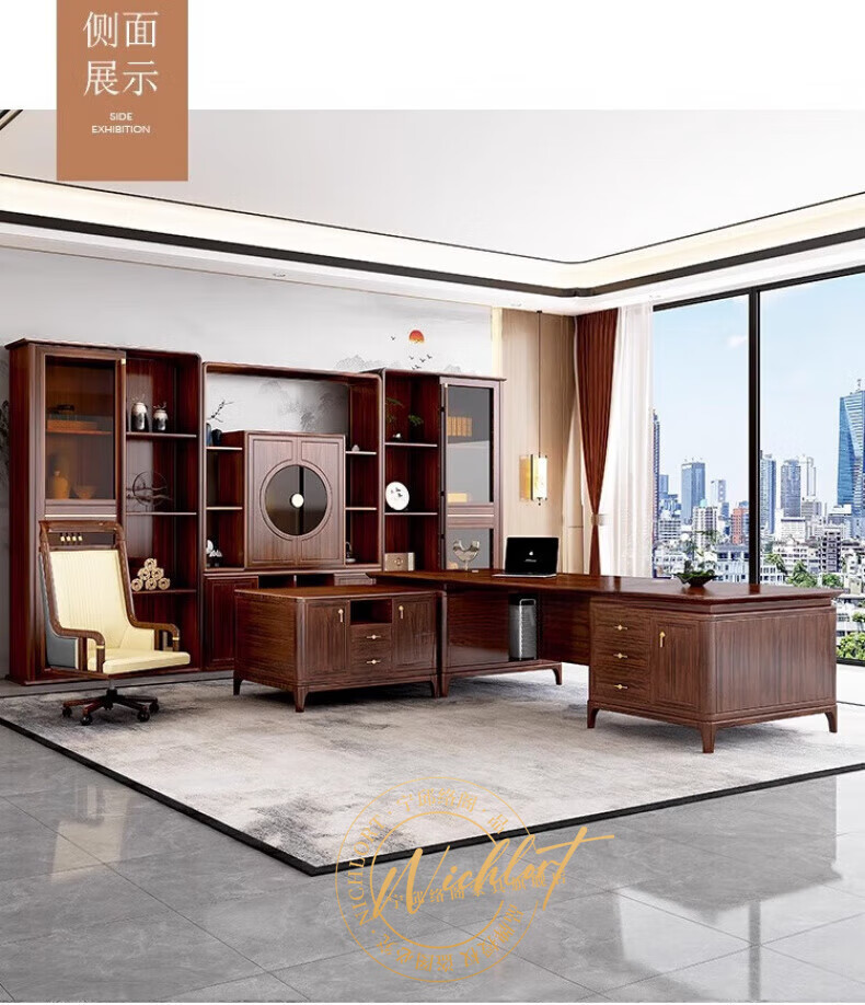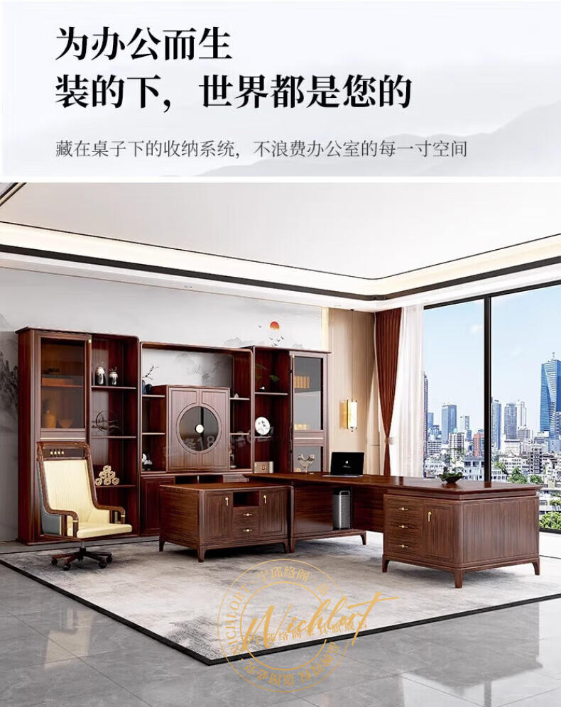 Ningqiu Luoge (NICHLORT) new Chinese-style solid wood boss desk office desk light luxury high-end executive desk modern simple president desk Chinese-style desk 3.0 meters office desk ebony wood