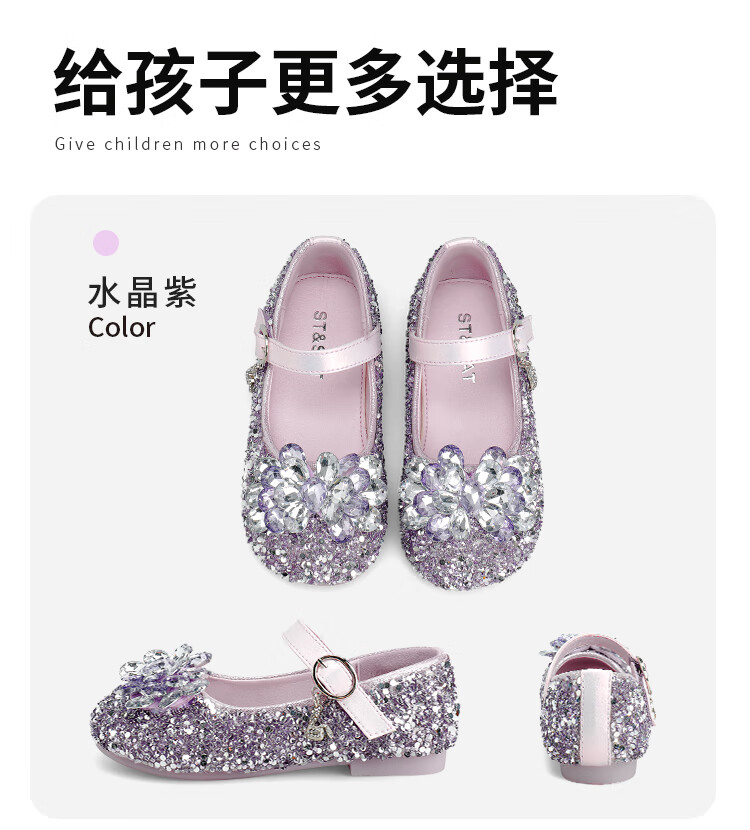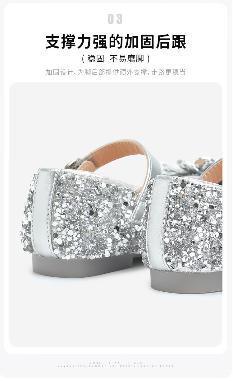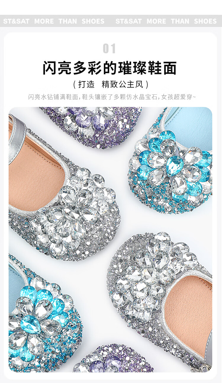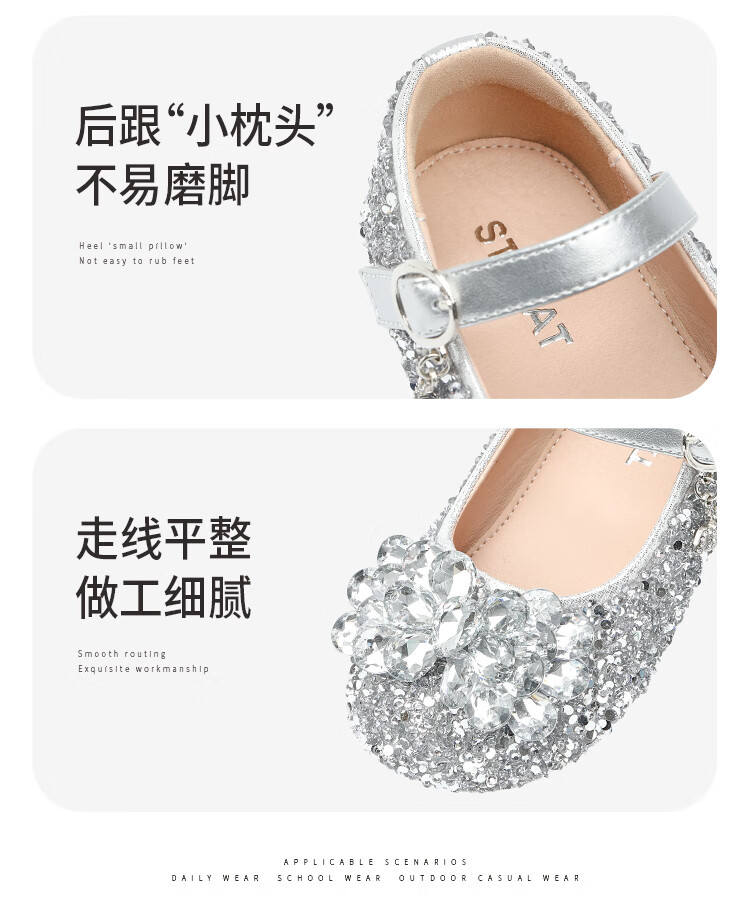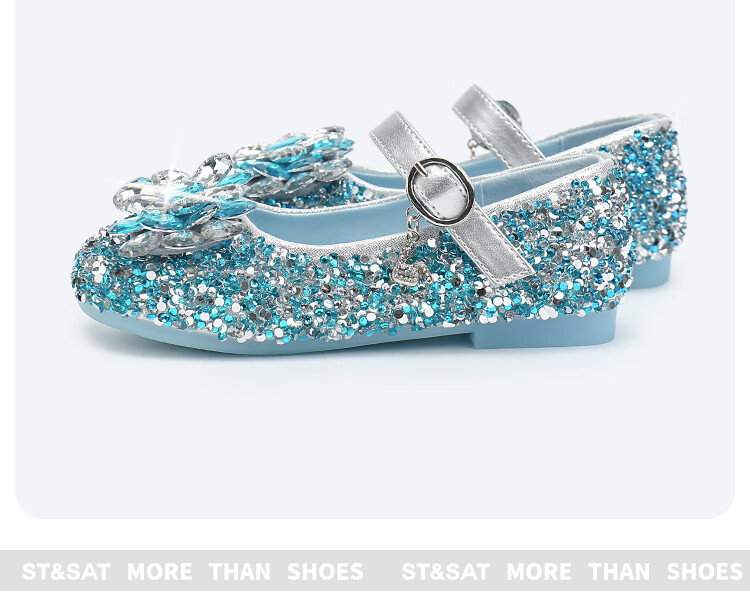 Saturday (St&Sat) children's shoes, girls' shoes, children's fashion small leather shoes, new spring and autumn girls' performance flat crystal shoes, glazed silver 31, inner length about 19.4cm