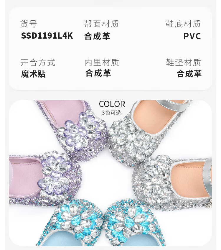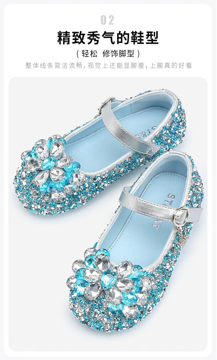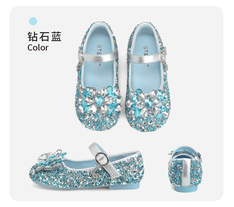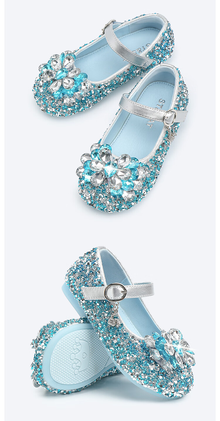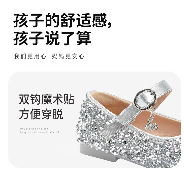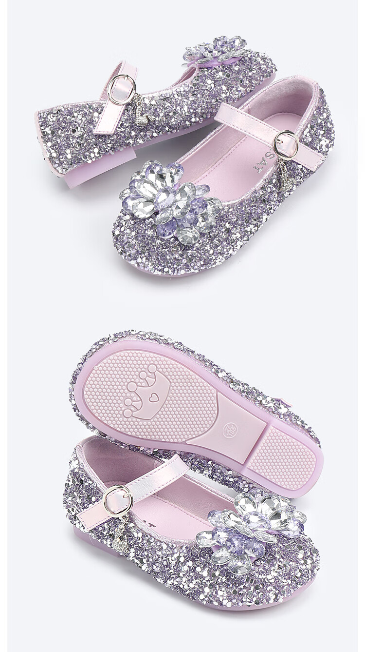 Saturday (St&Sat) children's shoes, girls' shoes, children's fashion small leather shoes, new spring and autumn girls' performance flat crystal shoes, glazed silver 31, inner length about 19.4cm