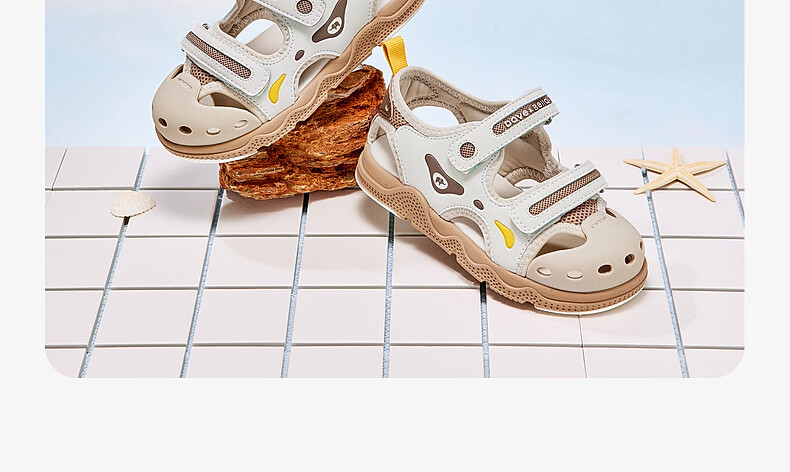 DAVE&BELLA children's mesh sandals summer non-slip boys toddler shoes children's casual shoes fashionable baby boy shoes khaki ready stock 26