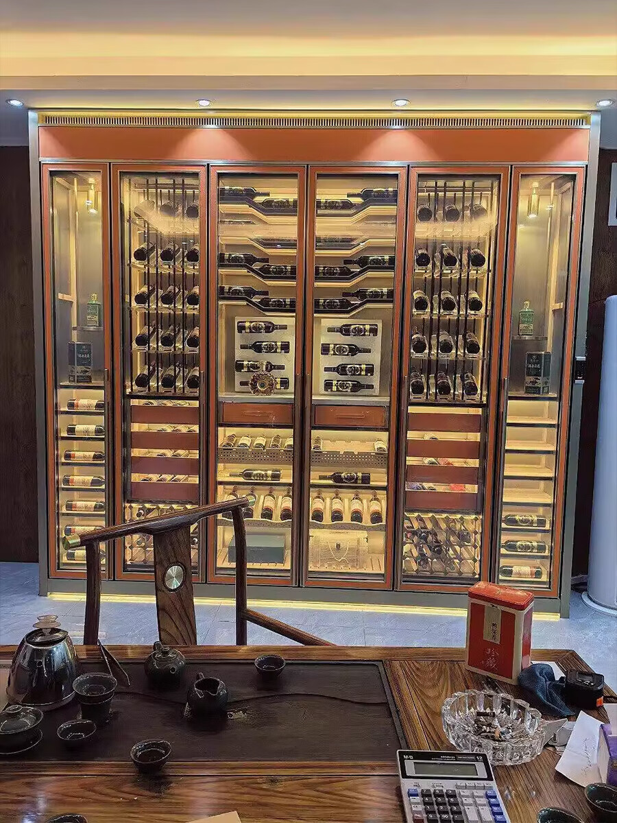 Shuangyou high-end customized stainless steel constant temperature wine cabinet villa red wine rack white wine cellar decoration cigar constant humidity glass red wine cabinet red