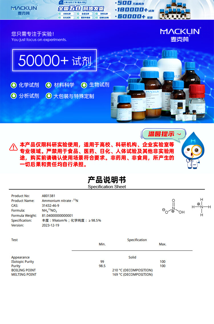 Macklin Ammonium Nitrate - 15 N CAS 31432-46-9 A801381-250mg