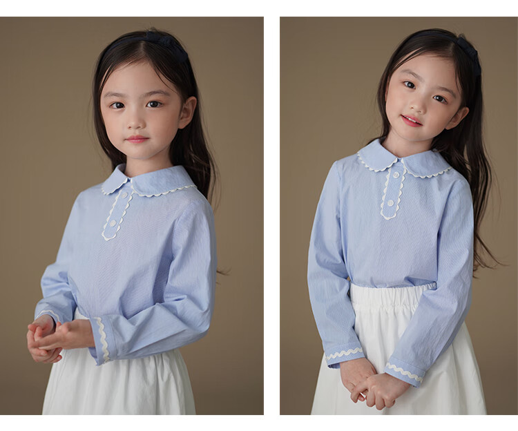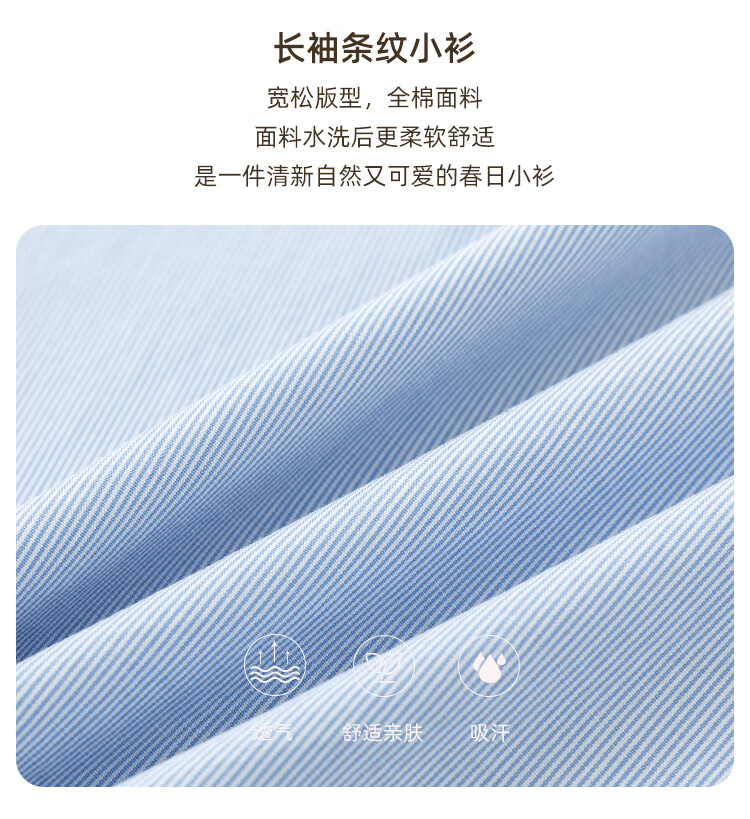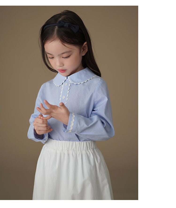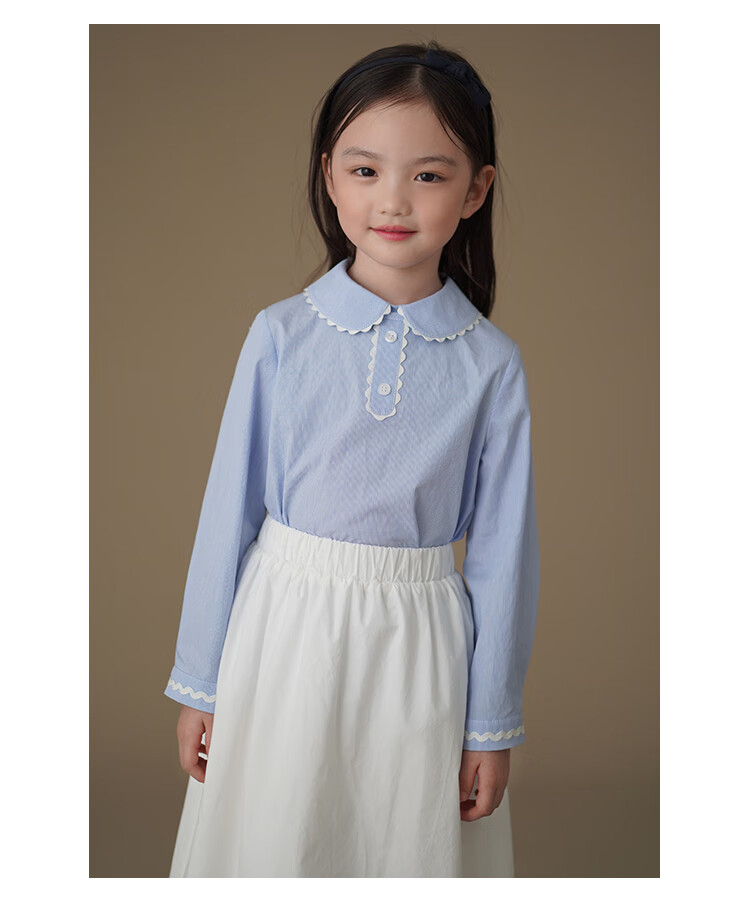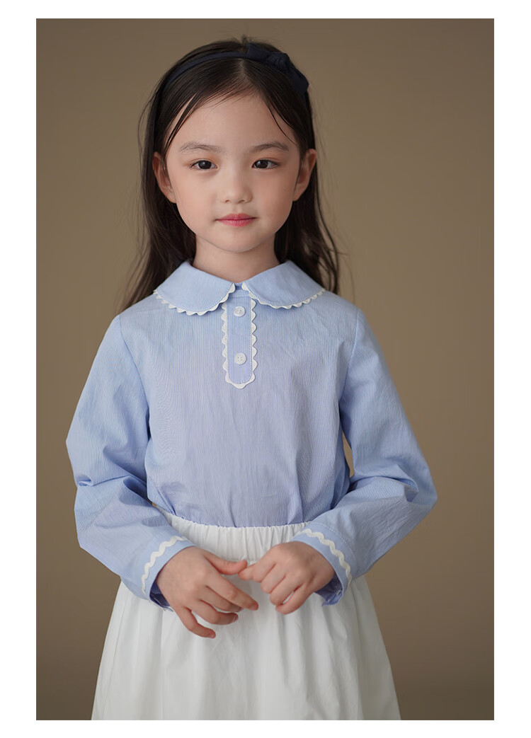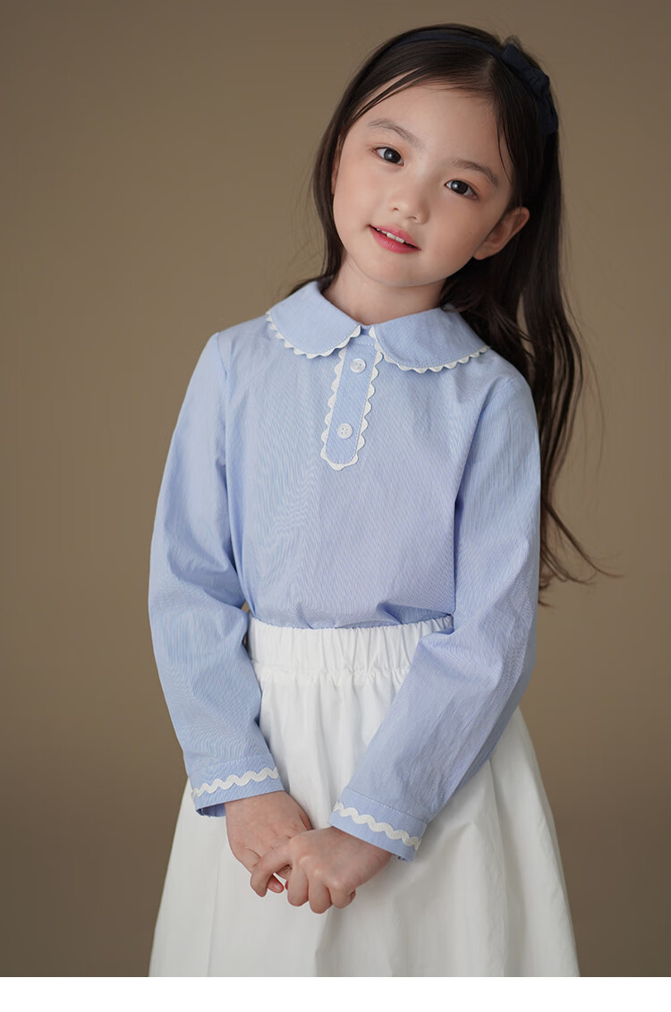 Hajihaji children's clothing spring and autumn children's long-sleeved tops blue skin-friendly cotton striped shirts girls small shirts medium and large children blue 170