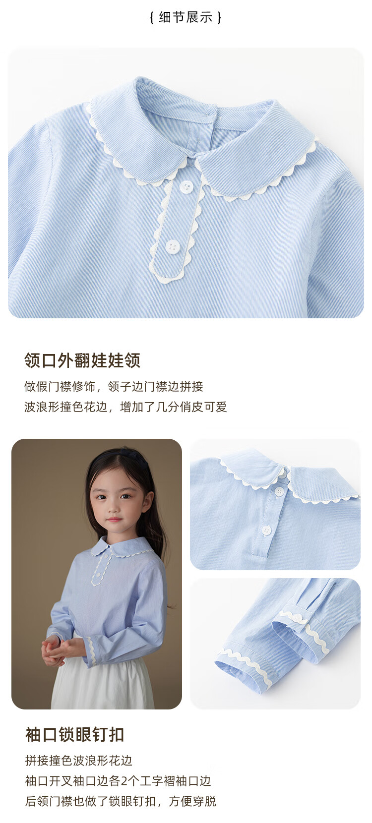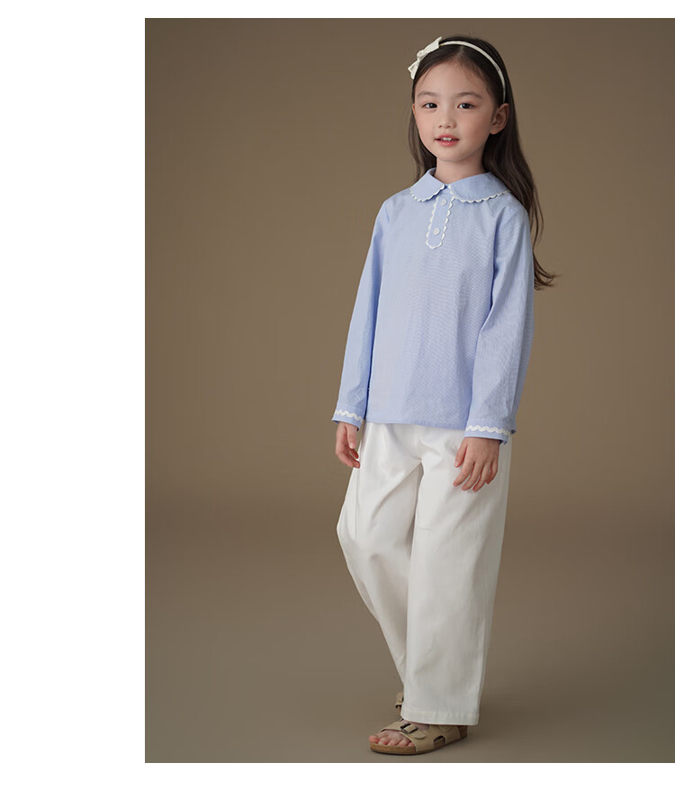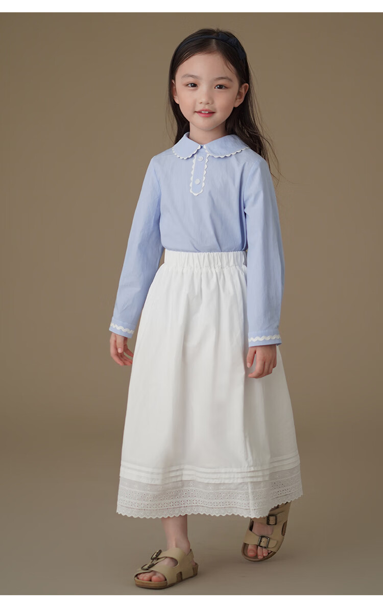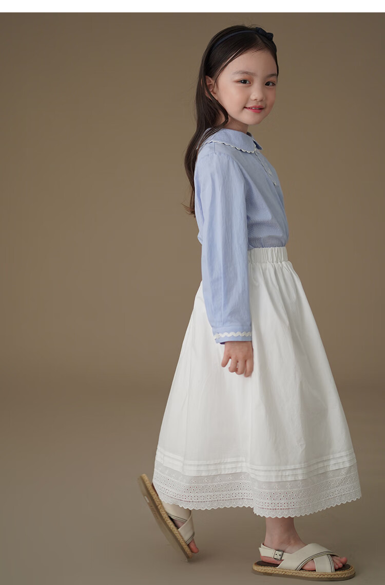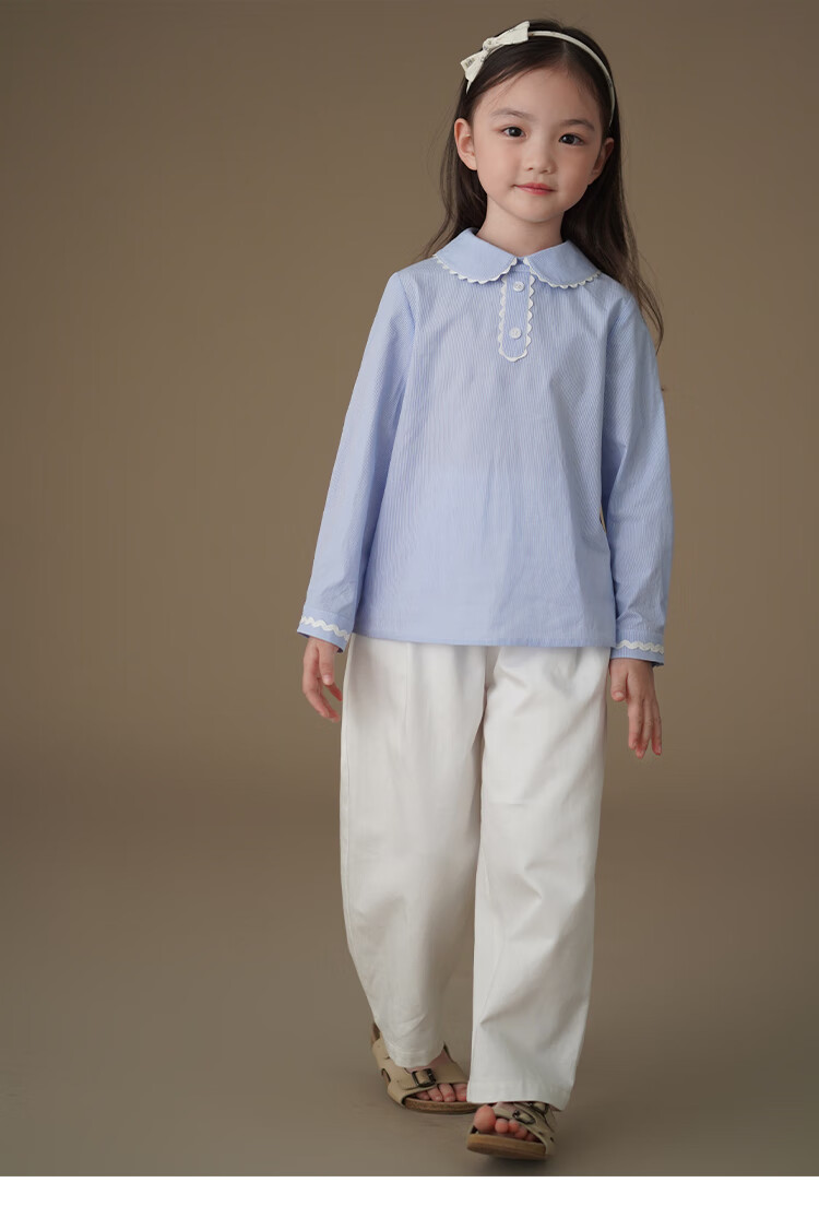 Hajihaji children's clothing spring and autumn children's long-sleeved tops blue skin-friendly cotton striped shirts girls small shirts medium and large children blue 170