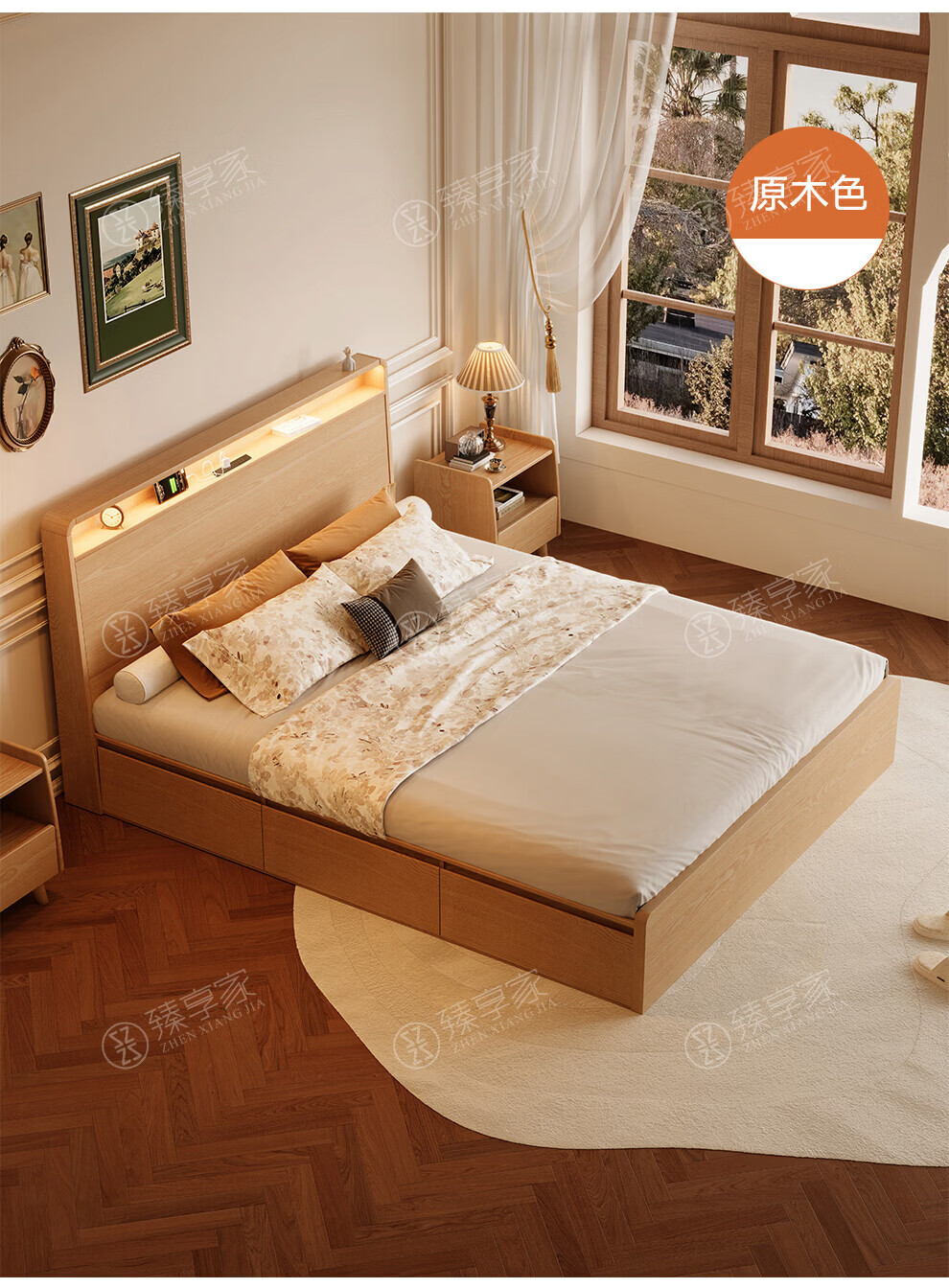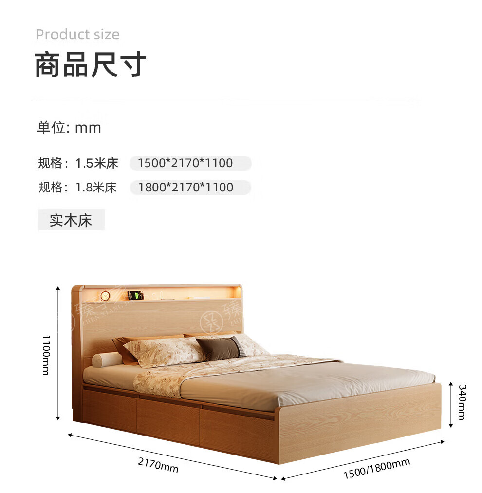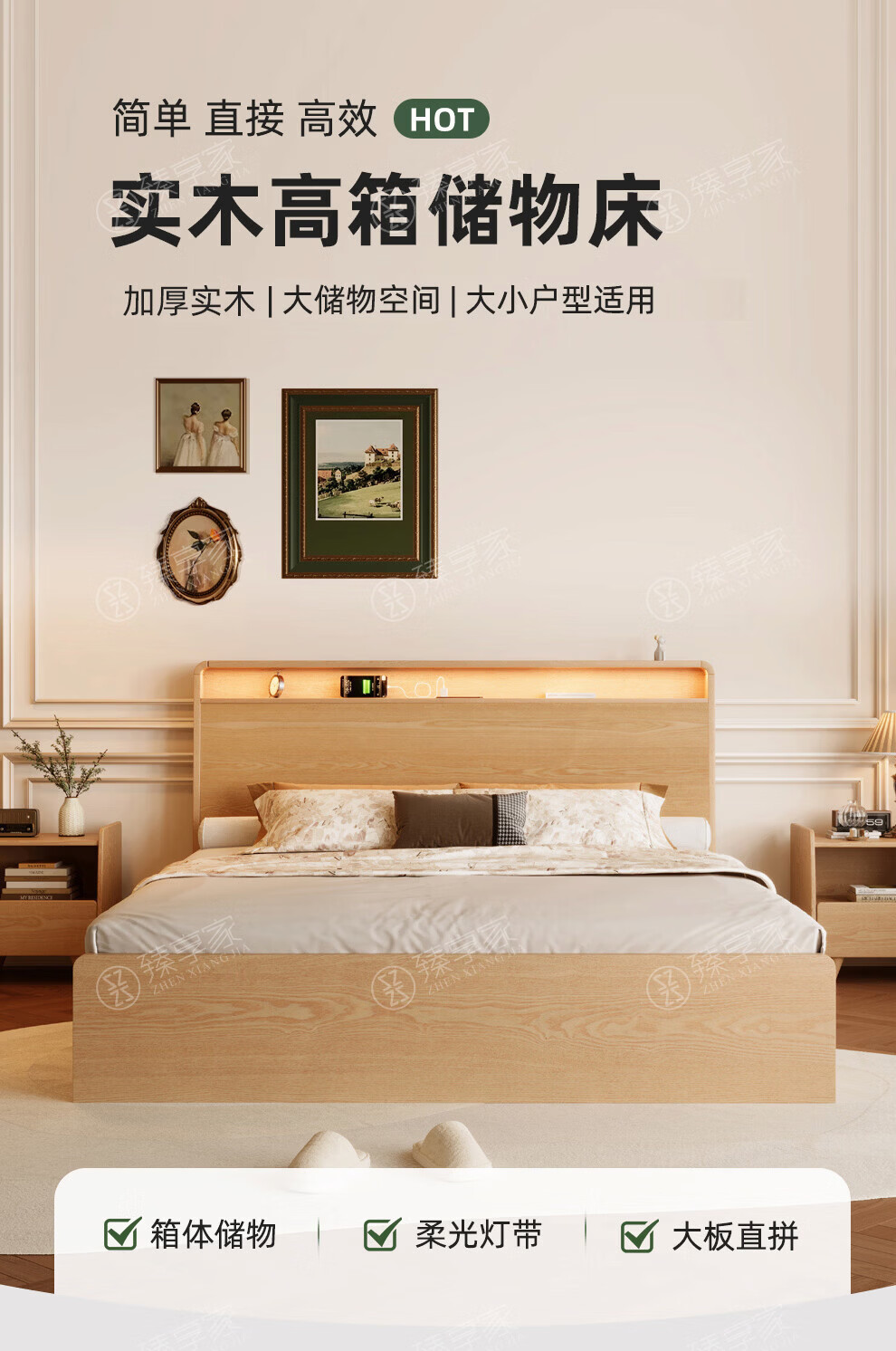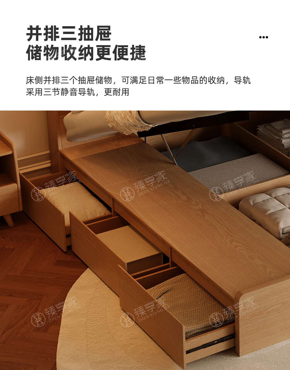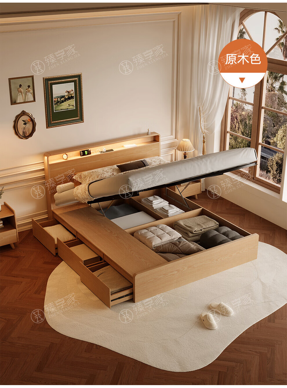 Zhenxiangjia all solid wood bed double bed modern simple oak high box bed air pressure storage bed with drawer bed bedroom furniture solid wood color | oak bed (single bed) luxury version thickened row frame 1.8*2.0m air pressure structure