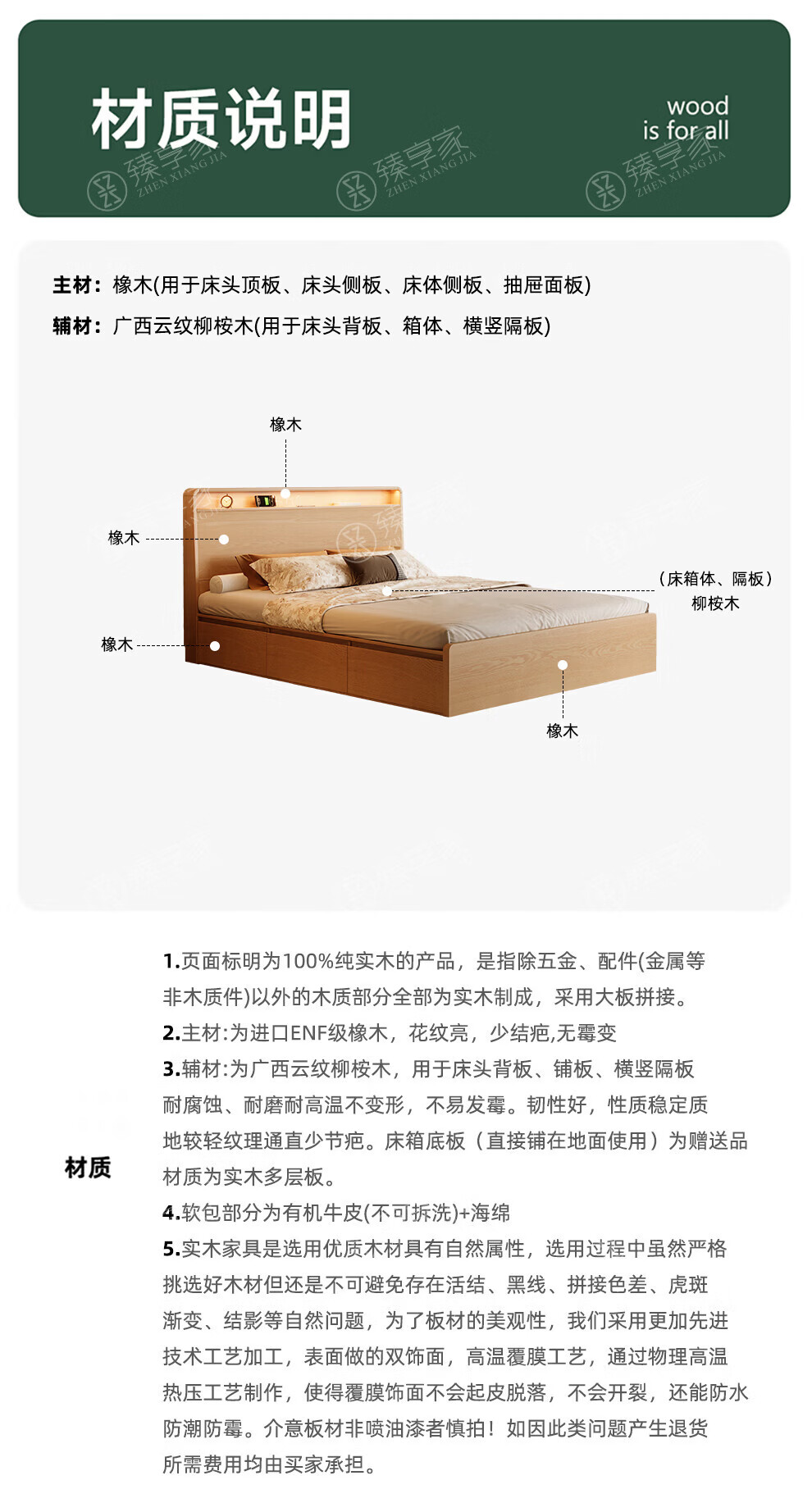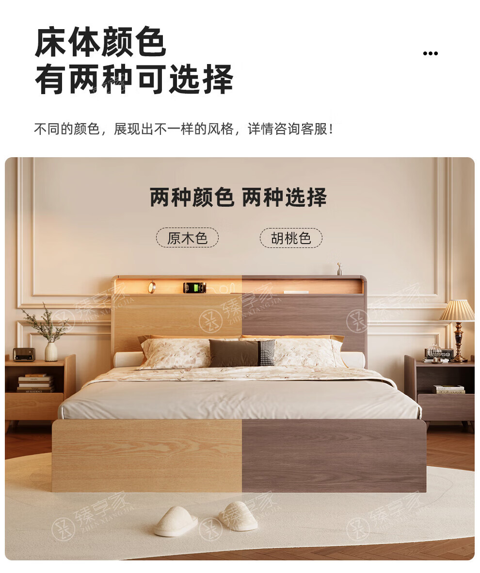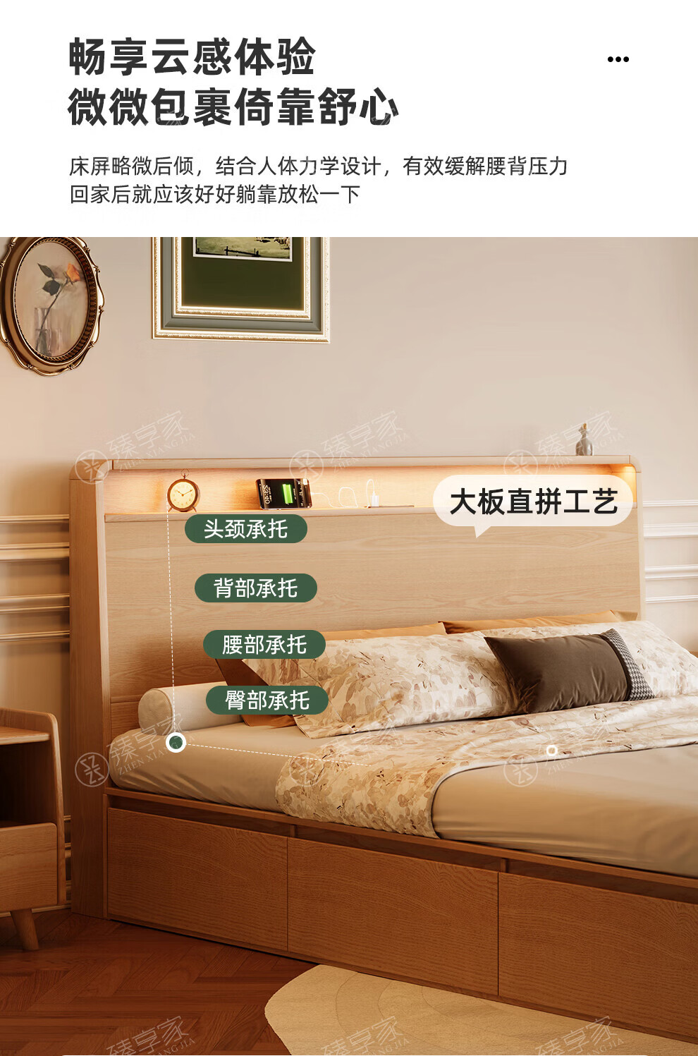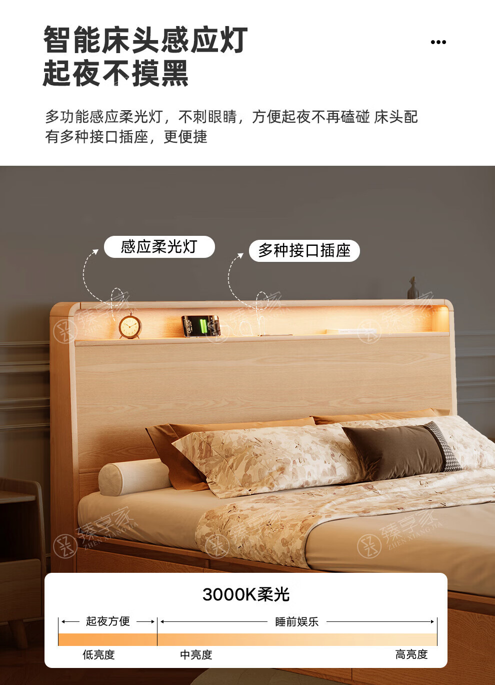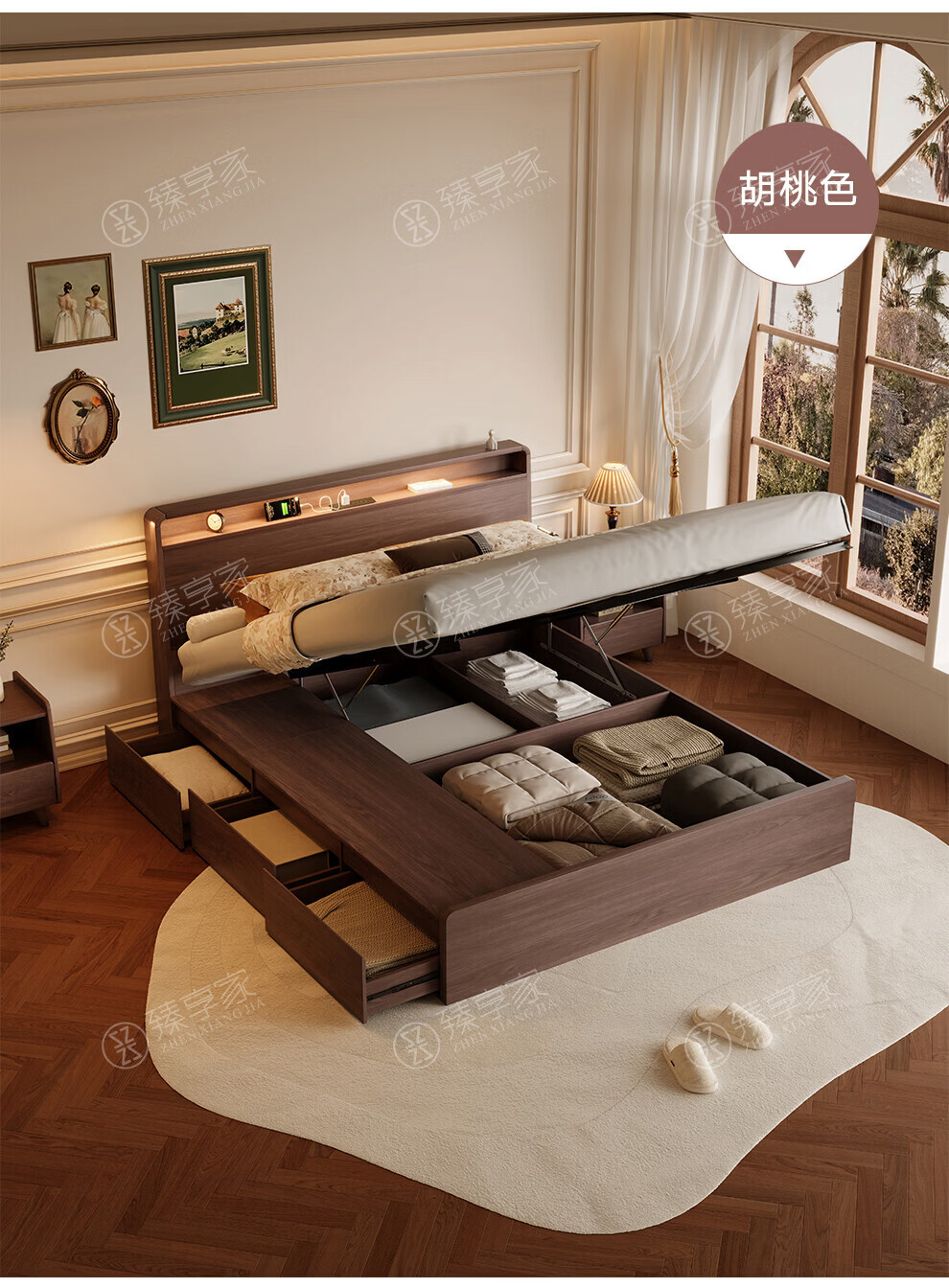 Zhenxiangjia all solid wood bed double bed modern simple oak high box bed air pressure storage bed with drawer bed bedroom furniture solid wood color | oak bed (single bed) luxury version thickened row frame 1.8*2.0m air pressure structure