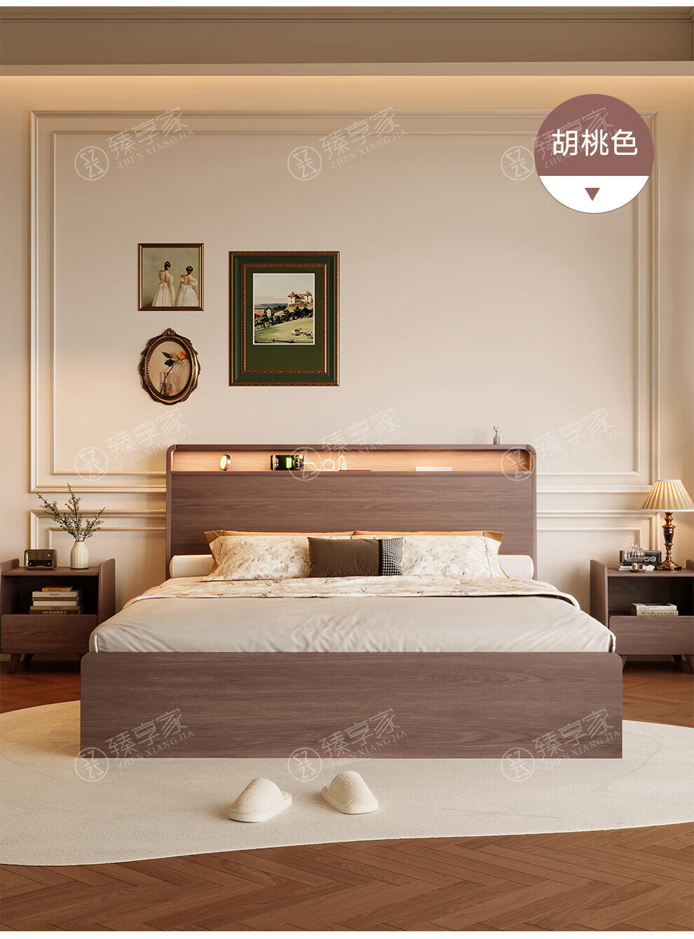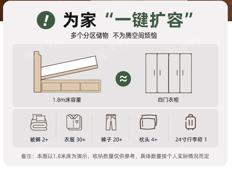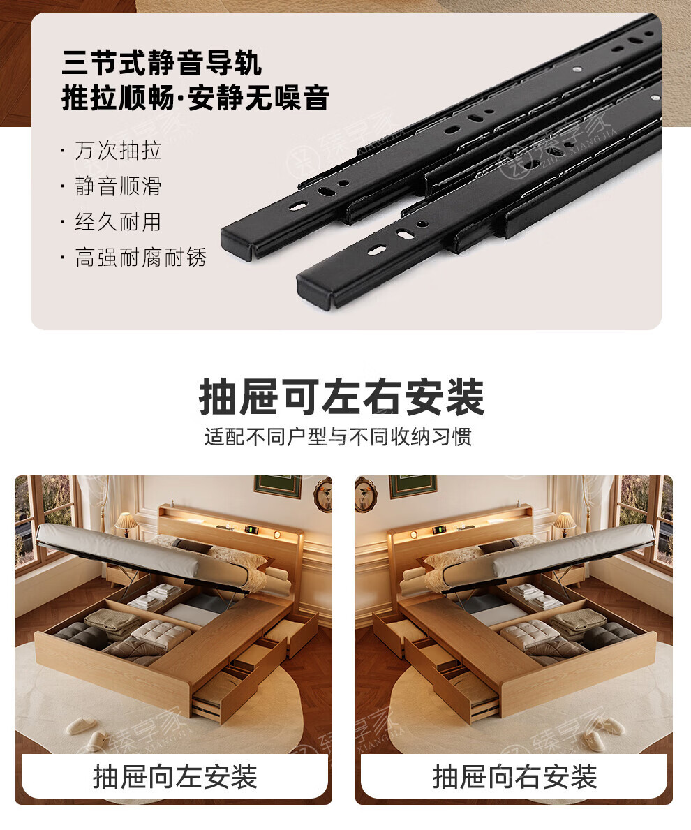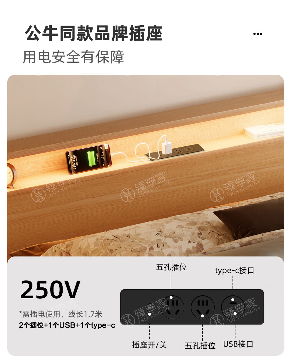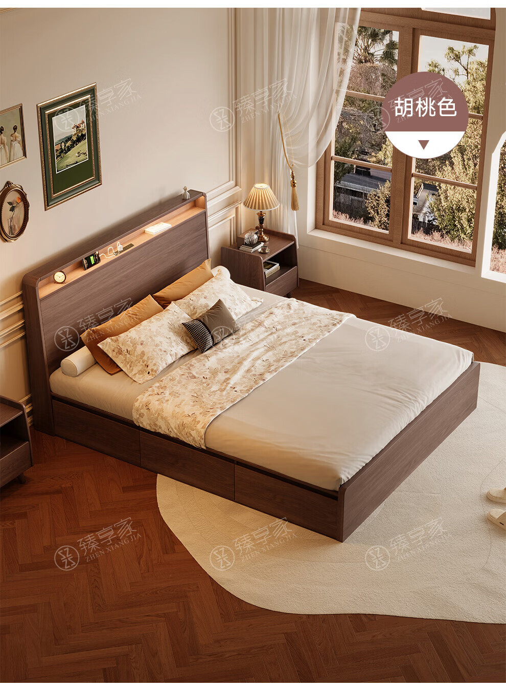 Zhenxiangjia all solid wood bed double bed modern simple oak high box bed air pressure storage bed with drawer bed bedroom furniture solid wood color | oak bed (single bed) luxury version thickened row frame 1.8*2.0m air pressure structure