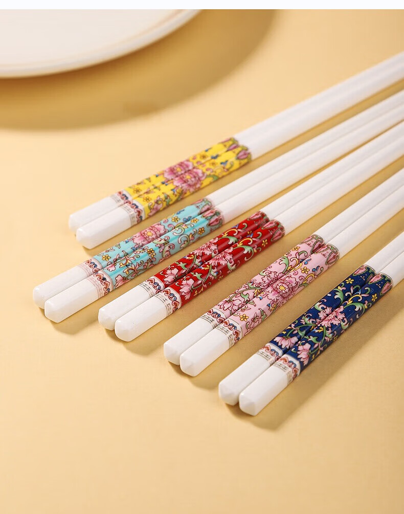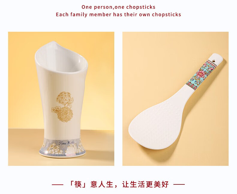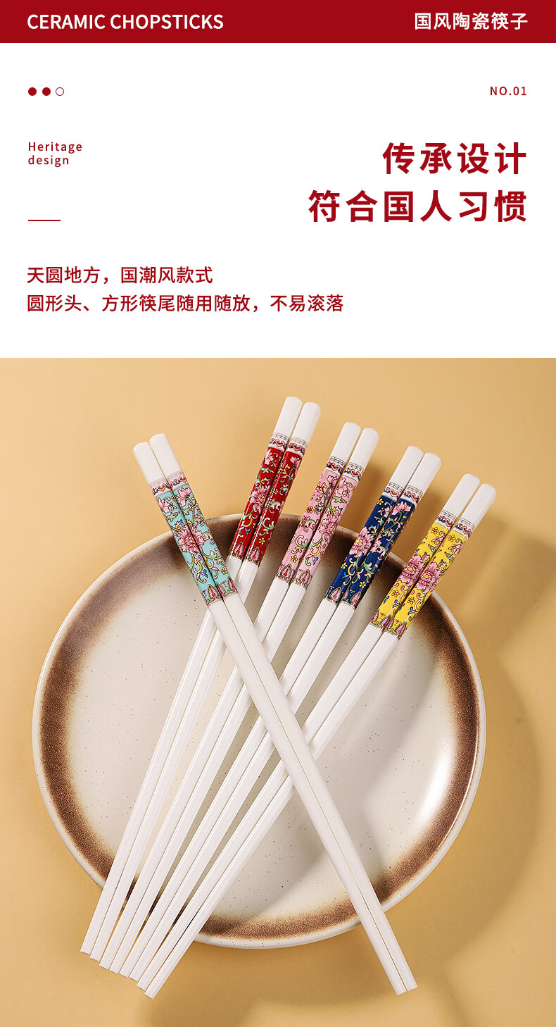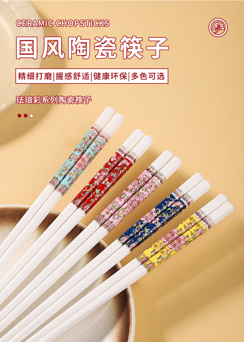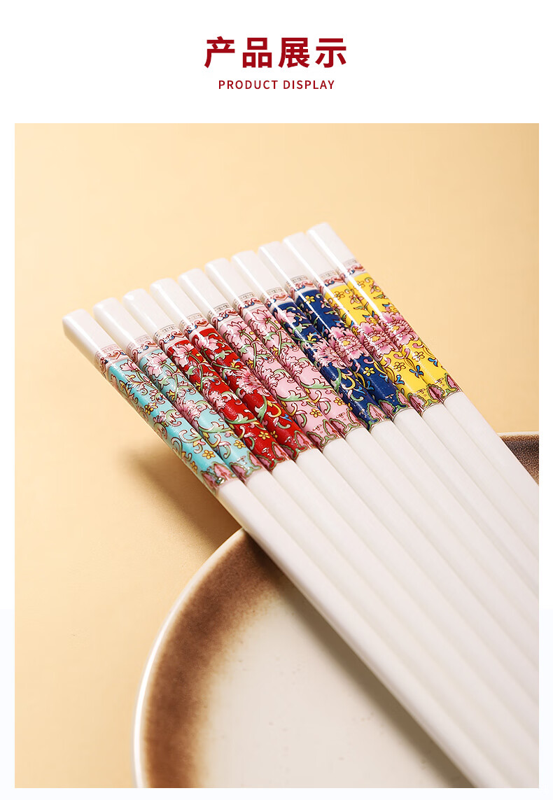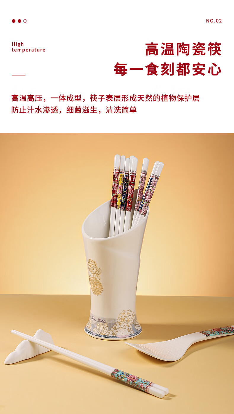 木之初 景德镇国风珐琅彩陶瓷筷子防霉可高温消毒饭勺筷筒易洗餐具套装 珐琅彩五色陶瓷筷10双+饭勺