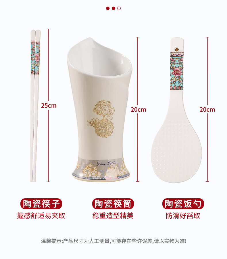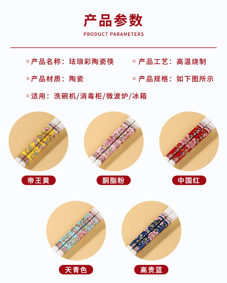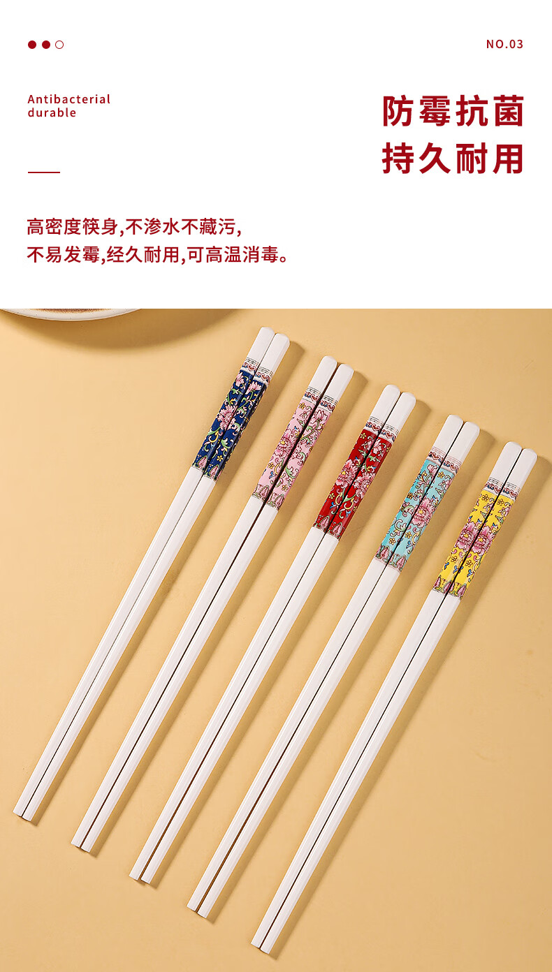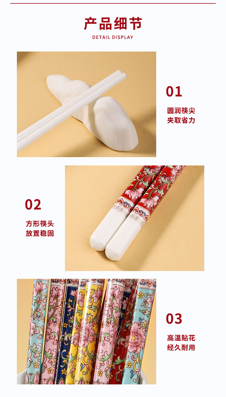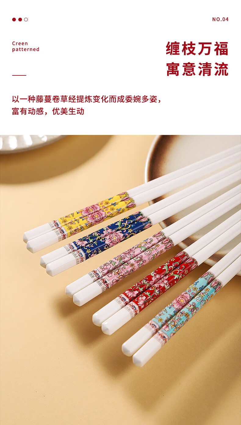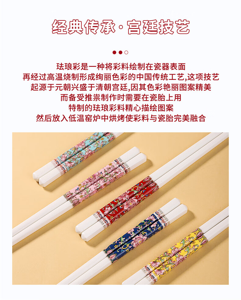 木之初 景德镇国风珐琅彩陶瓷筷子防霉可高温消毒饭勺筷筒易洗餐具套装 珐琅彩五色陶瓷筷10双+饭勺