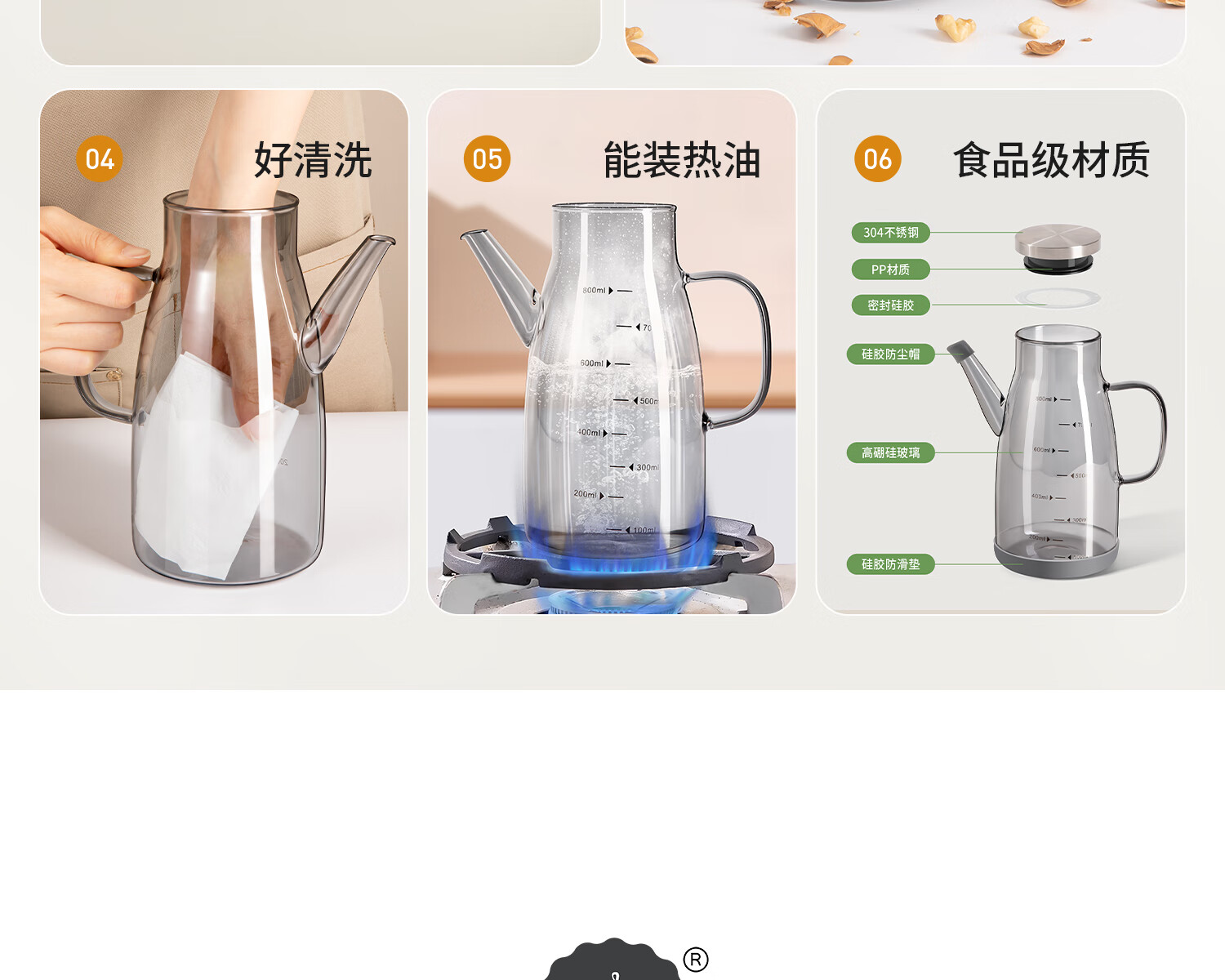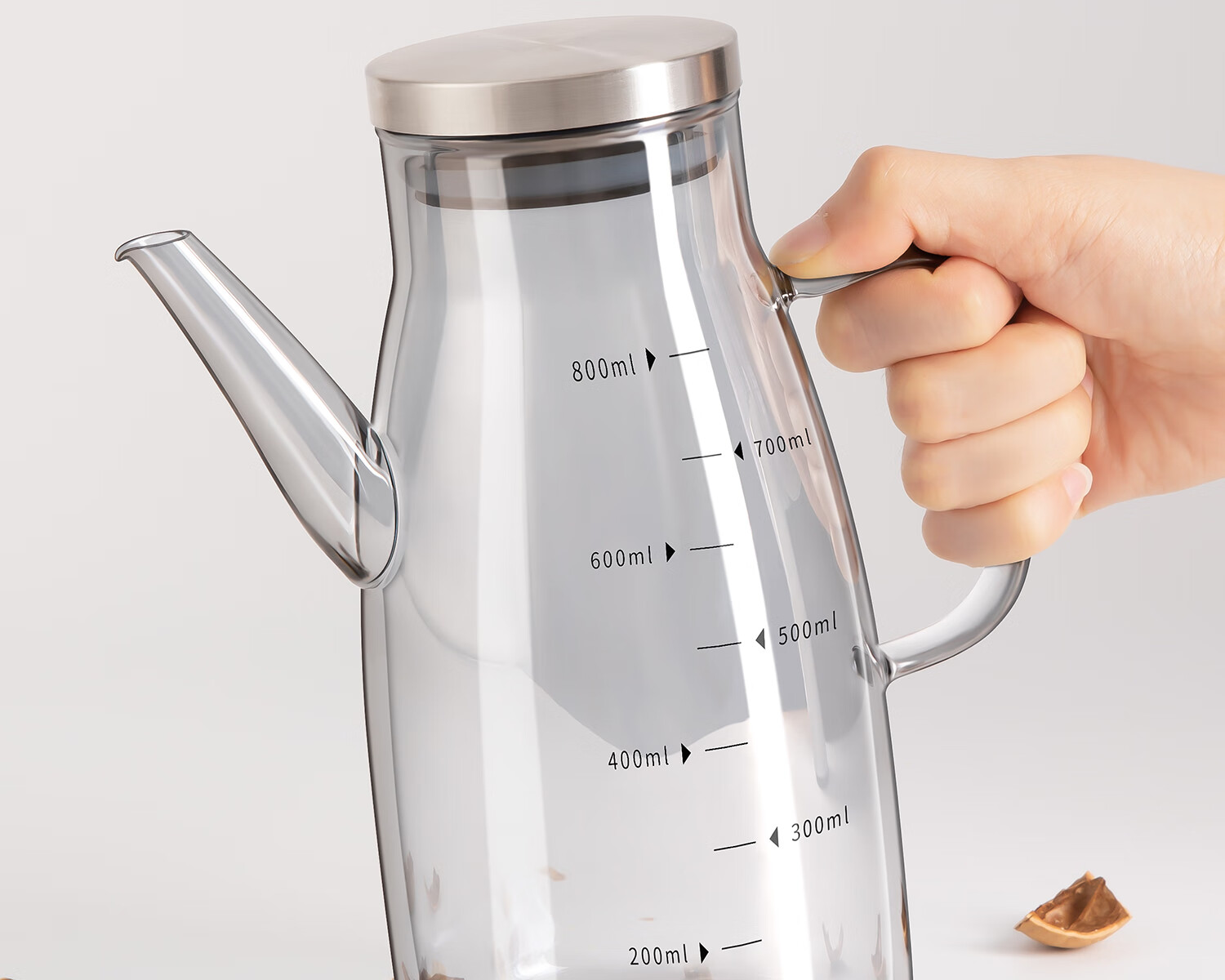 Zhifan Japanese oil pot for home kitchen without oil food grade glass oil bottle seasoning oil pot special 2025 new food grade-600ml amber color comes with dust cover + anti-slip mat
