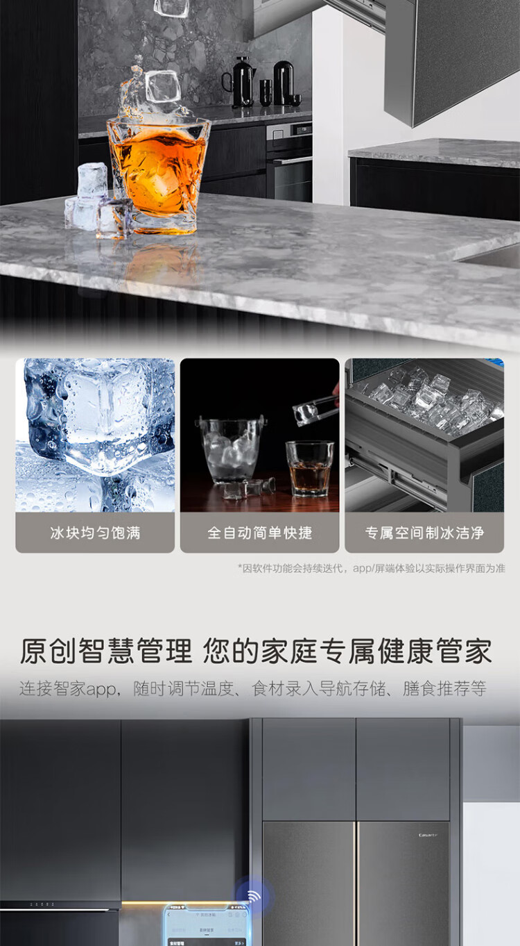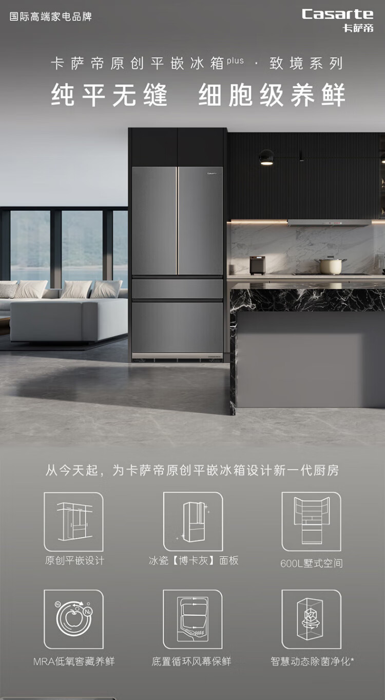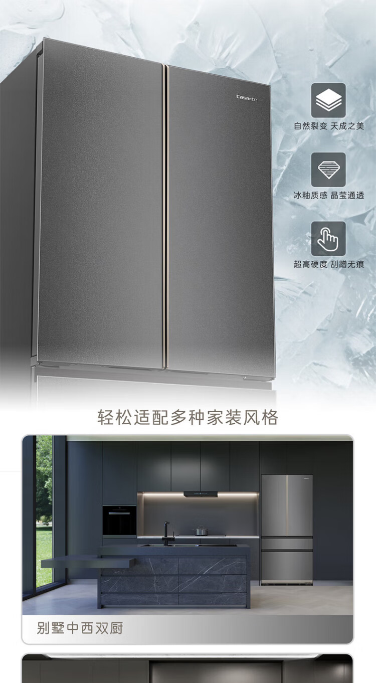 Casarte ultra-thin refrigerator 594mm 600 liter French refrigerator Original flat-mounted MRA low-oxygen storage and freshness automatic ice making machine Zhijing series Zhijing series + 600 liters + automatic ice making machine