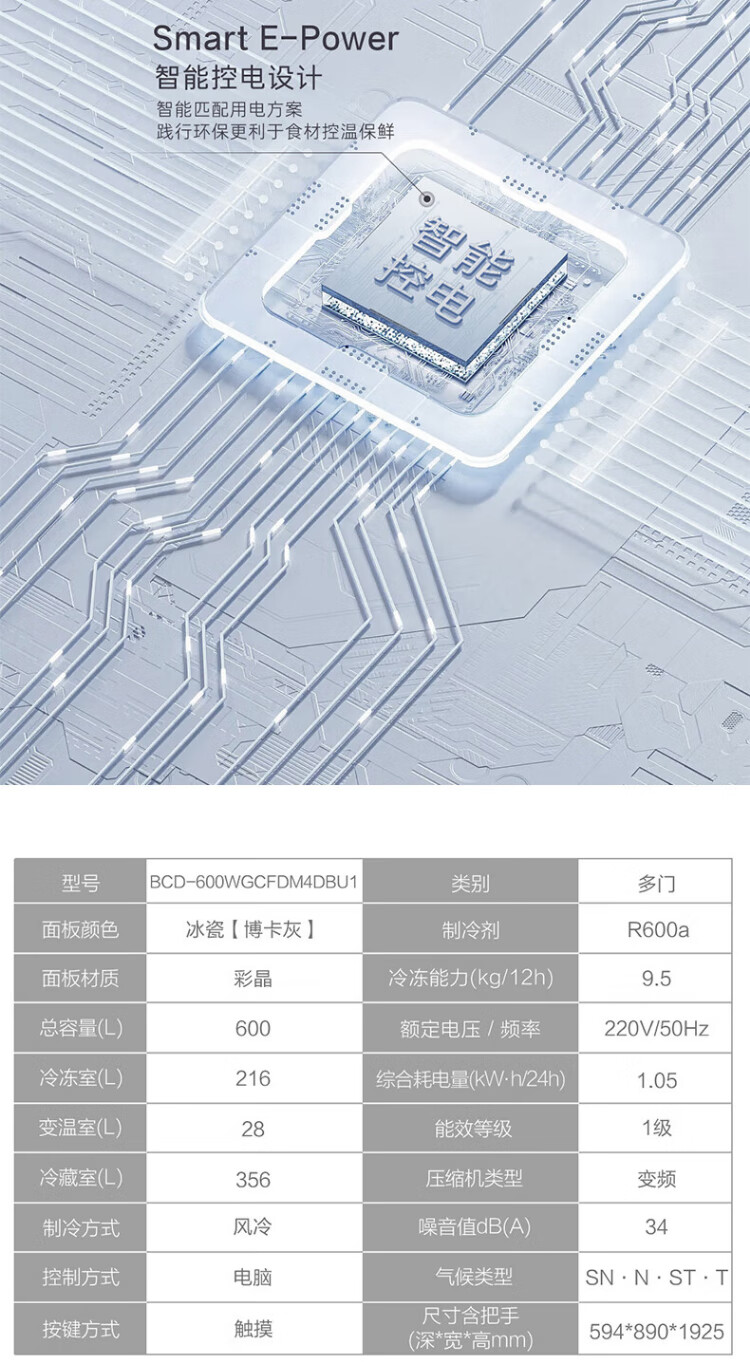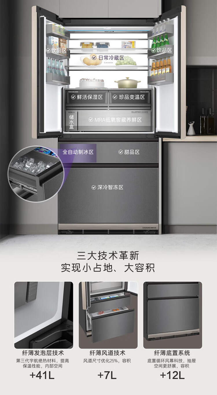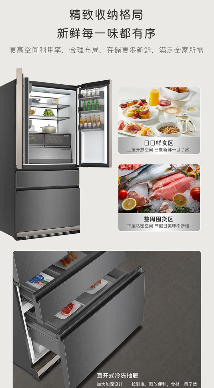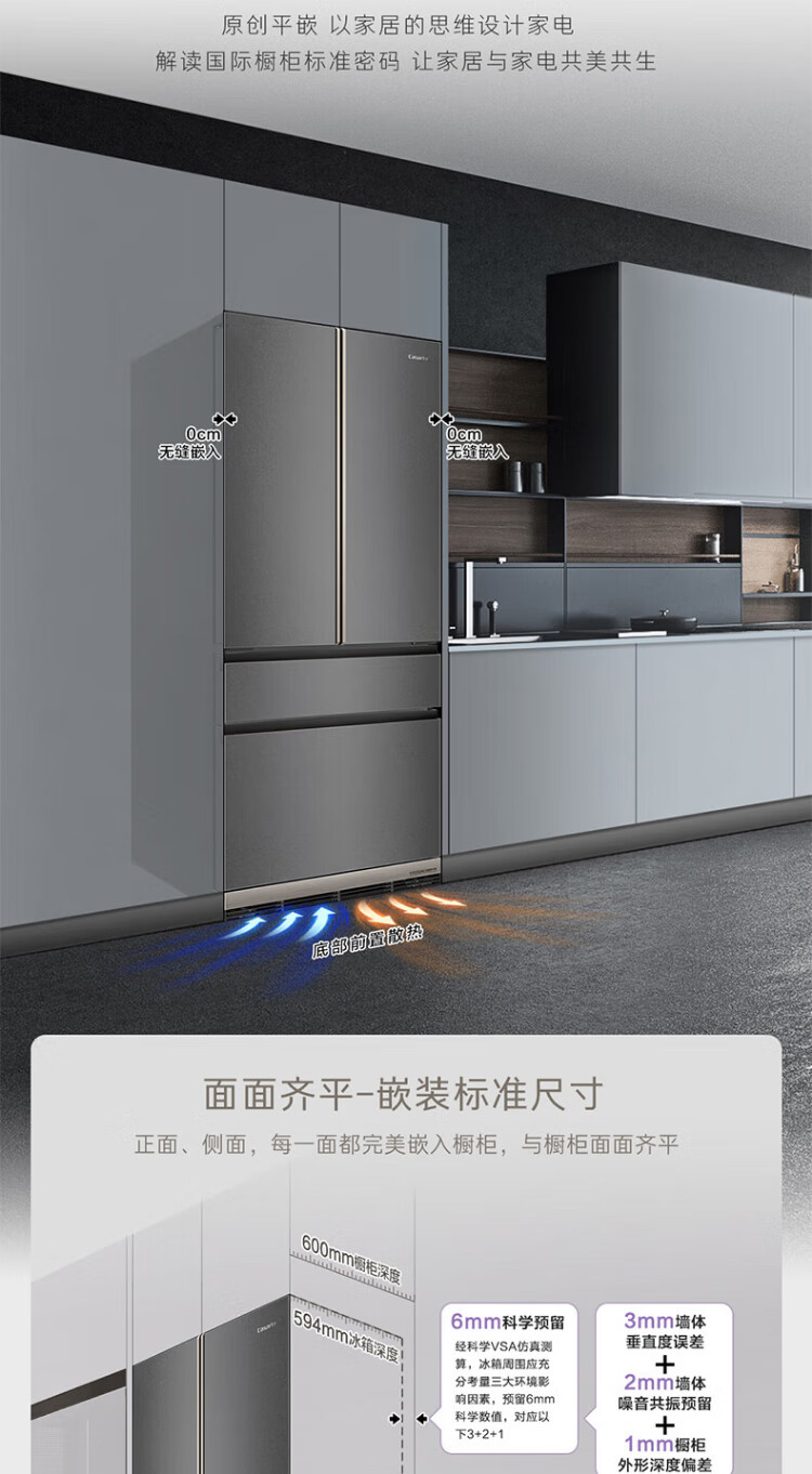 Casarte ultra-thin refrigerator 594mm 600 liter French refrigerator Original flat-mounted MRA low-oxygen storage and freshness automatic ice making machine Zhijing series Zhijing series + 600 liters + automatic ice making machine
