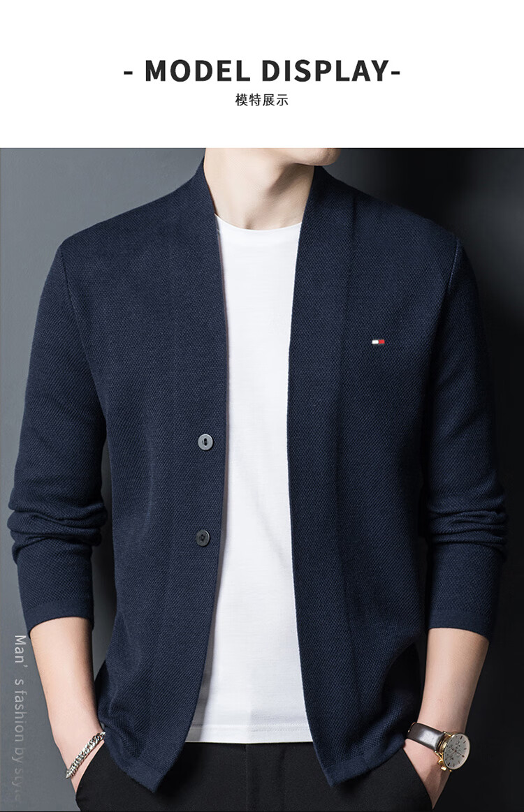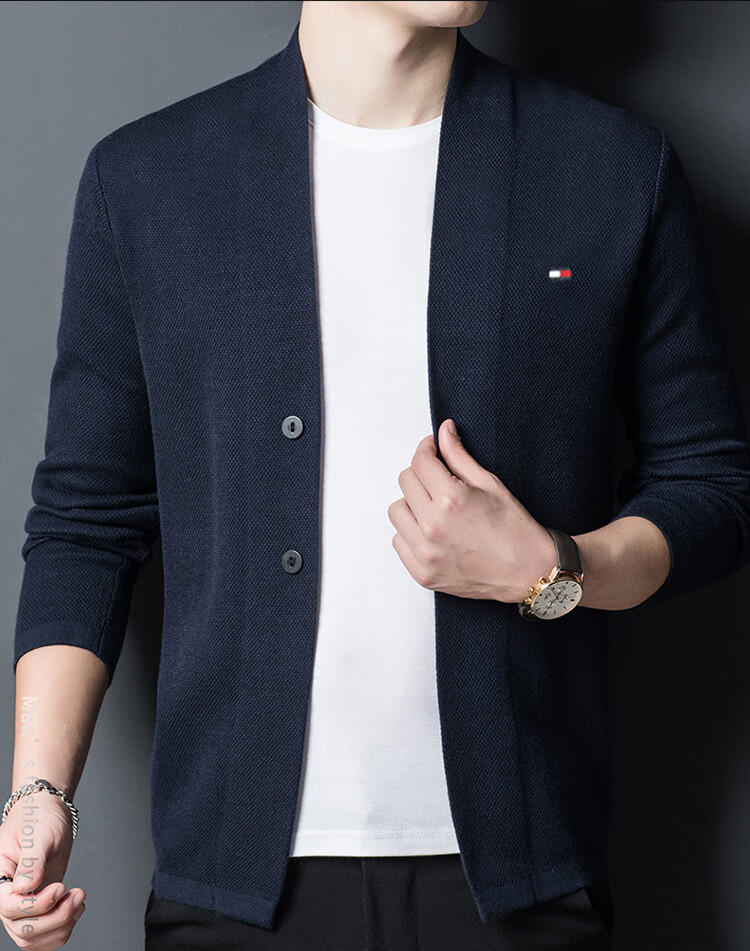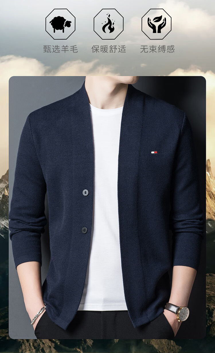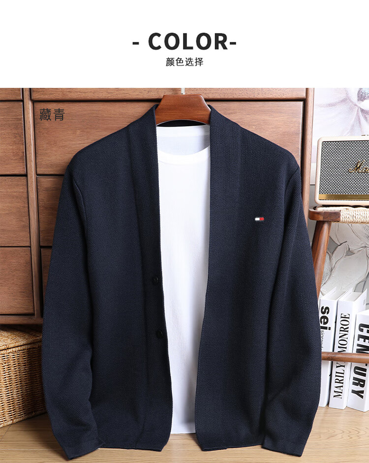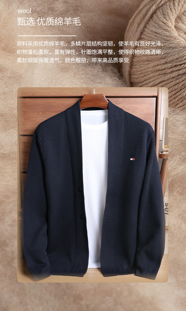 TOME BORNEK American Tommy men's wool jacket cashmere feel cardigan men's loose knitted sweater V-neck thickened sweater Navy 2XL (recommended 160-180Jin Jin equals 0.5 kg)