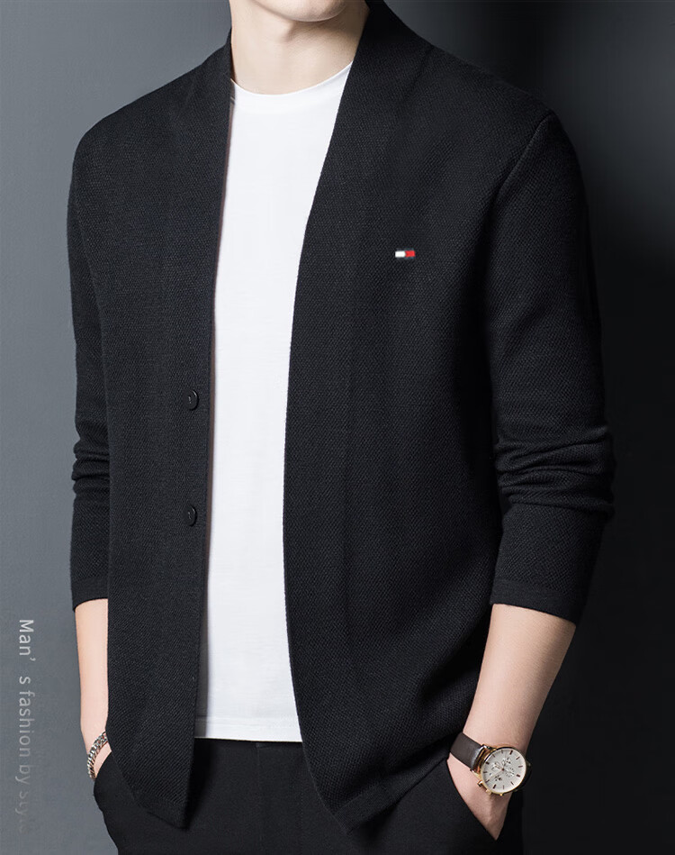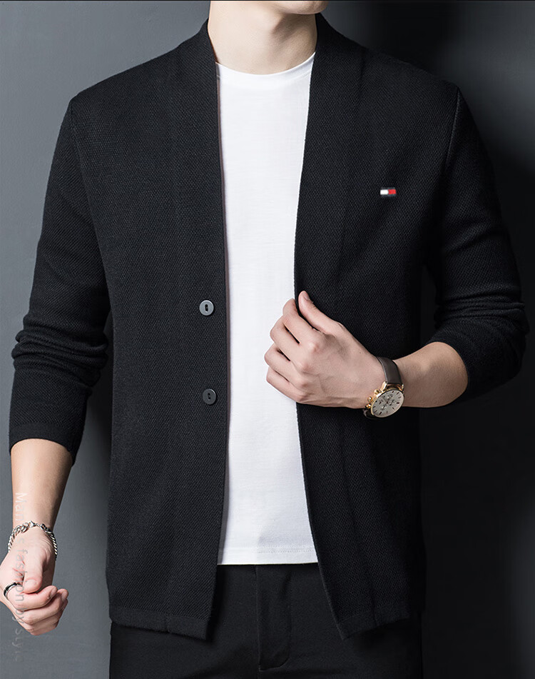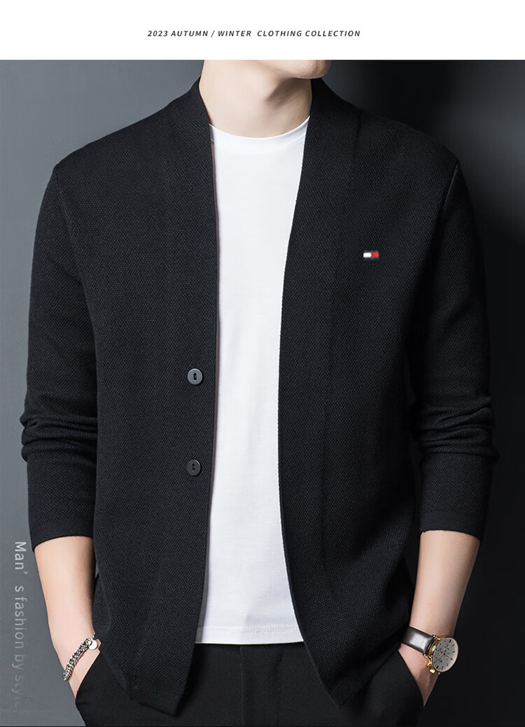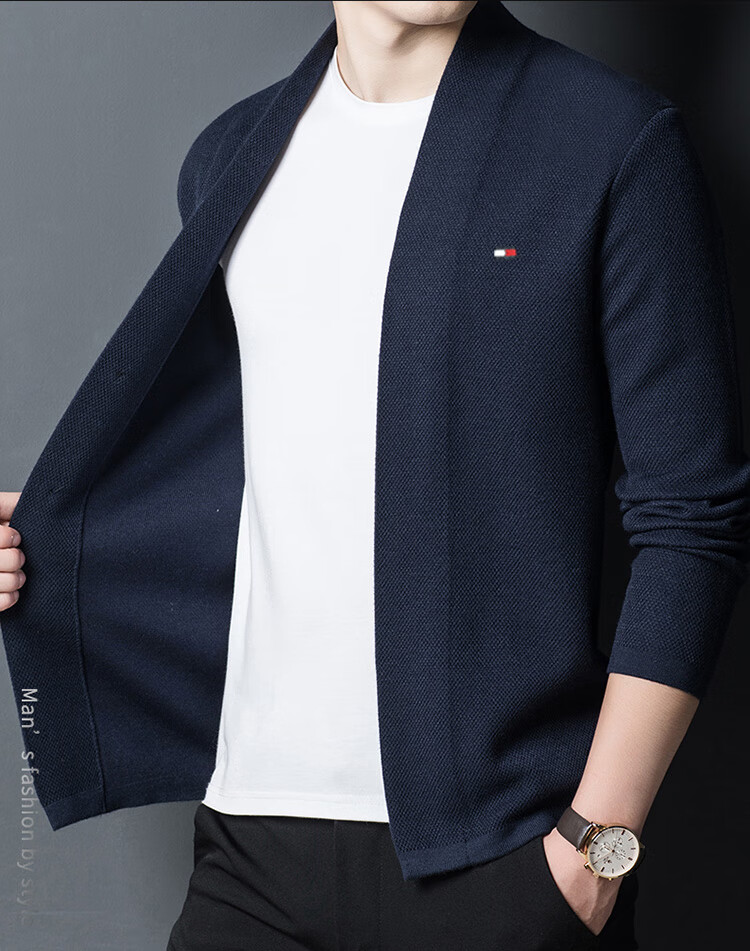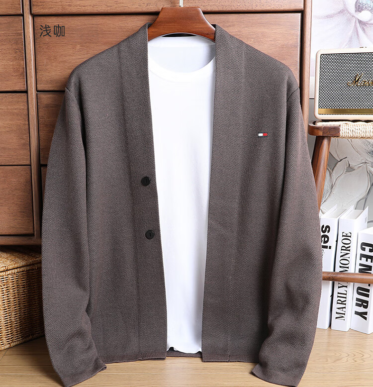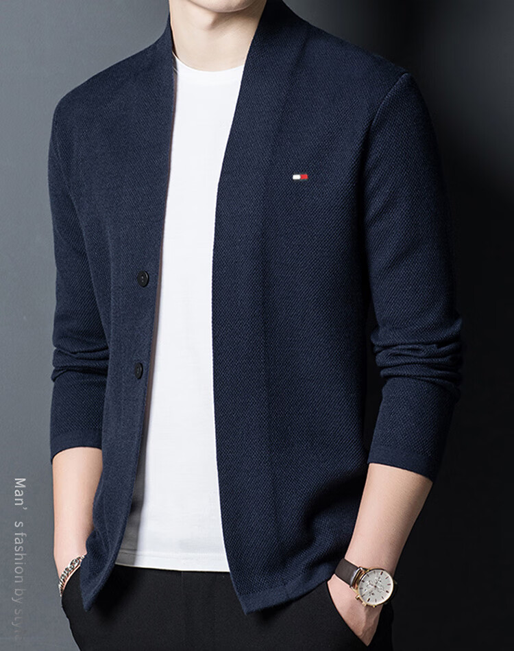 TOME BORNEK American Tommy men's wool jacket cashmere feel cardigan men's loose knitted sweater V-neck thickened sweater Navy 2XL (recommended 160-180Jin Jin equals 0.5 kg)