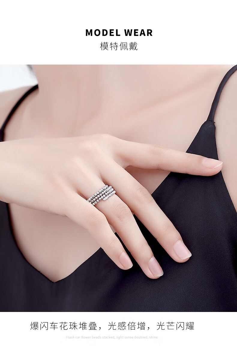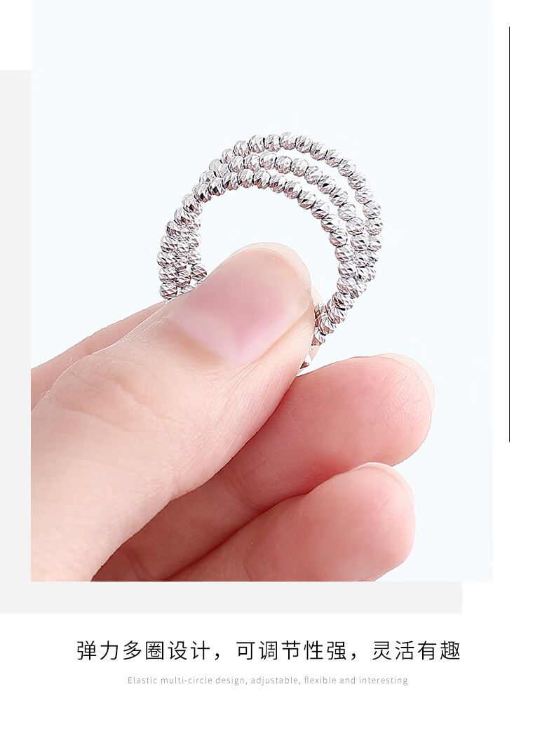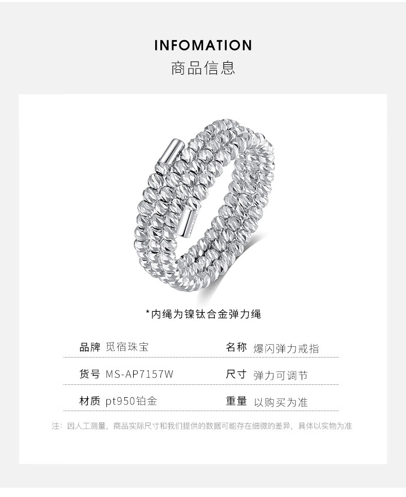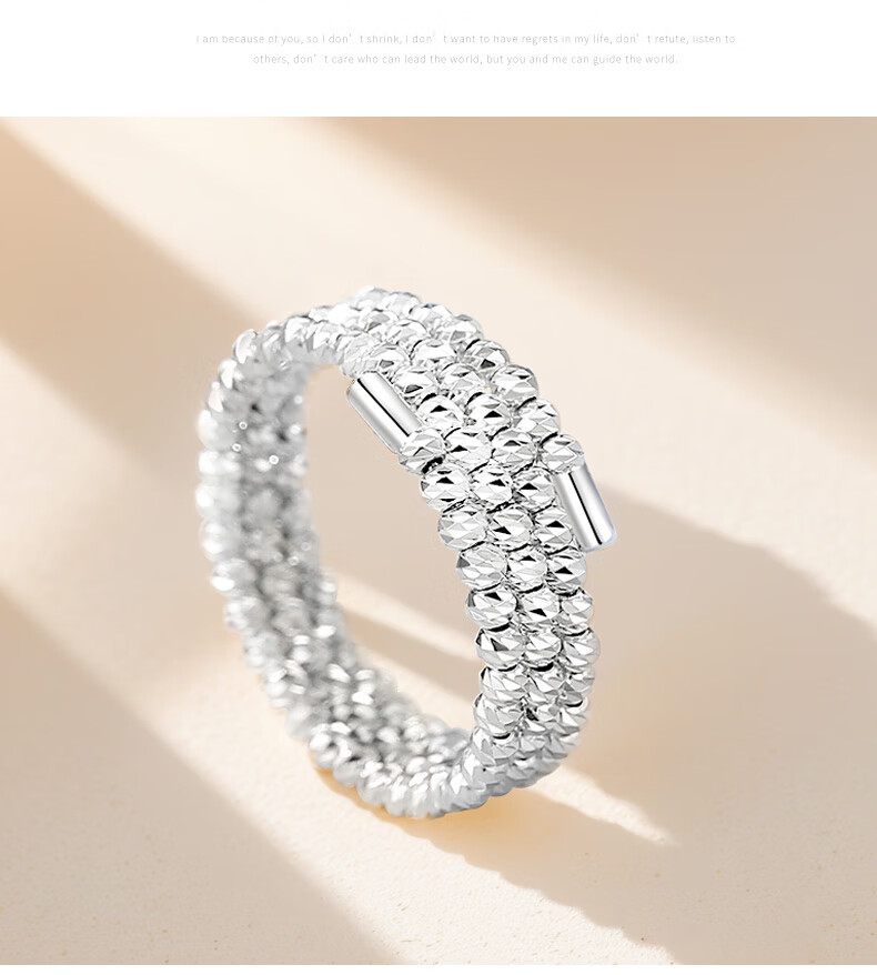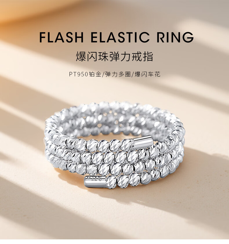 Misu pt950 platinum ring for women, elastic bursting laser beads, platinum bundy beads, wedding ring, plain ring gift, pure gold weight 2.5-2.7 grams, adjustable range 14-16