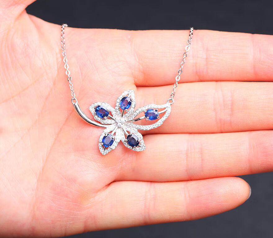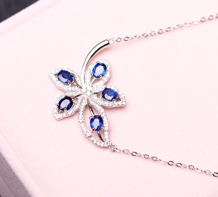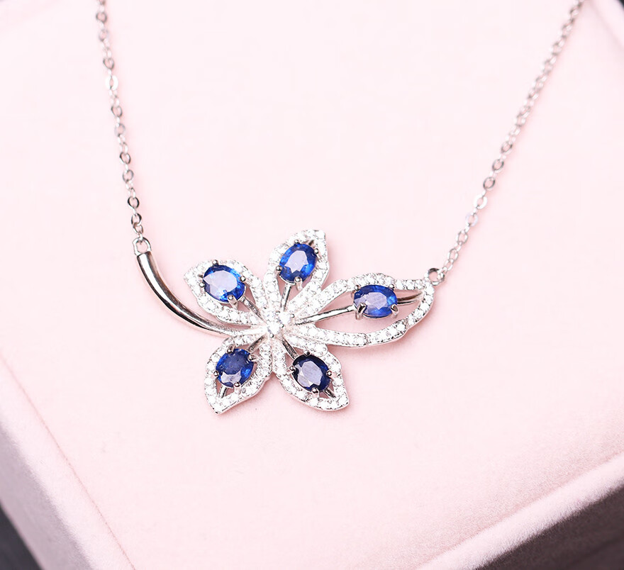 Fujiu 4.85G New Natural Sapphire Necklace Pendant Women's Fashion Colorful Treasure Jewelry Gift