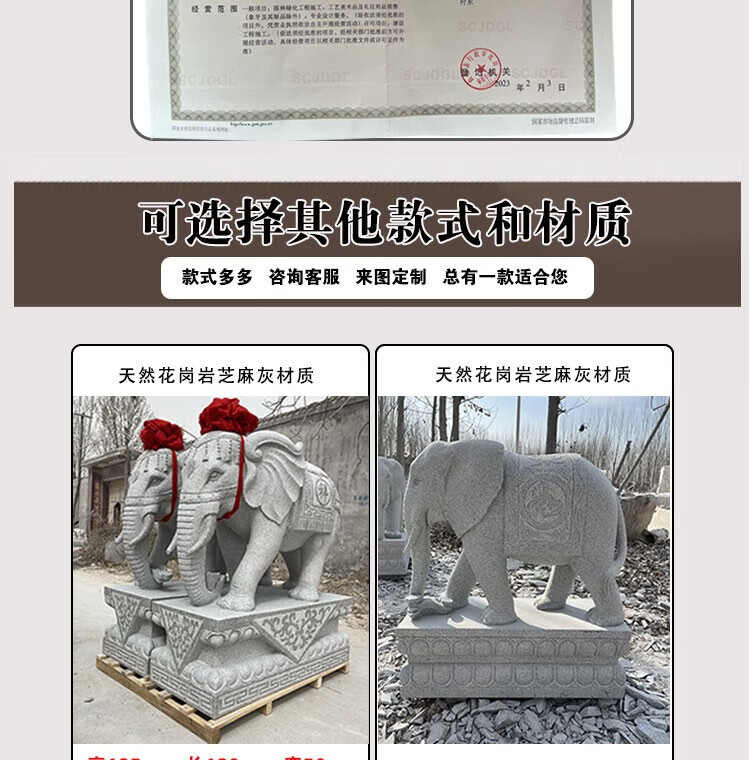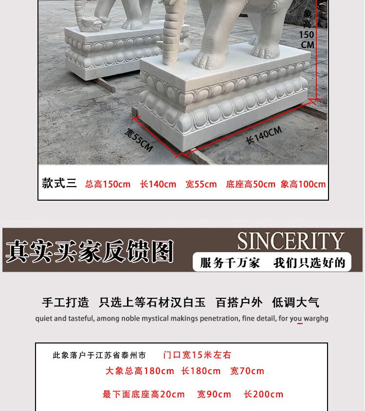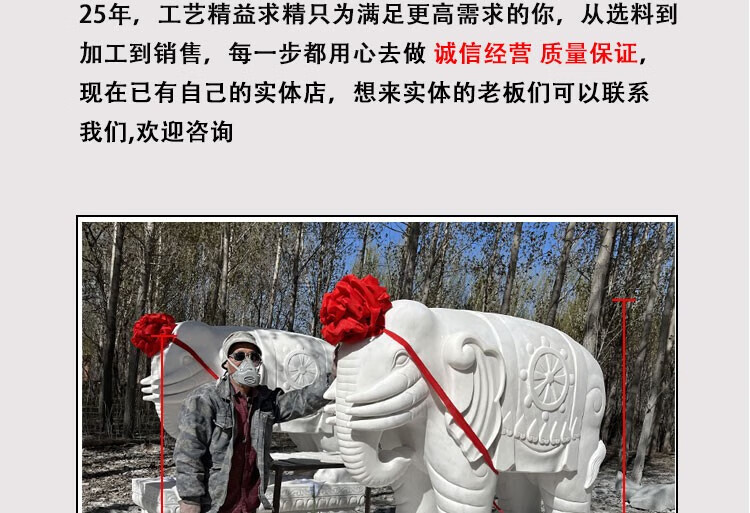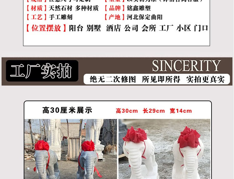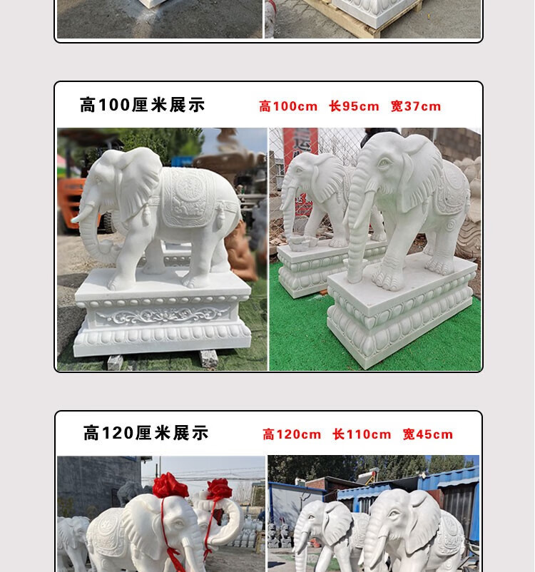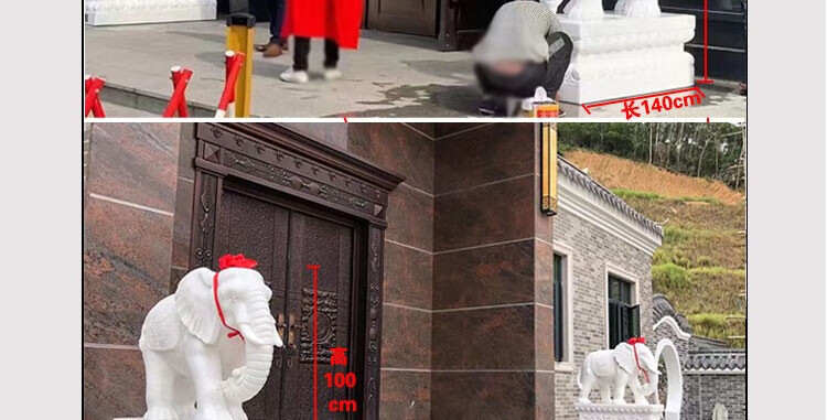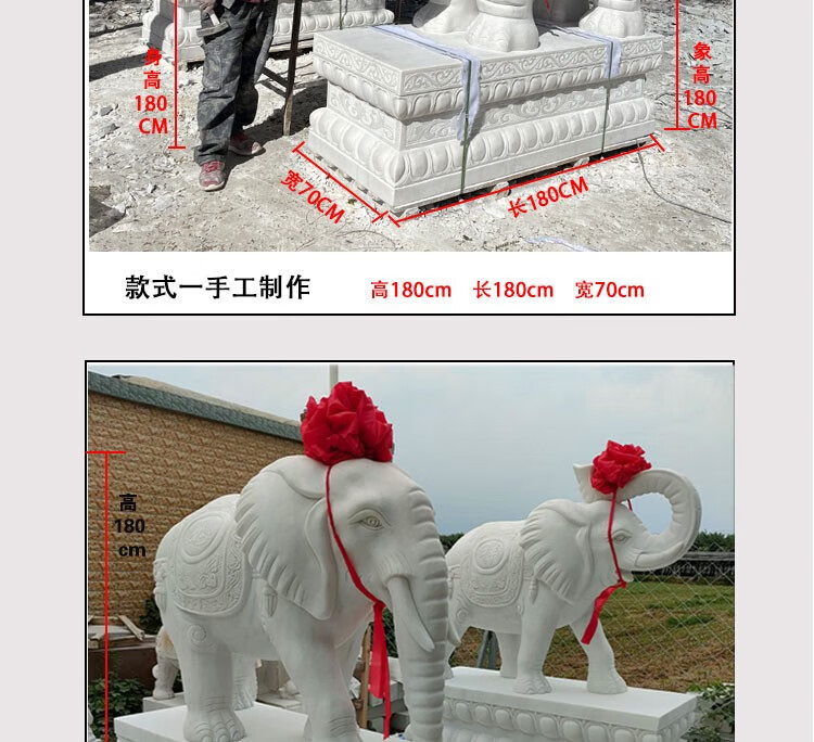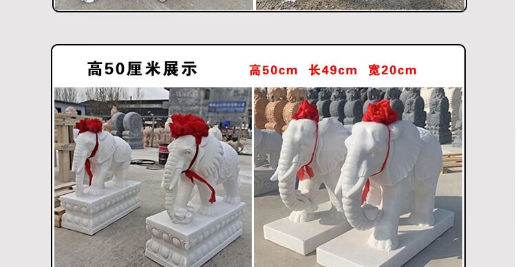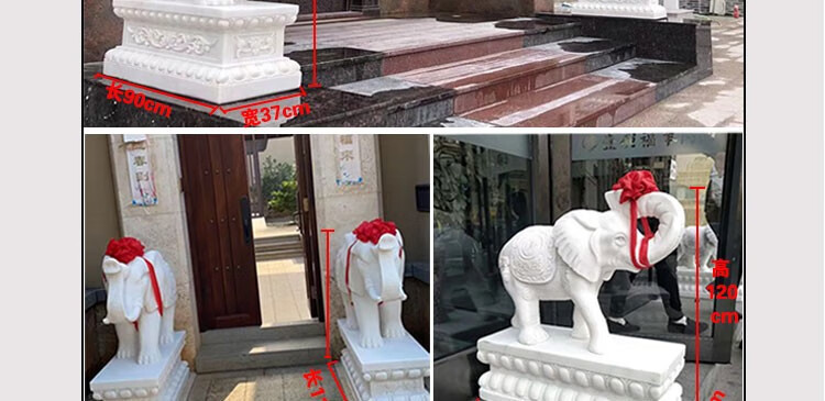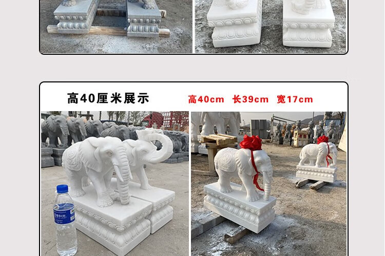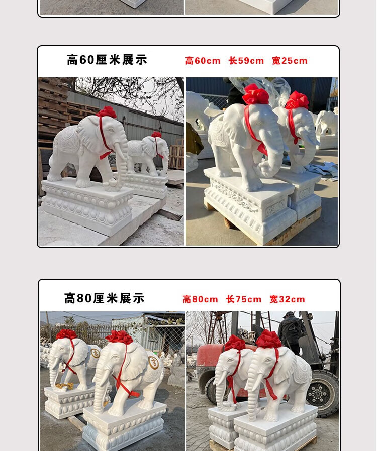 Marble white marble elephants pair outdoor villa courtyard hotel company home doorway lucky stone elephants Lucky Ruyi white marble elephants 60 cm high pair stone unicorn white marble