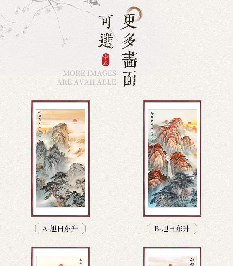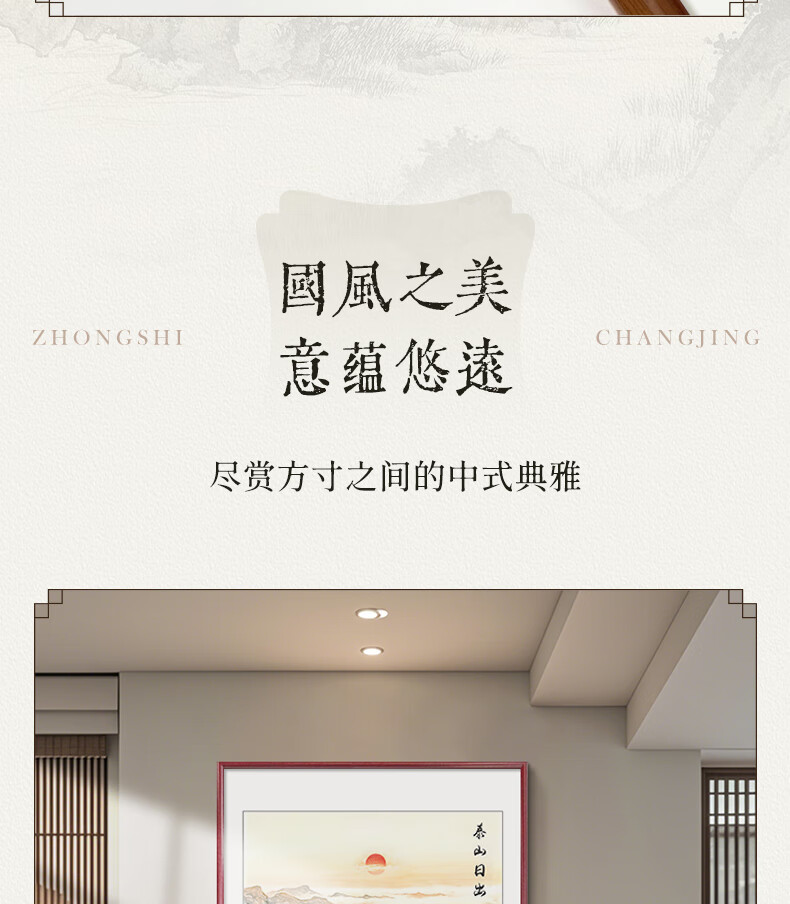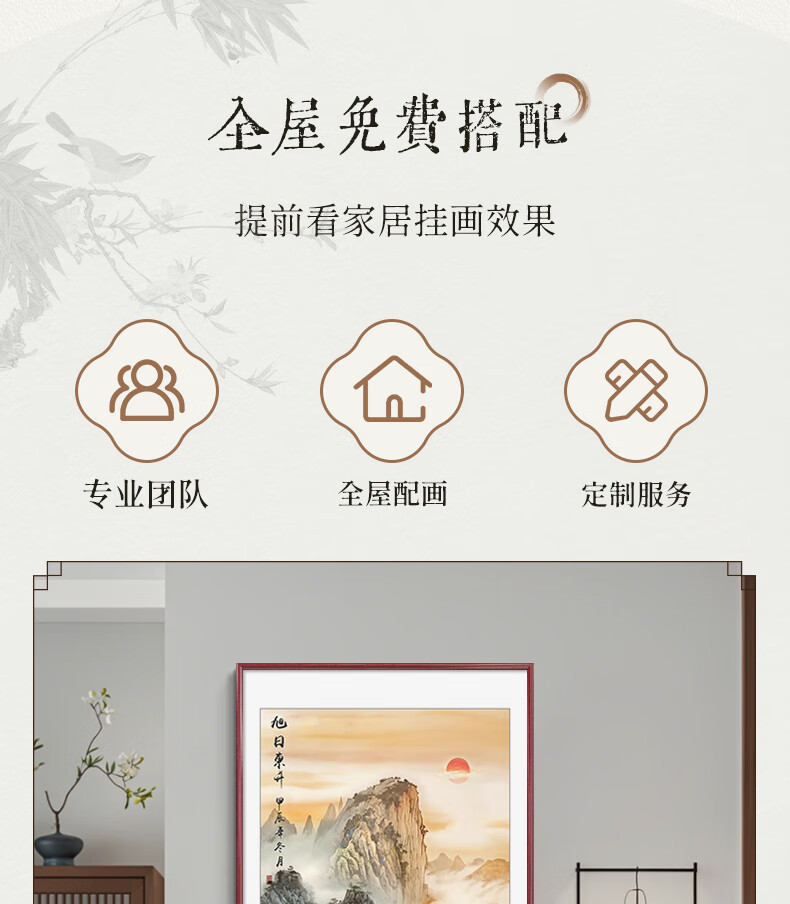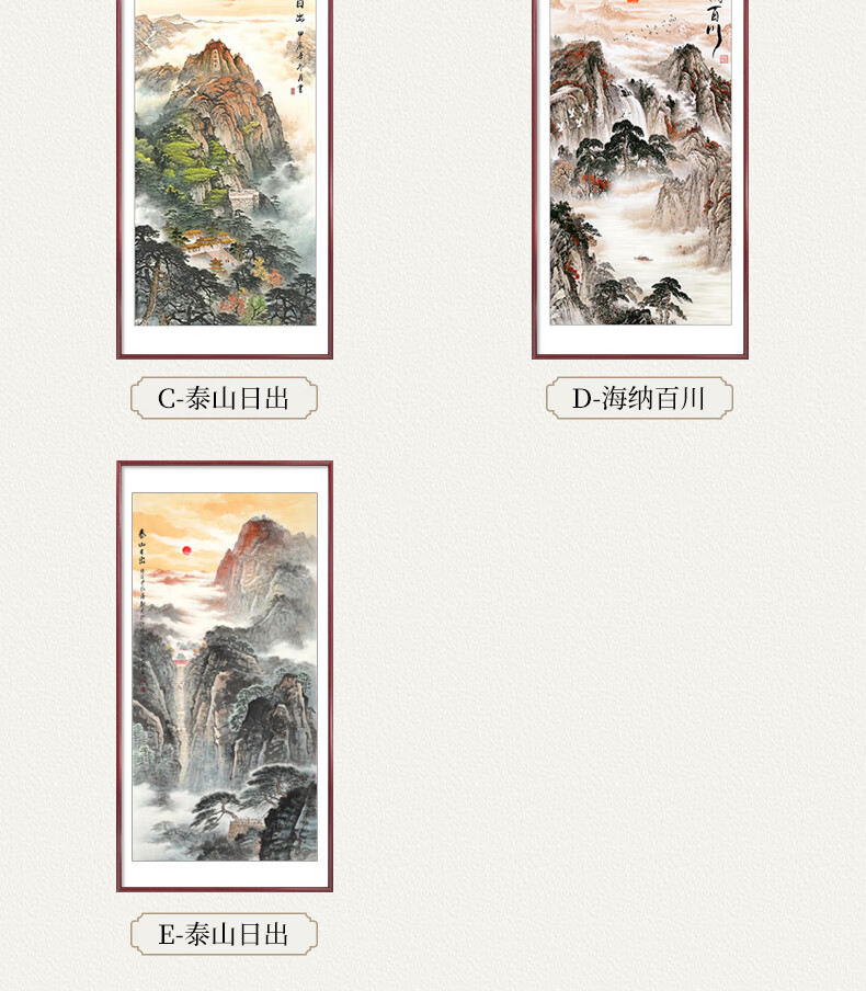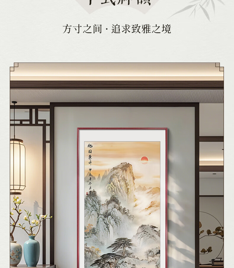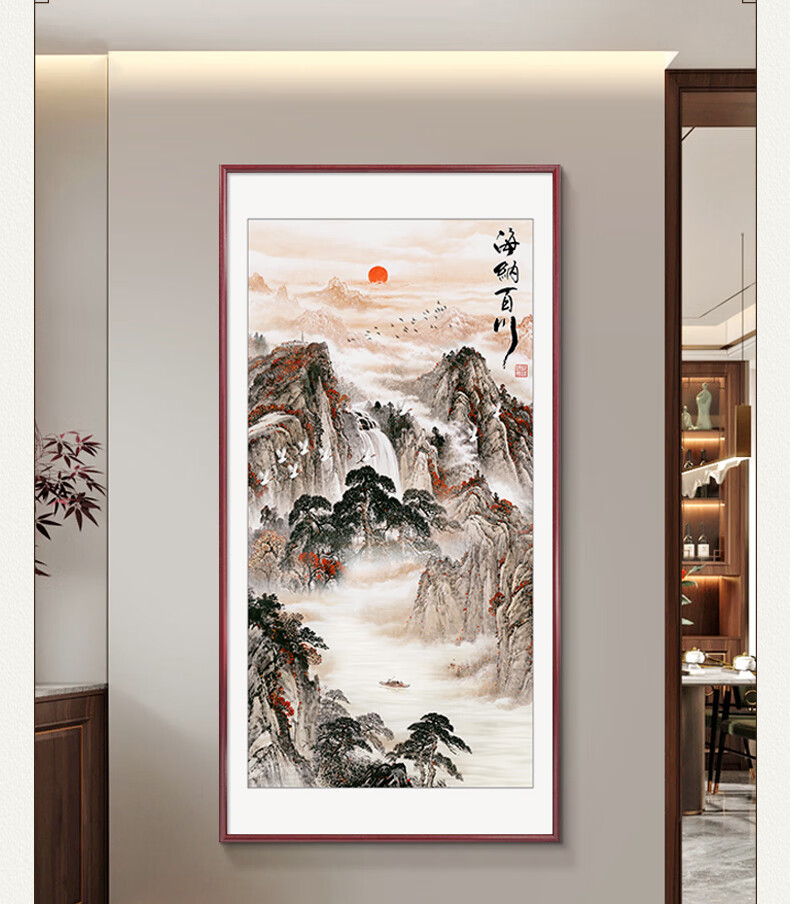 Good wood, the rising sun, hand-painted Mount Tai, sunrise, Chinese painting, entrance hall, central hall hanging painting, decorative painting, ink landscape painting mural, D-Hainan Baichuan, 70*140cm high-definition giclée, elegant walnut solid wood frame, solid wood thin frame