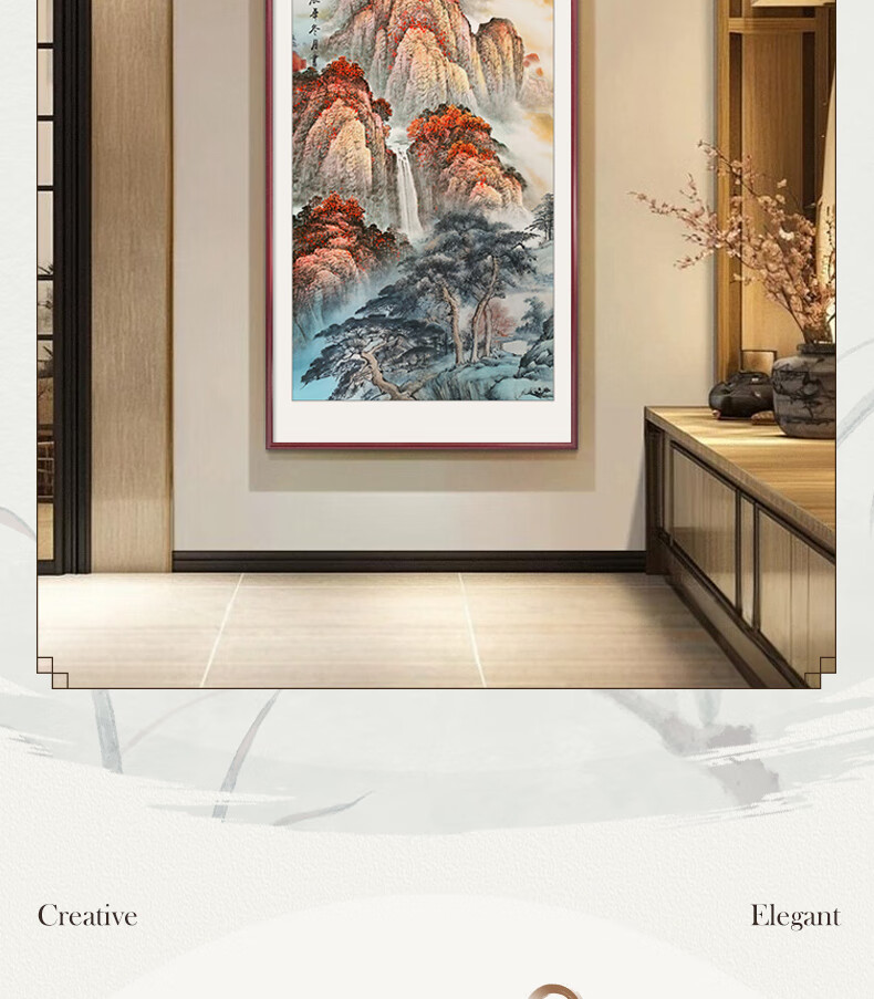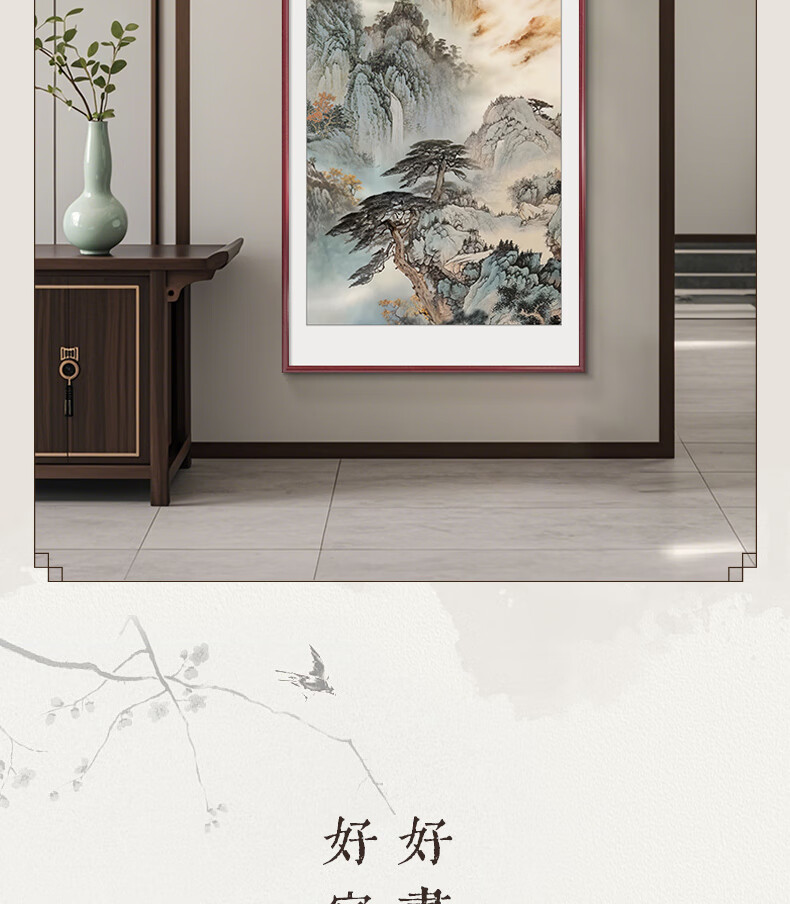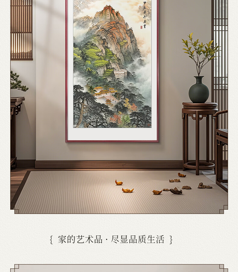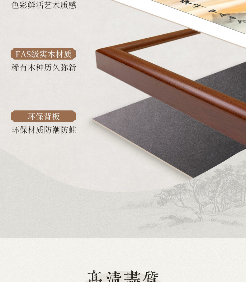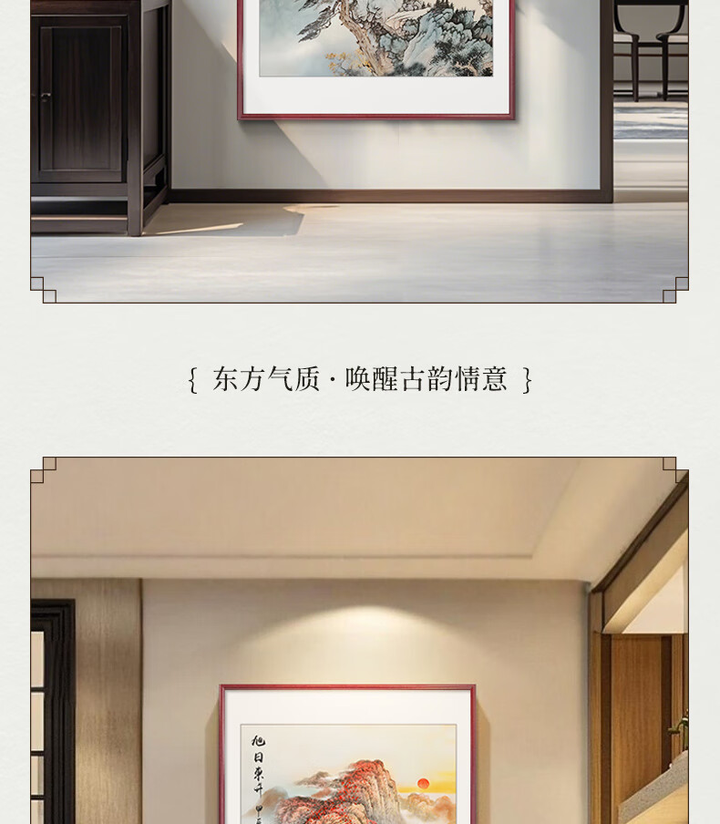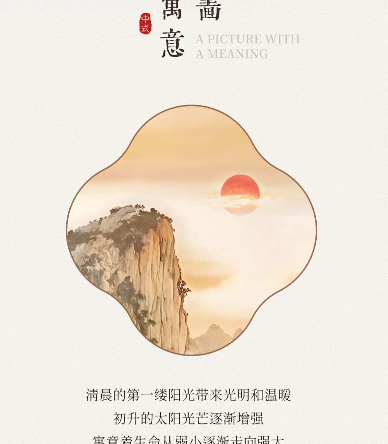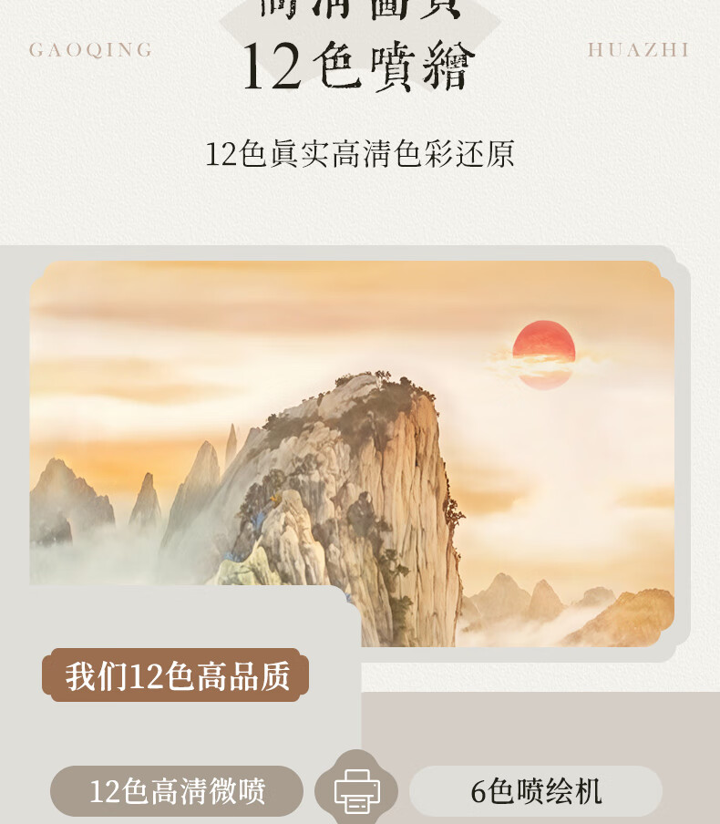 Good wood, the rising sun, hand-painted Mount Tai, sunrise, Chinese painting, entrance hall, central hall hanging painting, decorative painting, ink landscape painting mural, D-Hainan Baichuan, 70*140cm high-definition giclée, elegant walnut solid wood frame, solid wood thin frame