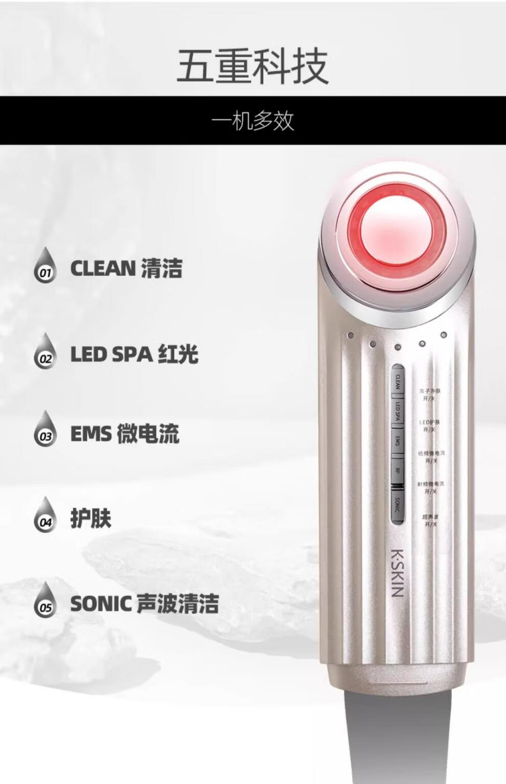 KingDom multifunctional ultrasonic peeling machine beauty instrument facial blackhead shovel cleaning introduction instrument KD8088 KD8088 gold