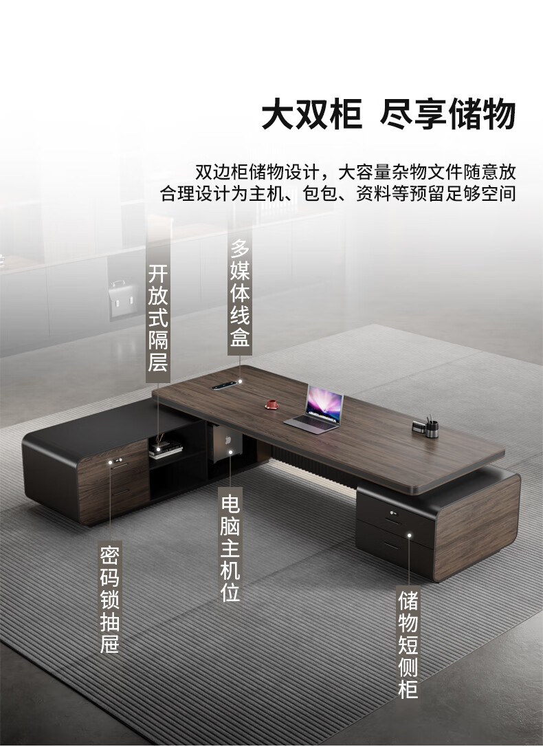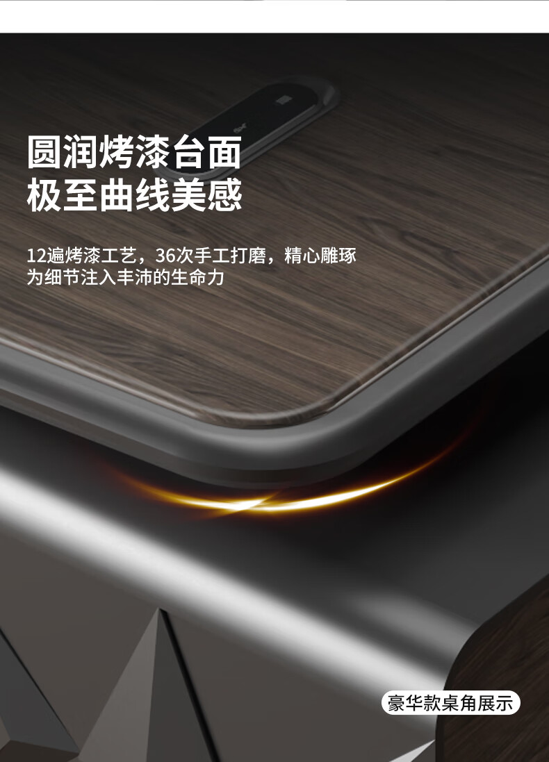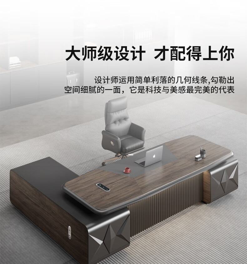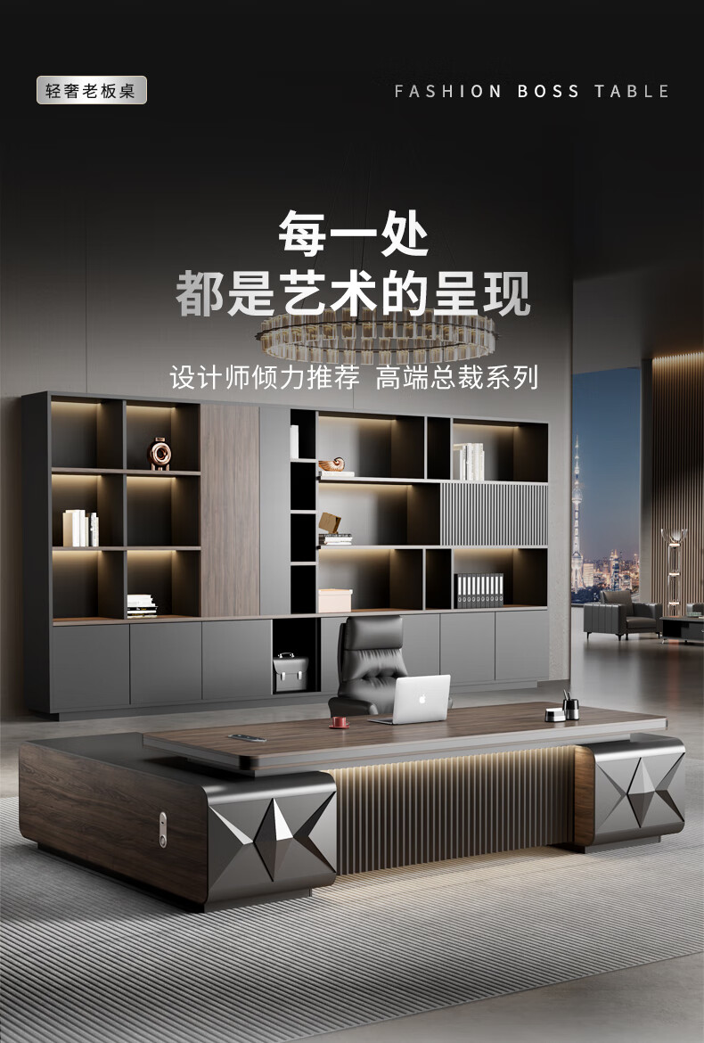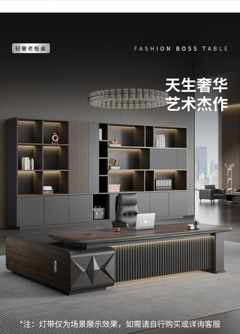 Yanhong painted boss table office desk and chair combination light luxury high-end executive desk simple modern chairman's room 2.0 meters luxury double cabinet boss (including light strip)
