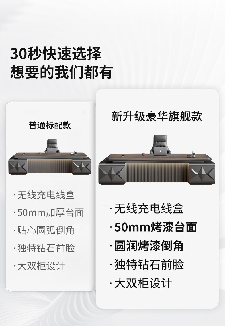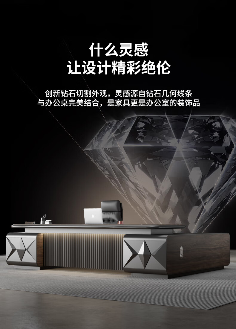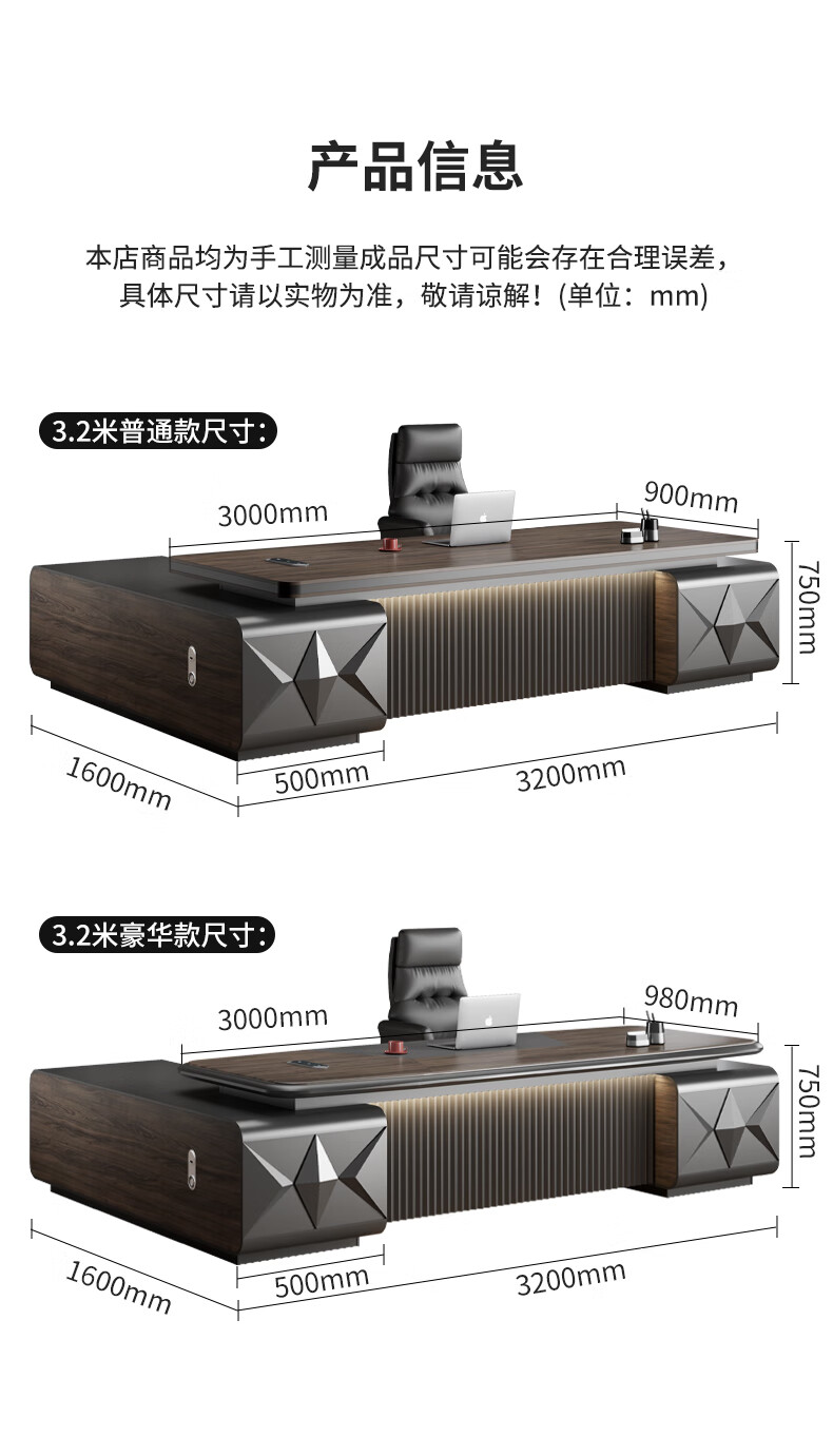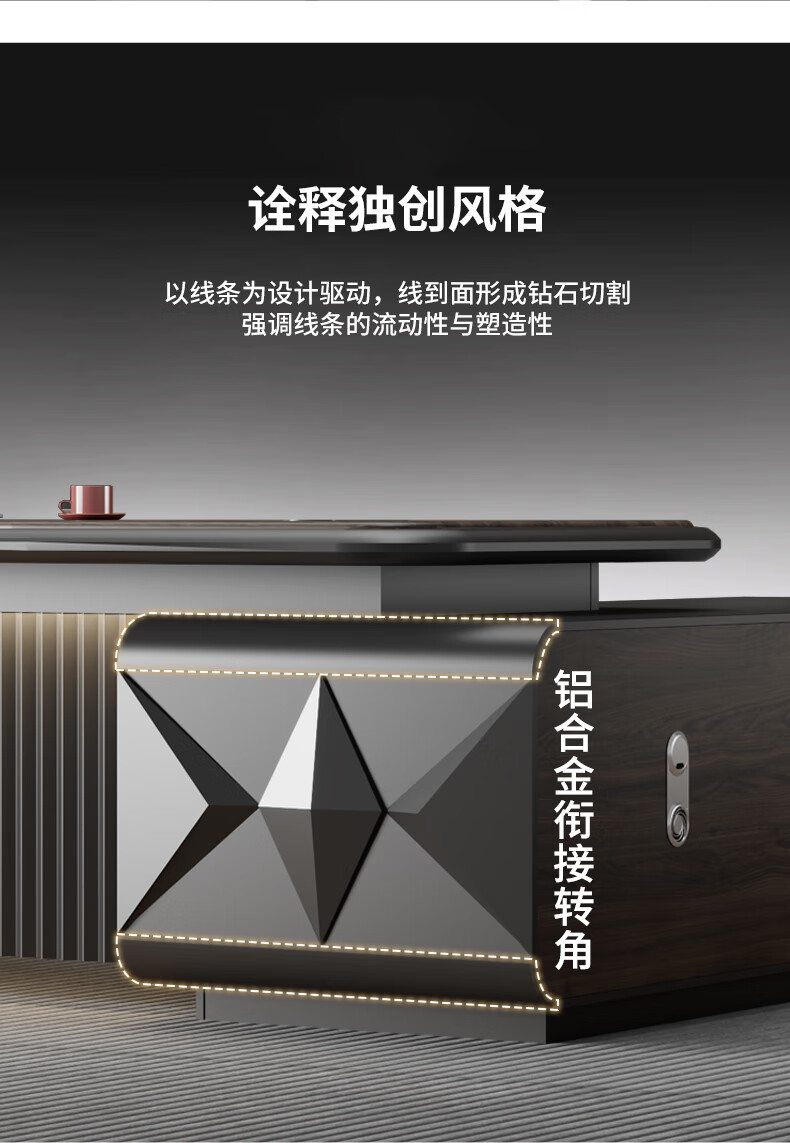 Yanhong painted boss table office desk and chair combination light luxury high-end executive desk simple modern chairman's room 2.0 meters luxury double cabinet boss (including light strip)