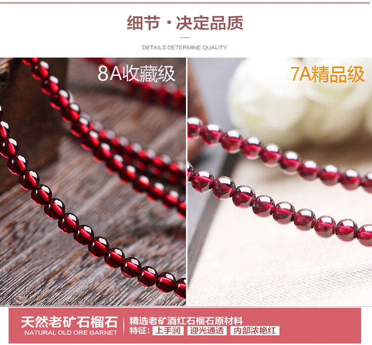 Fujiu suitable natural wine red garnet bracelet for women three circles 7A8A collection grade loose bead bracelet 7A treasure grade 6 mm (three circles)