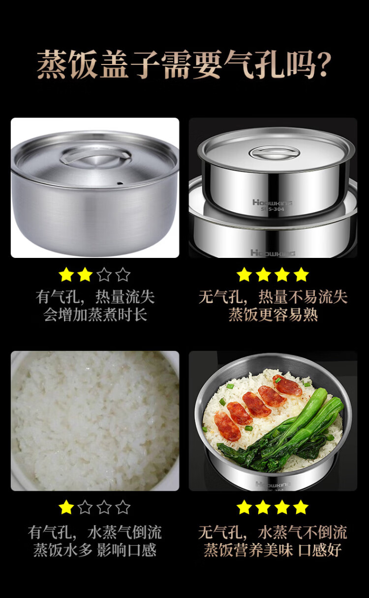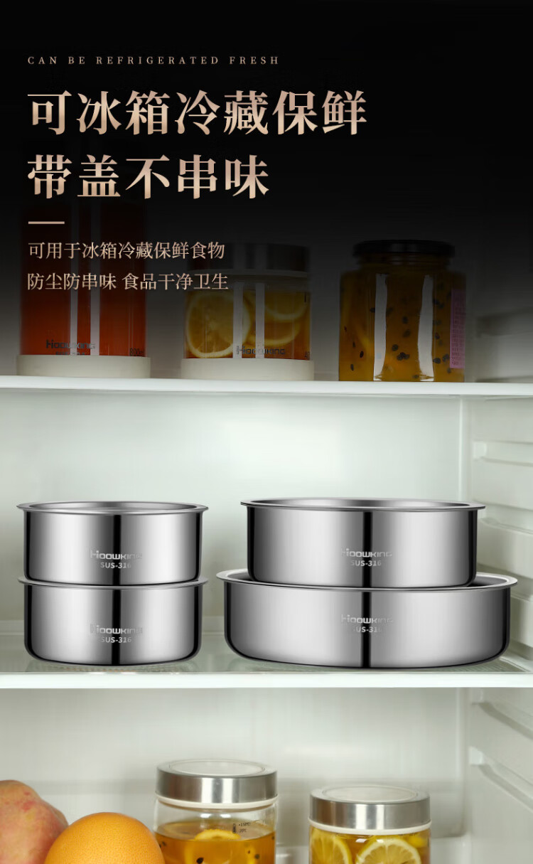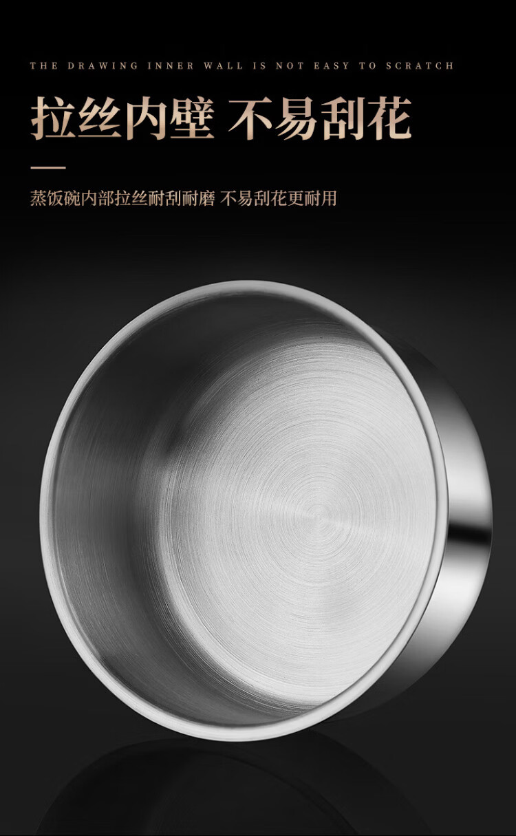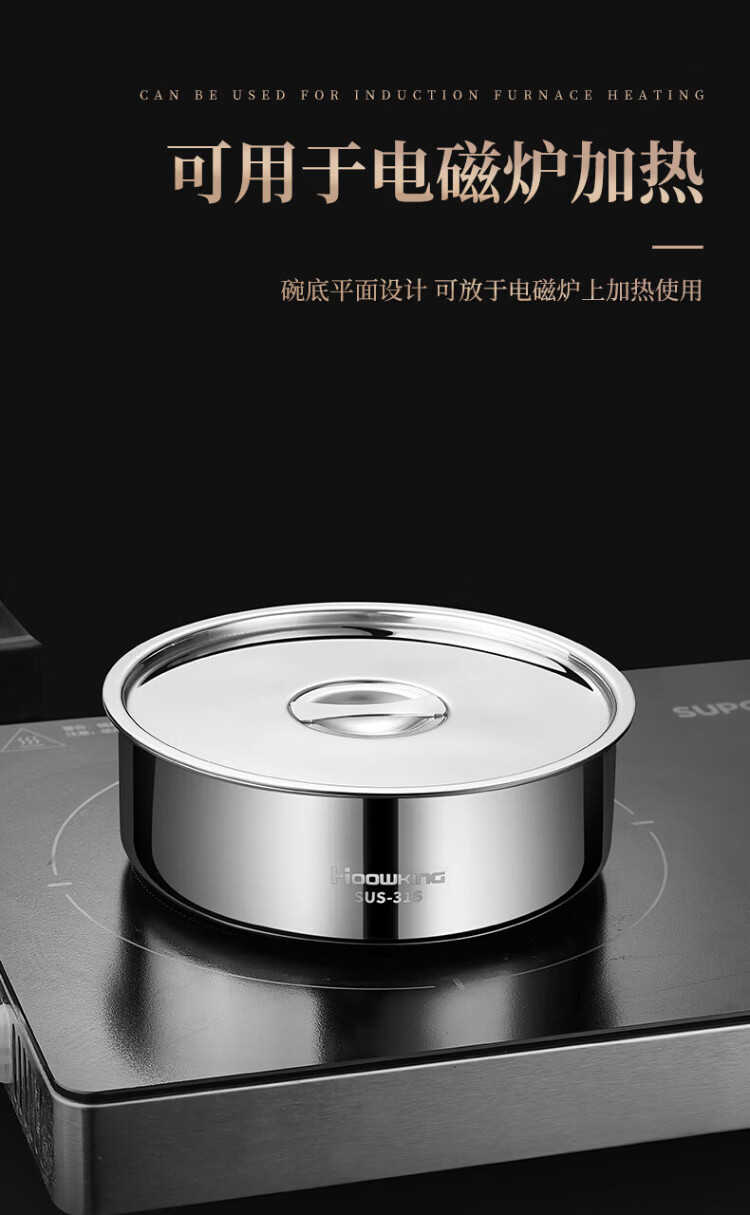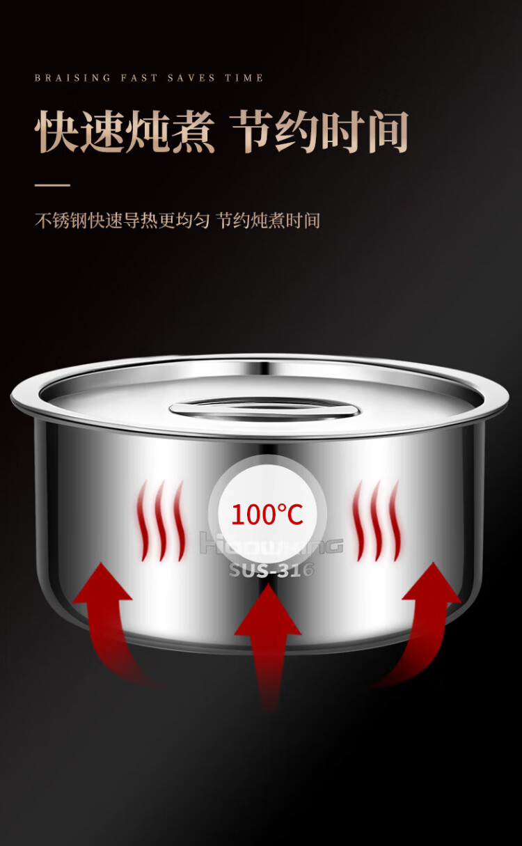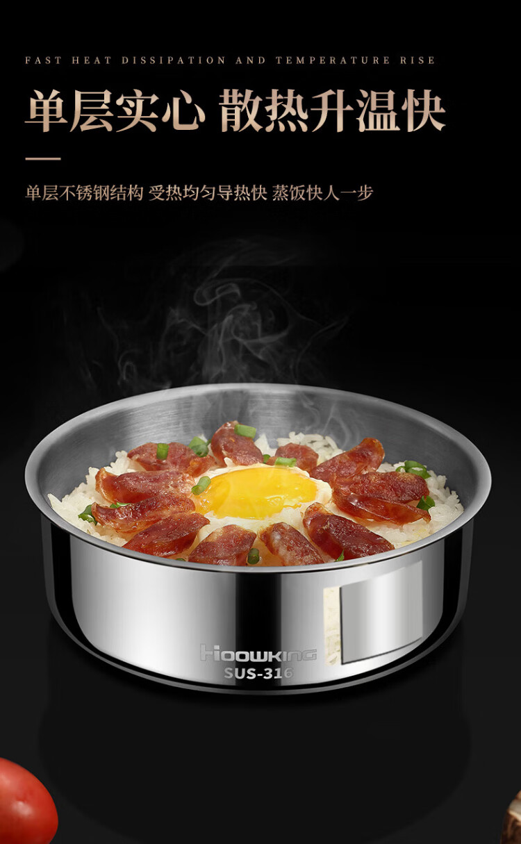 Heqing 316 stainless steel steamed rice bowl, large capacity, household steamed vegetable and egg custard stew pot with lid, thickened soup bowl with lid, steaming bowl, large size 18CM 316 stainless steel