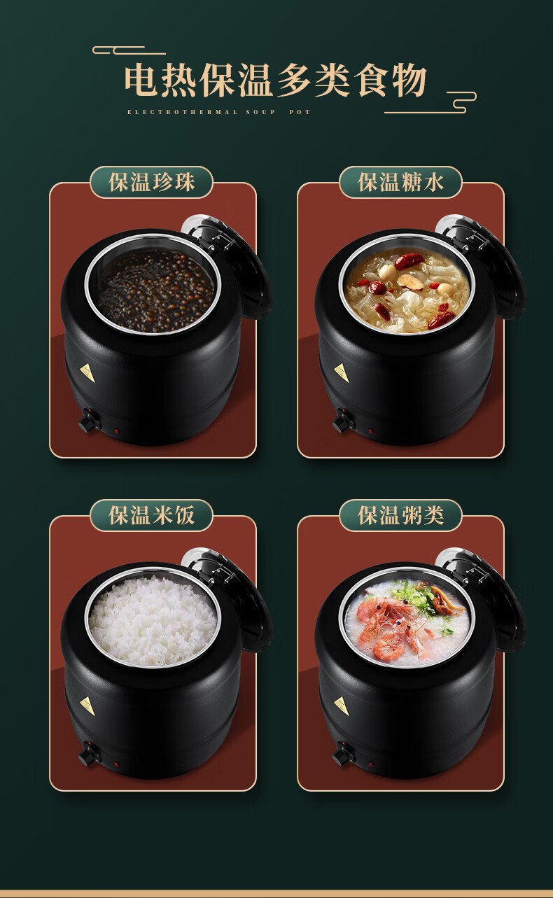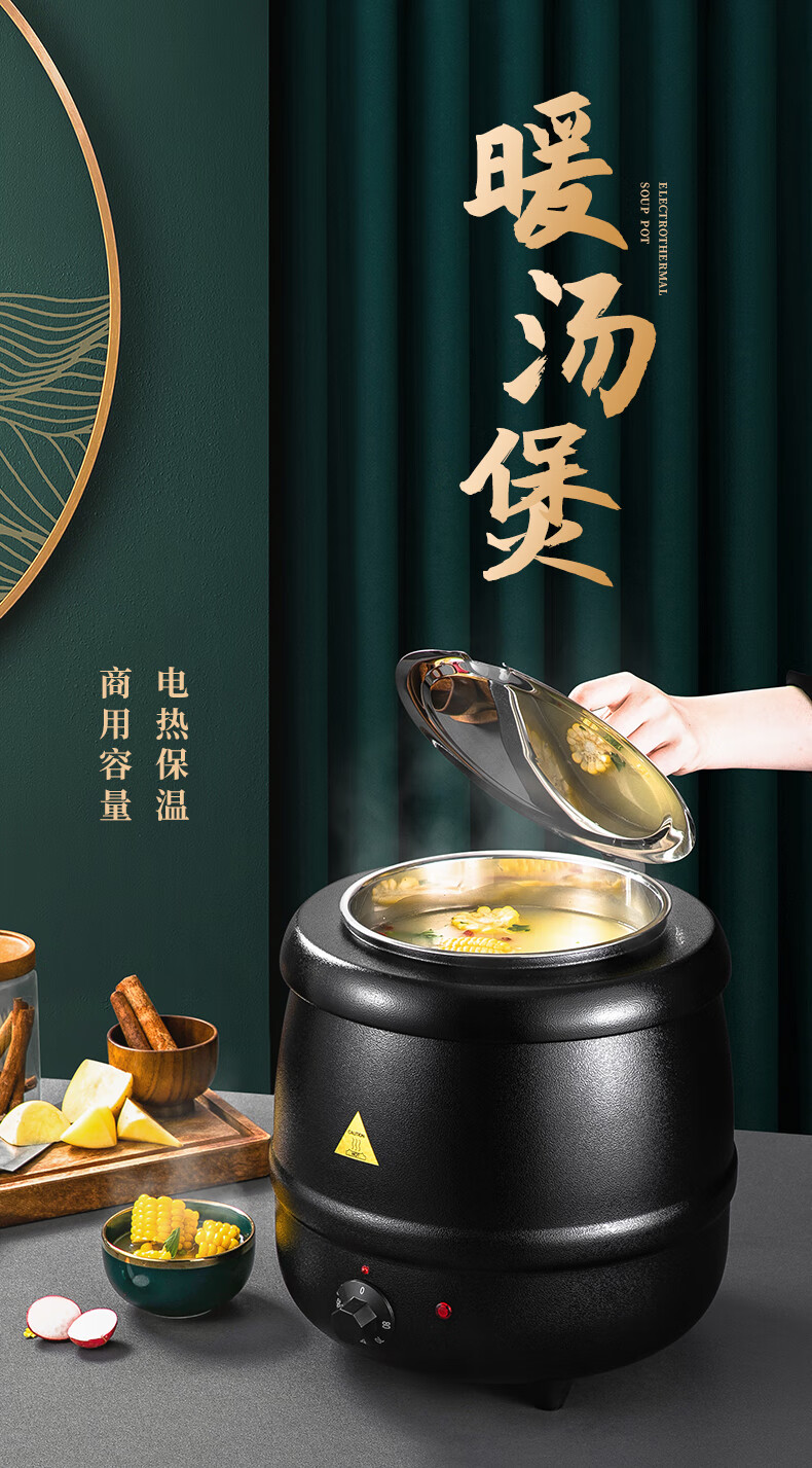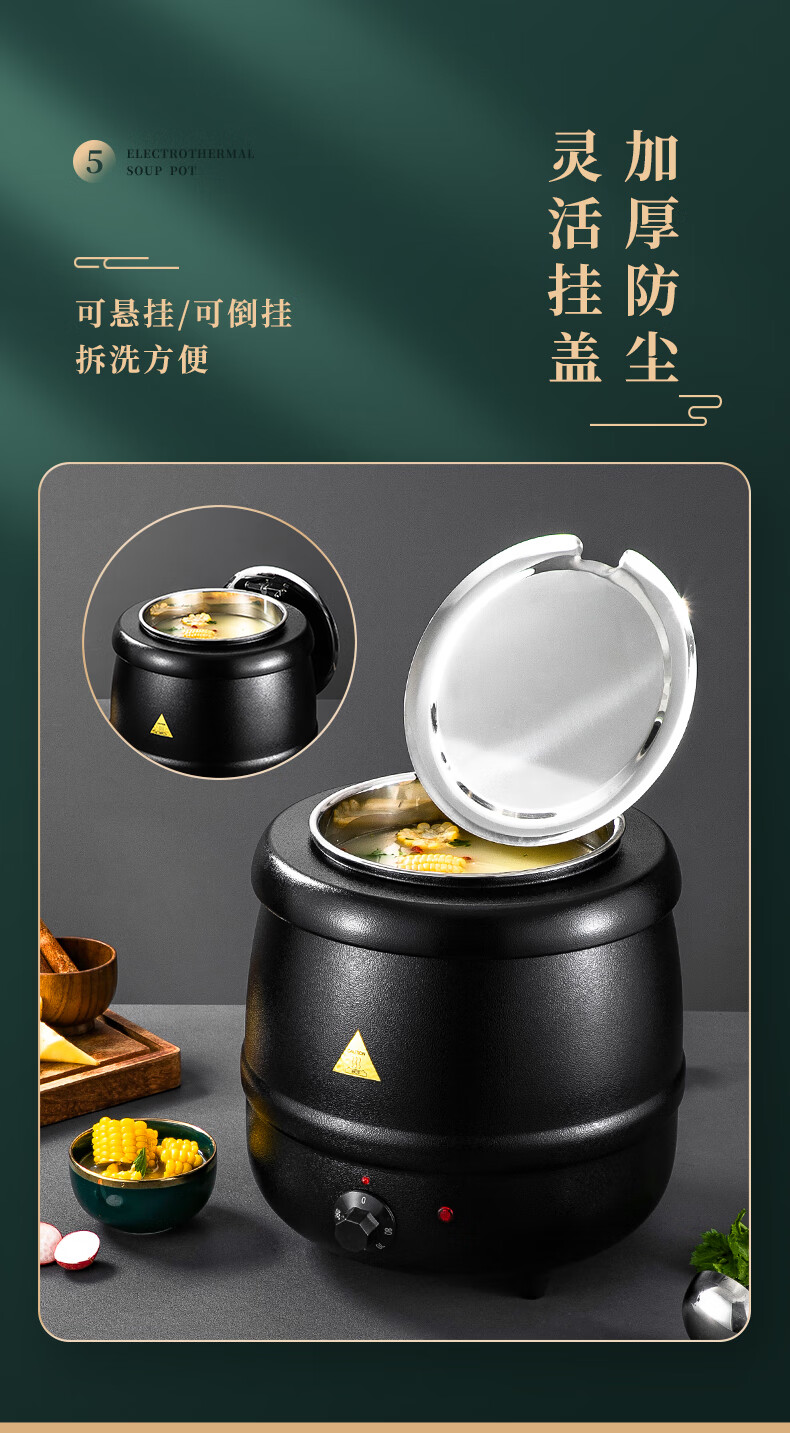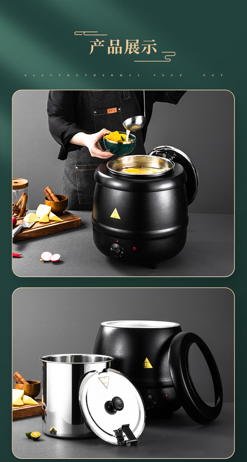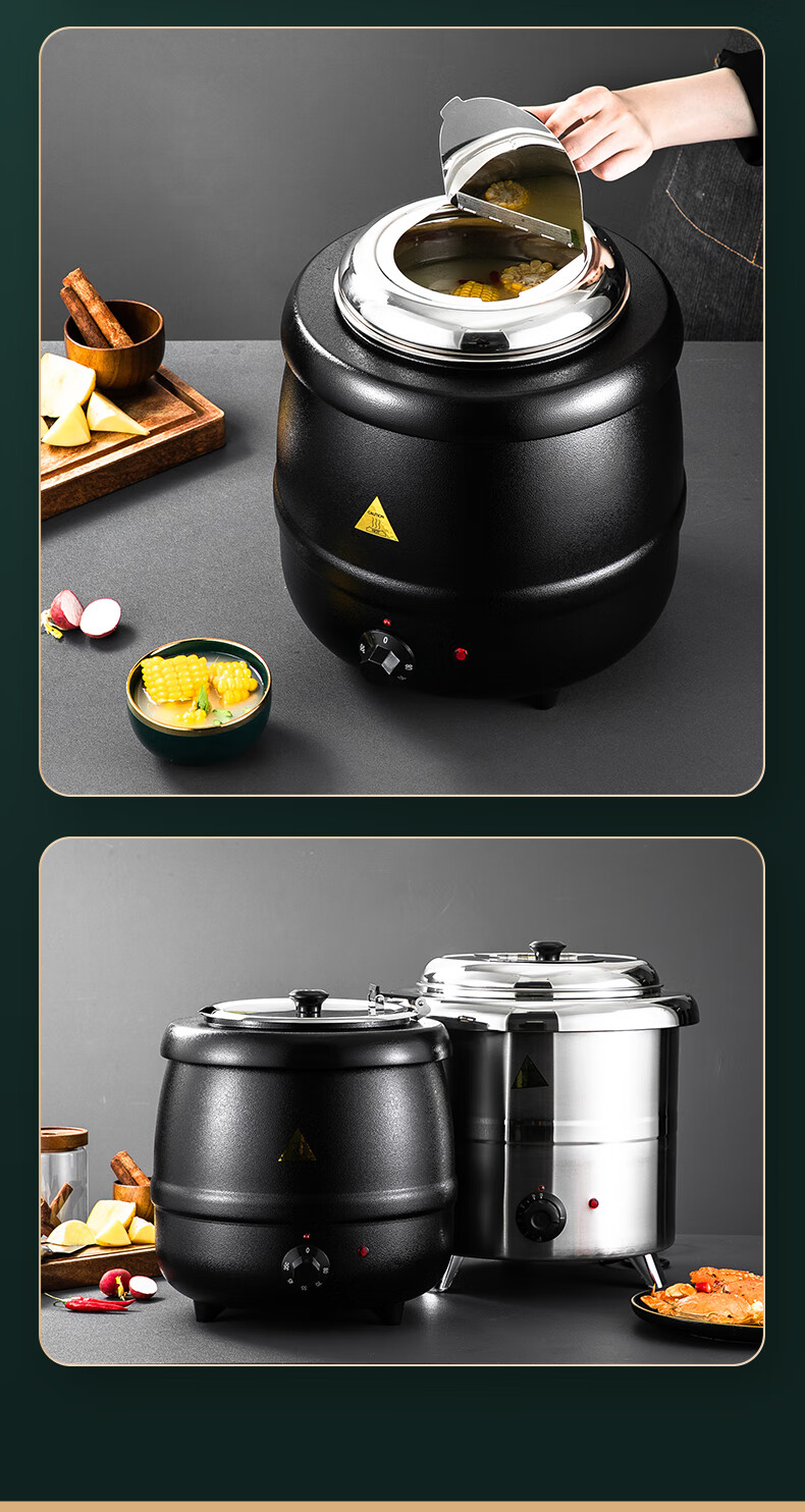Venus Electronic Warm Soup Pot Commercial Insulated Bucket Soup Pot Warm Porridge Bucket Porridge Pot Electric Heating Insulated Pot Electric Heating Soup Stove 10L Black Drum Type Warm Soup Pot 304 Liner