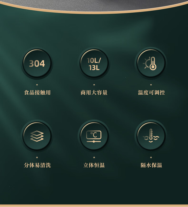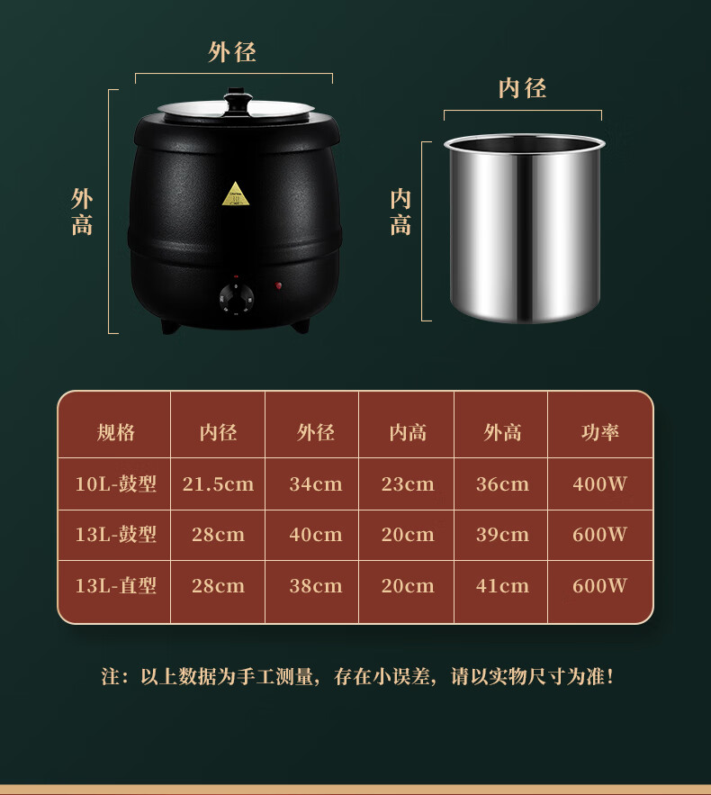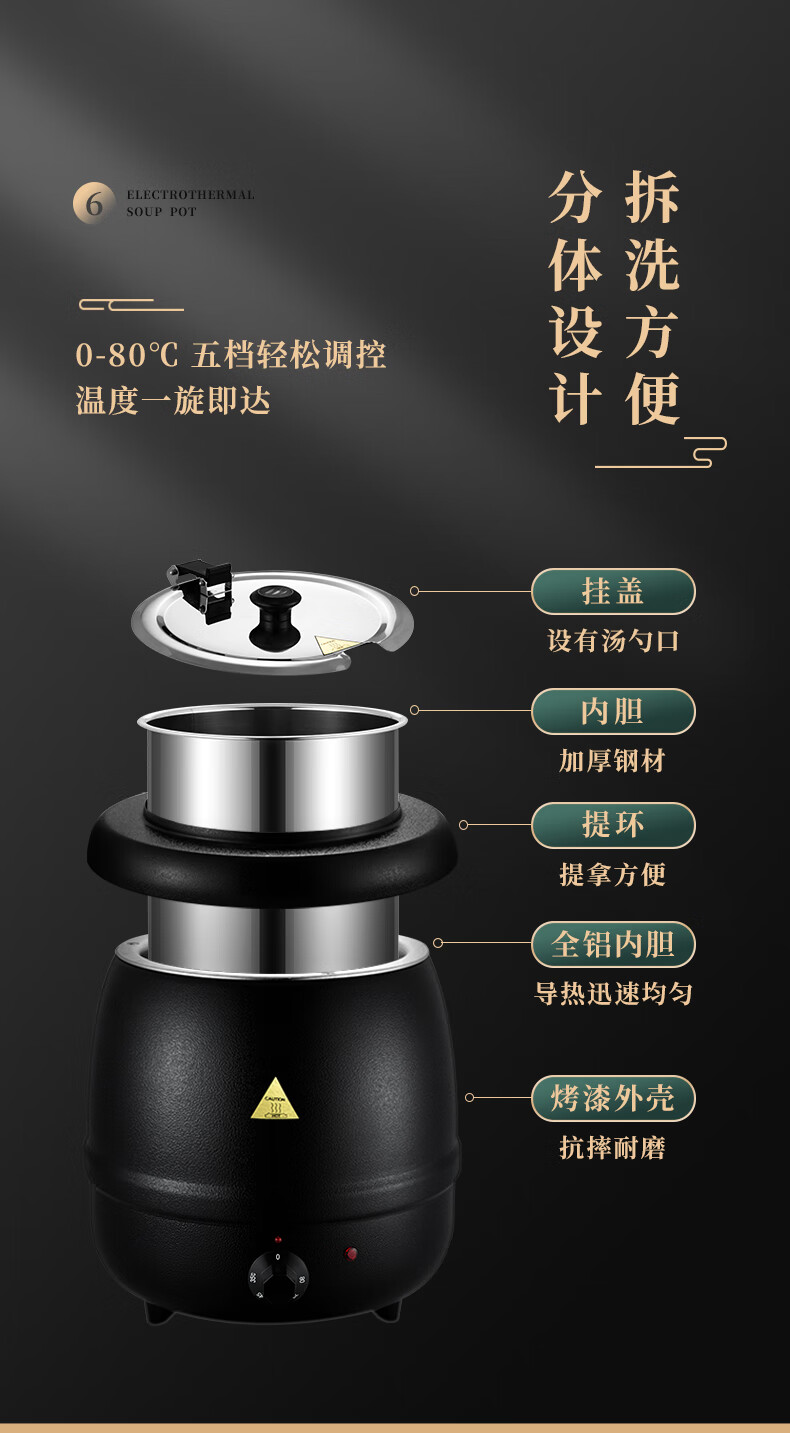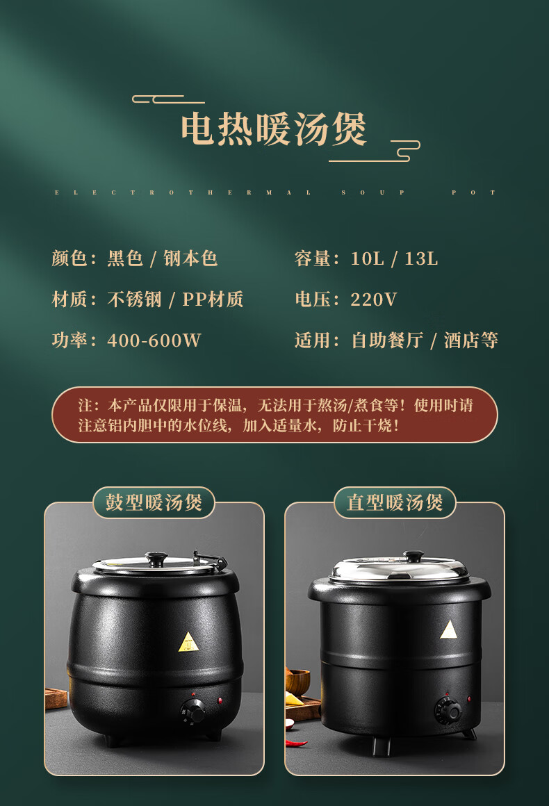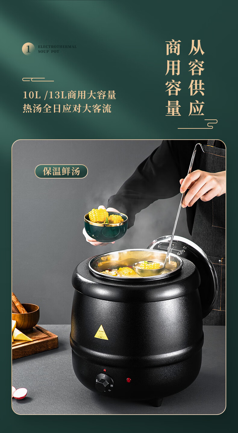 Venus Electronic Warm Soup Pot Commercial Insulated Bucket Soup Pot Warm Porridge Bucket Porridge Pot Electric Heating Insulated Pot Electric Heating Soup Stove 10L Black Drum Type Warm Soup Pot 304 Liner