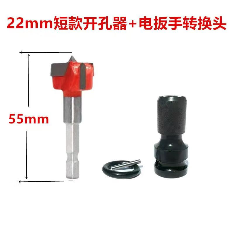 Youshu hexagonal handle 6.35 hole opener drill bit cabinet door panel woodworking hole expander hole opener electric wrench ultra short ultra short hole opener 20mm + electric wrench adapter sold out and super easy to use