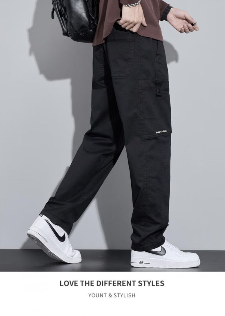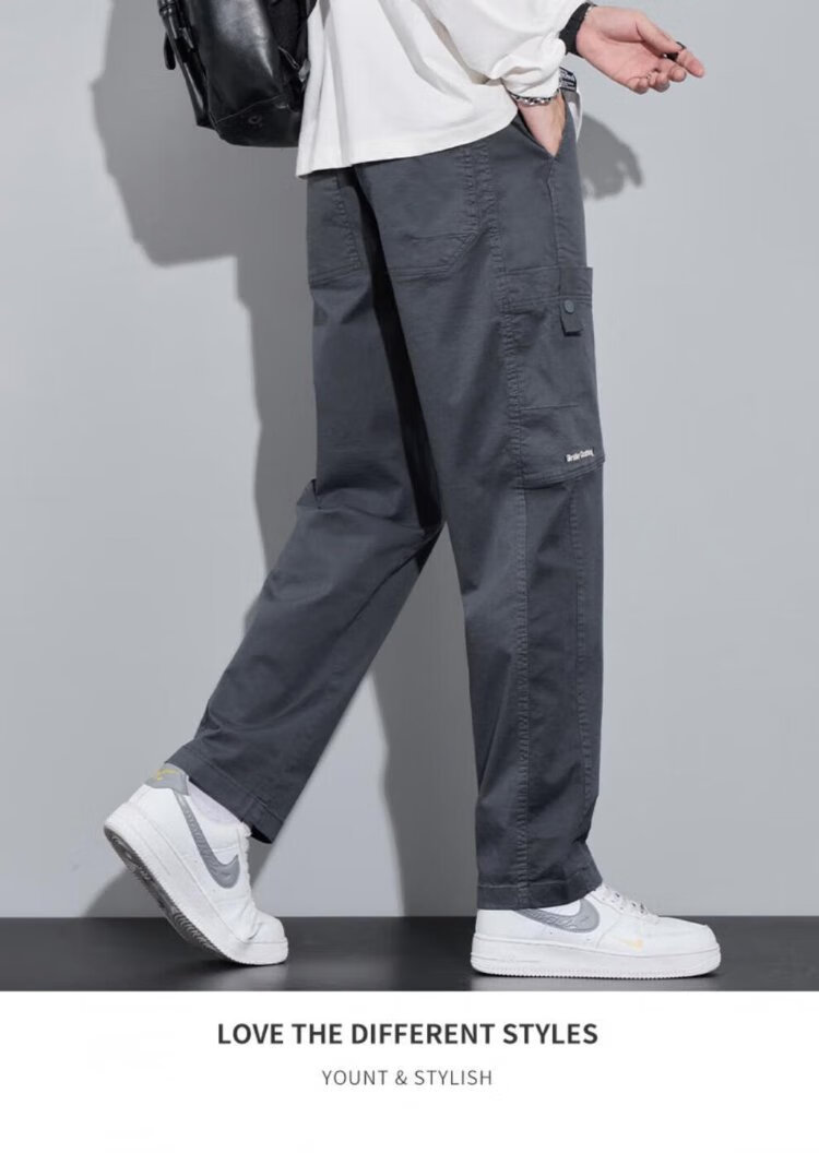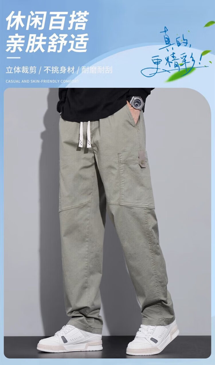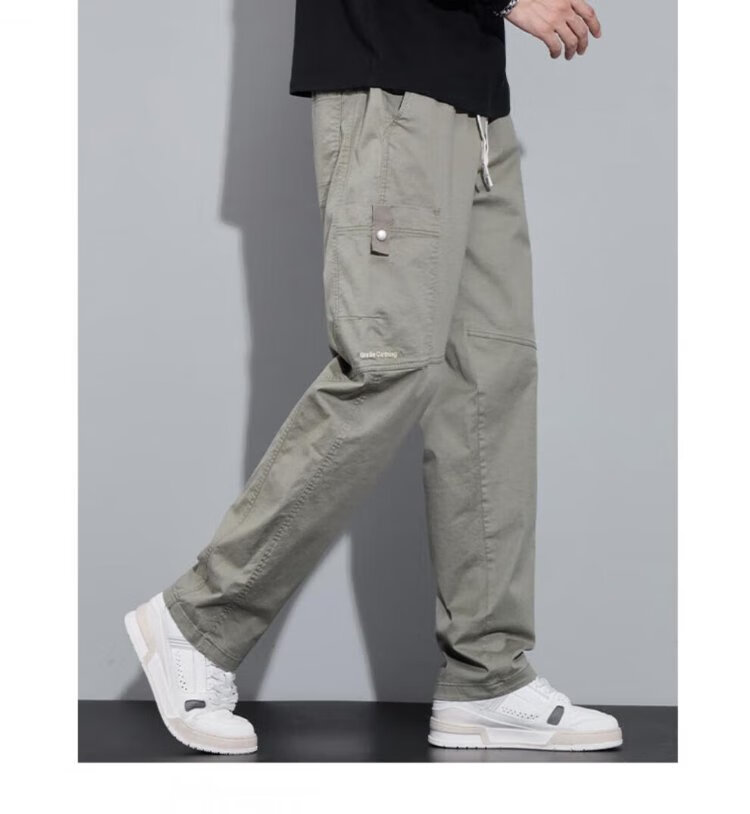 JEEP SPIRIT Jeep pure cotton casual pants men's workwear 2025 new autumn and winter loose straight American trendy brand wide leg long pants 2403 gray green high quality fabric XL recommended 135-155Jin Jin equals 0.5 kg