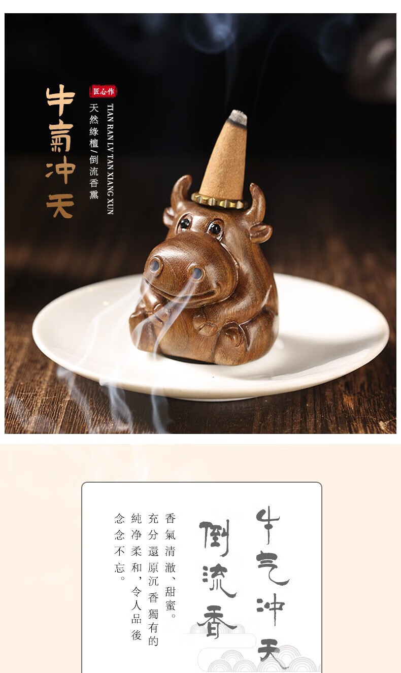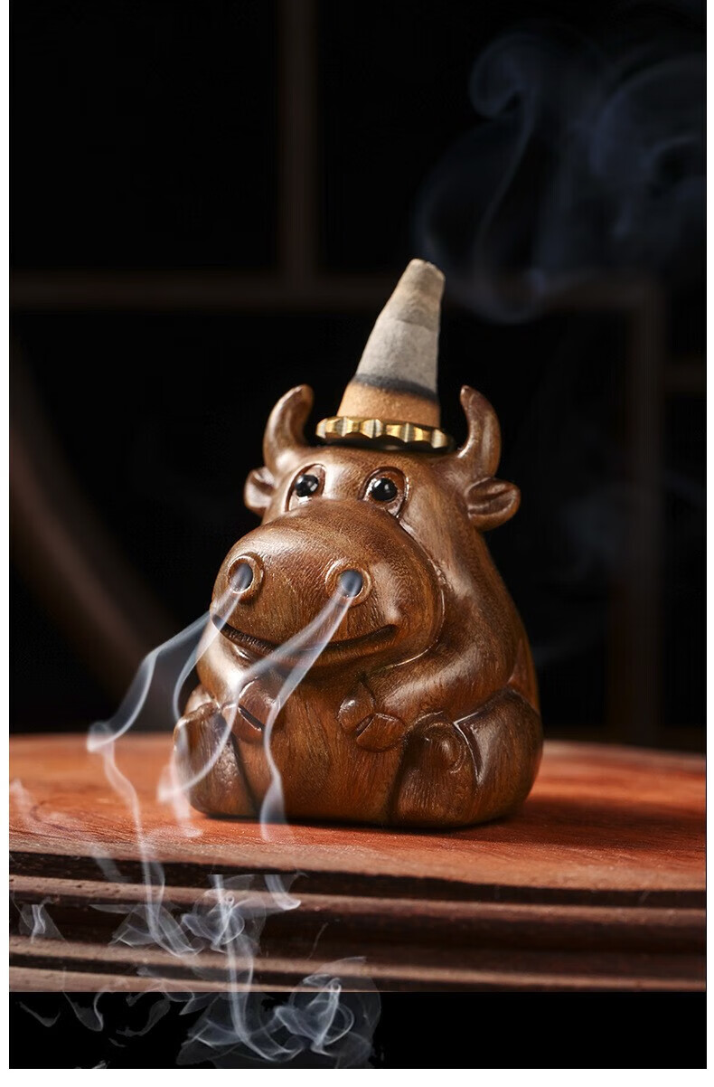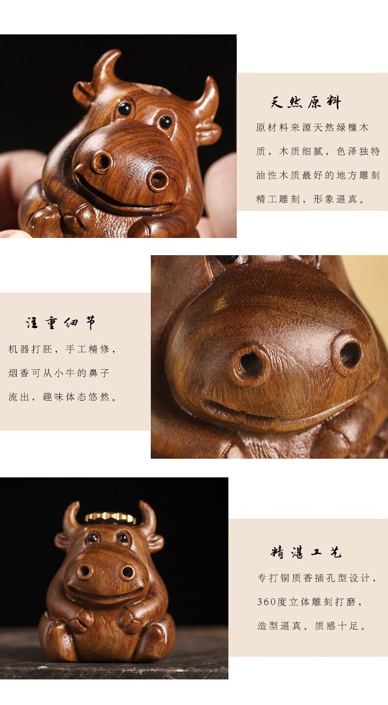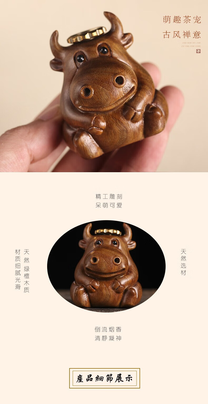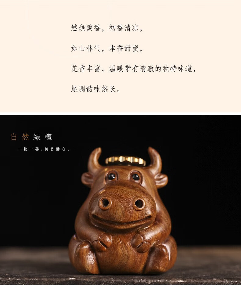 Green sandalwood carving cute calf soaring backflow aromatherapy stove ornaments living room study two nostrils smoking green