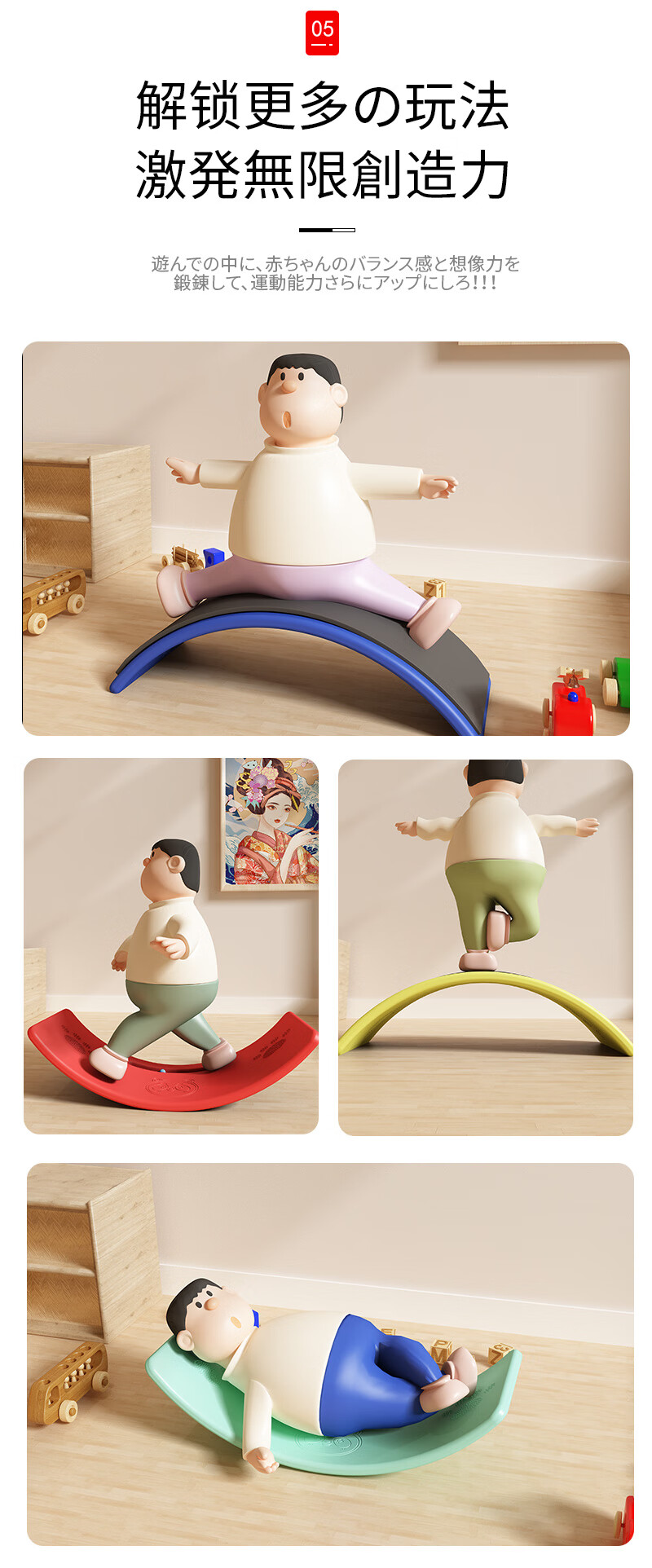 Seesaw Children's Indoor Smart Board Balance Board Sensory Training Equipment Home Focus Bend Board Toy Fully Anti-Slip Increased Ball Board Green Load-bearing 200 Jin Jin equals 0.5 kg