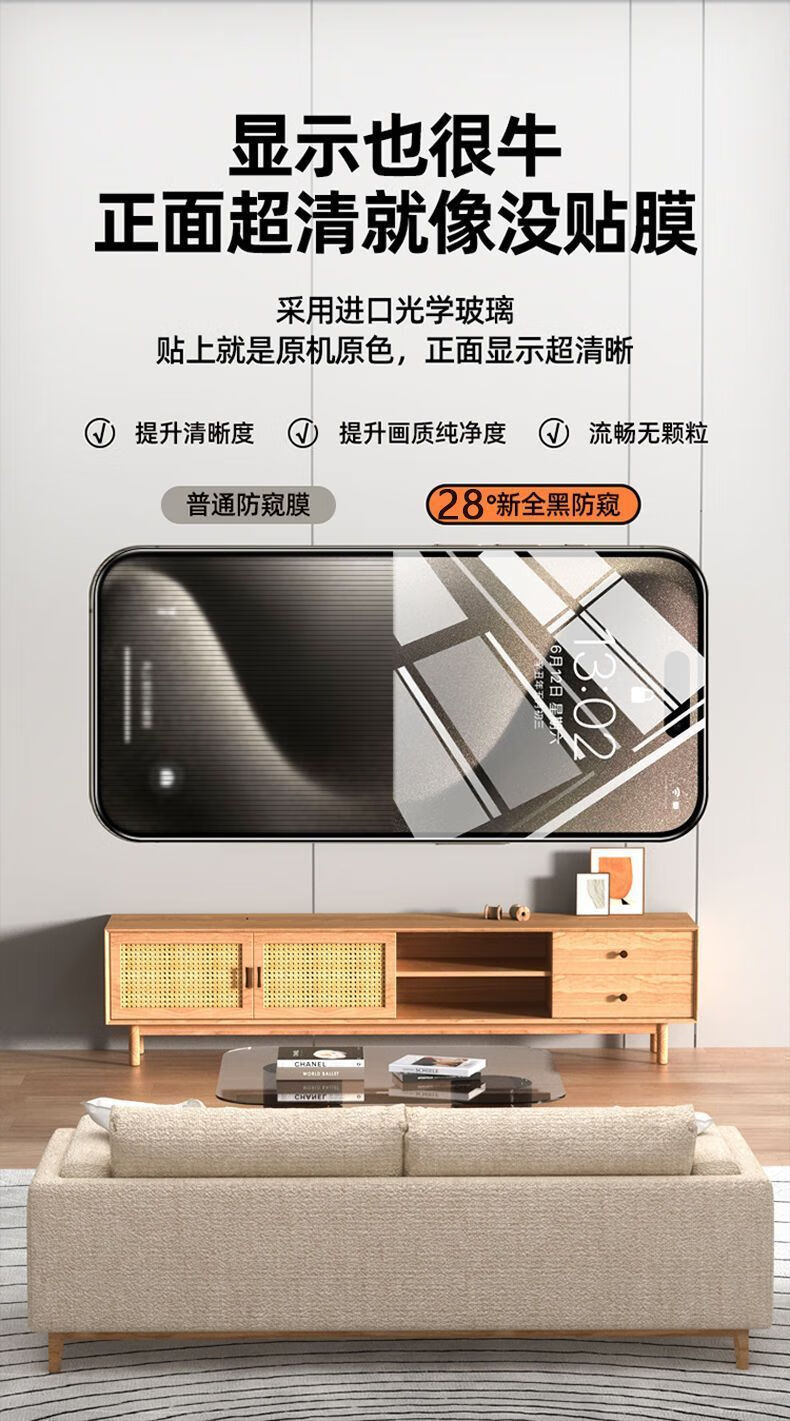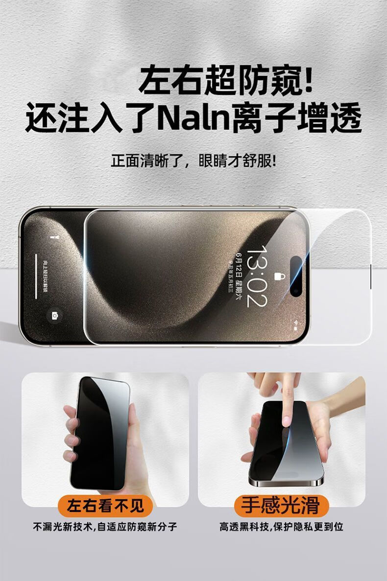 Apple iPhone 16 Pro/Tempered film without black edges, HD, anti-peep, ultra-HD, extremely transparent, ultra-clear model, 3 pieces, iPhone 12 Mini