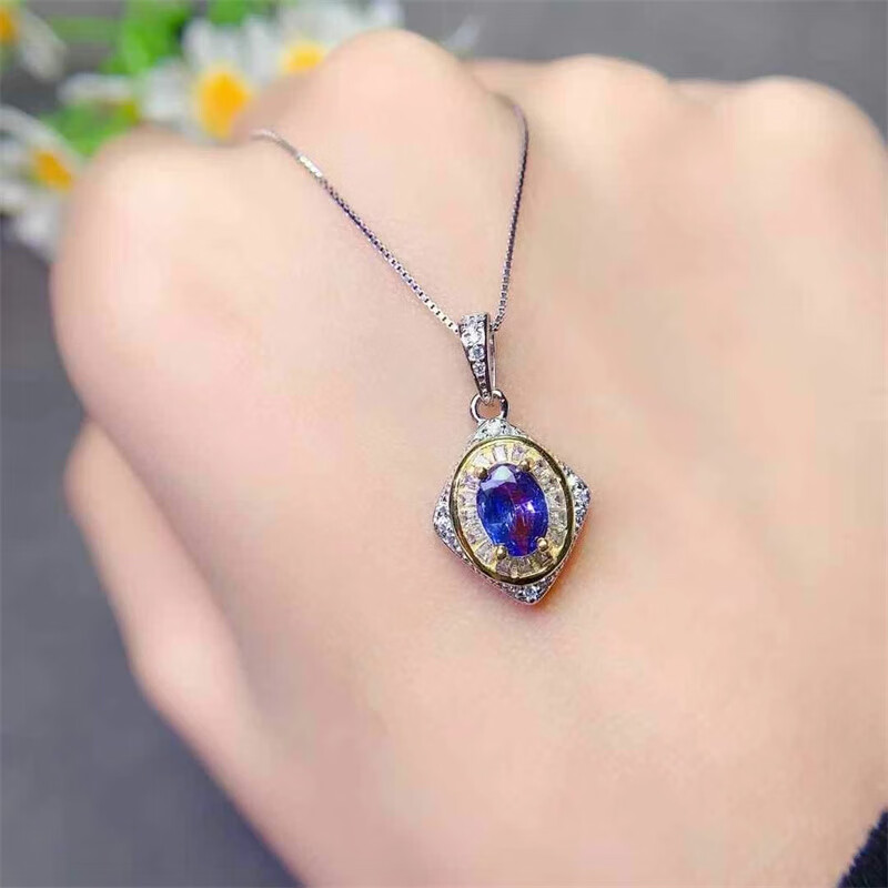 Fujiu natural tanzanite pendant for women 925 silver gold-plated two-color gemstone necklace 5*7mm new temperament birthday gift