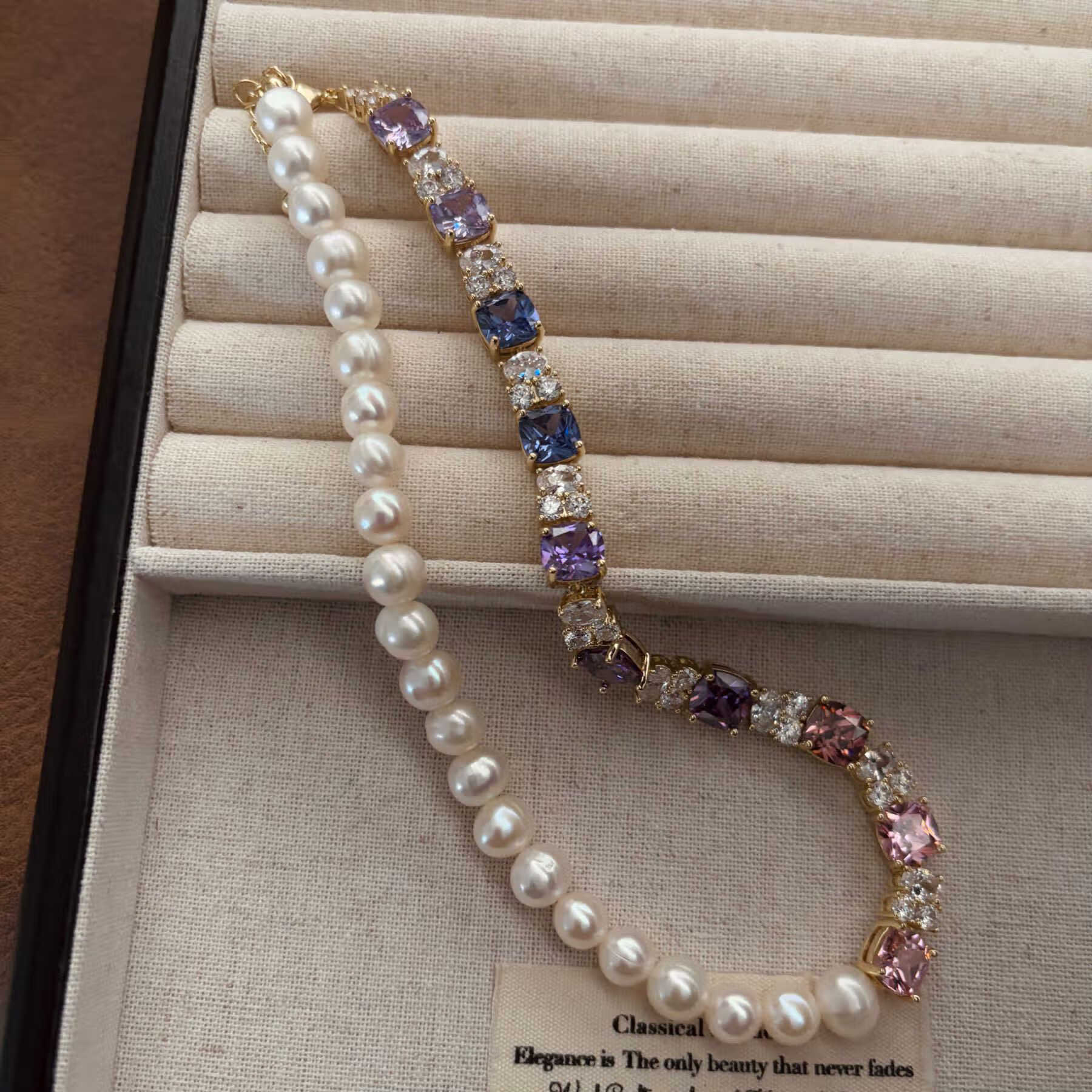 Fukumanta Rose Purple Pearl Spliced Natural Color Tanzanite Zircon Necklace Light Luxury High Fashion Sweater Chain XL0211