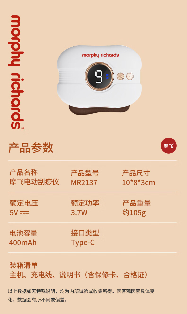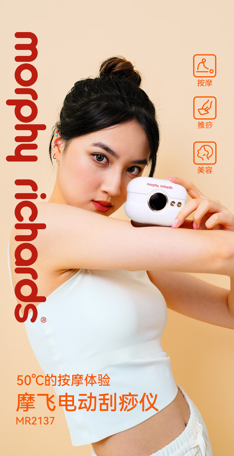 MORPHYRICHARDS Electric Massage Board Smart Mini Red Bianstone Massager Facial Shaving Instrument Portable Home Hot Compress Neck Leg Back Universal MR2137 (Type-c)