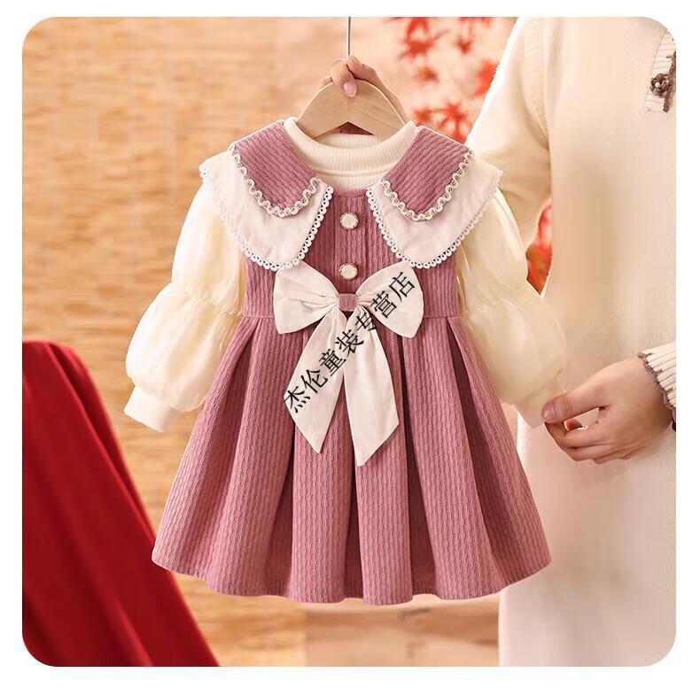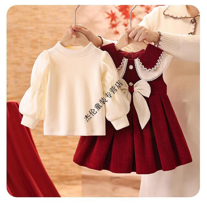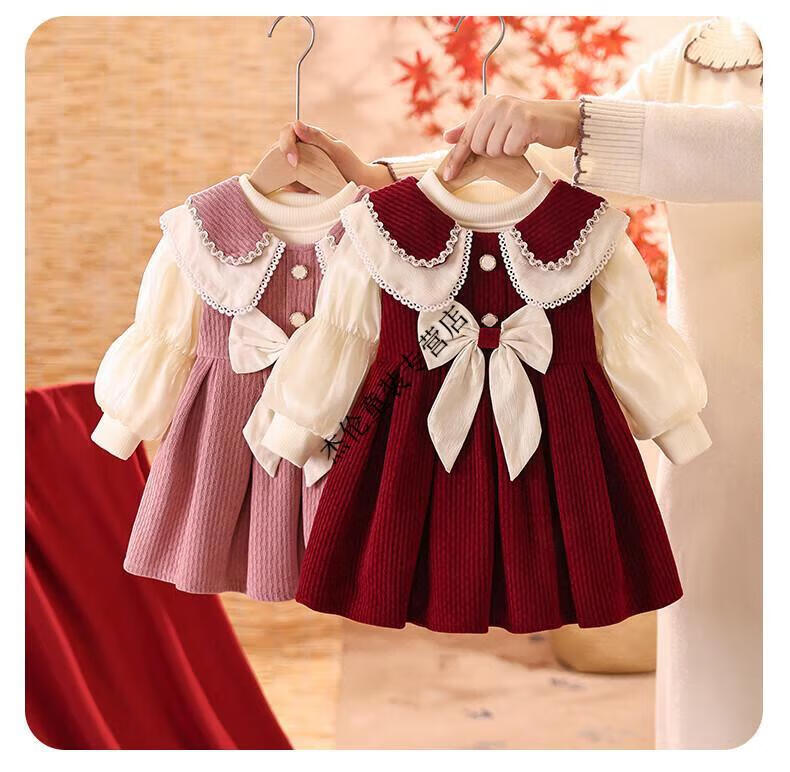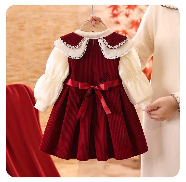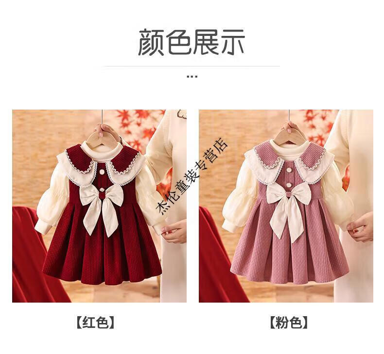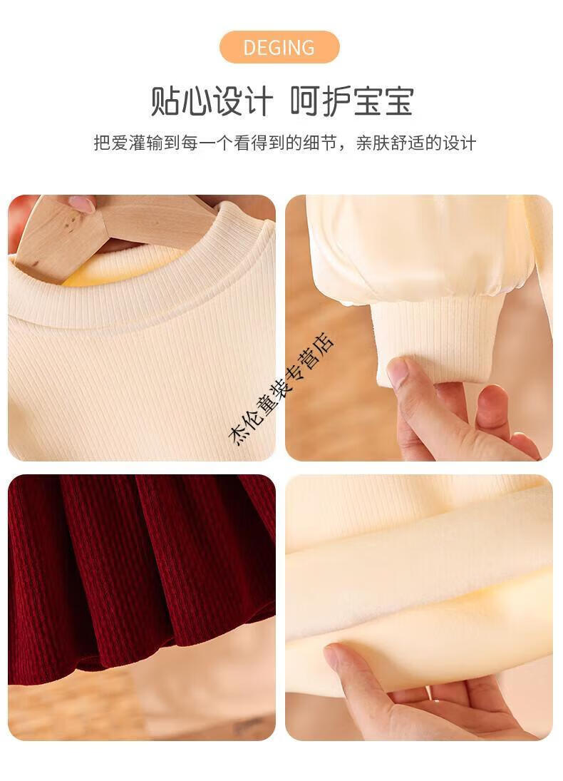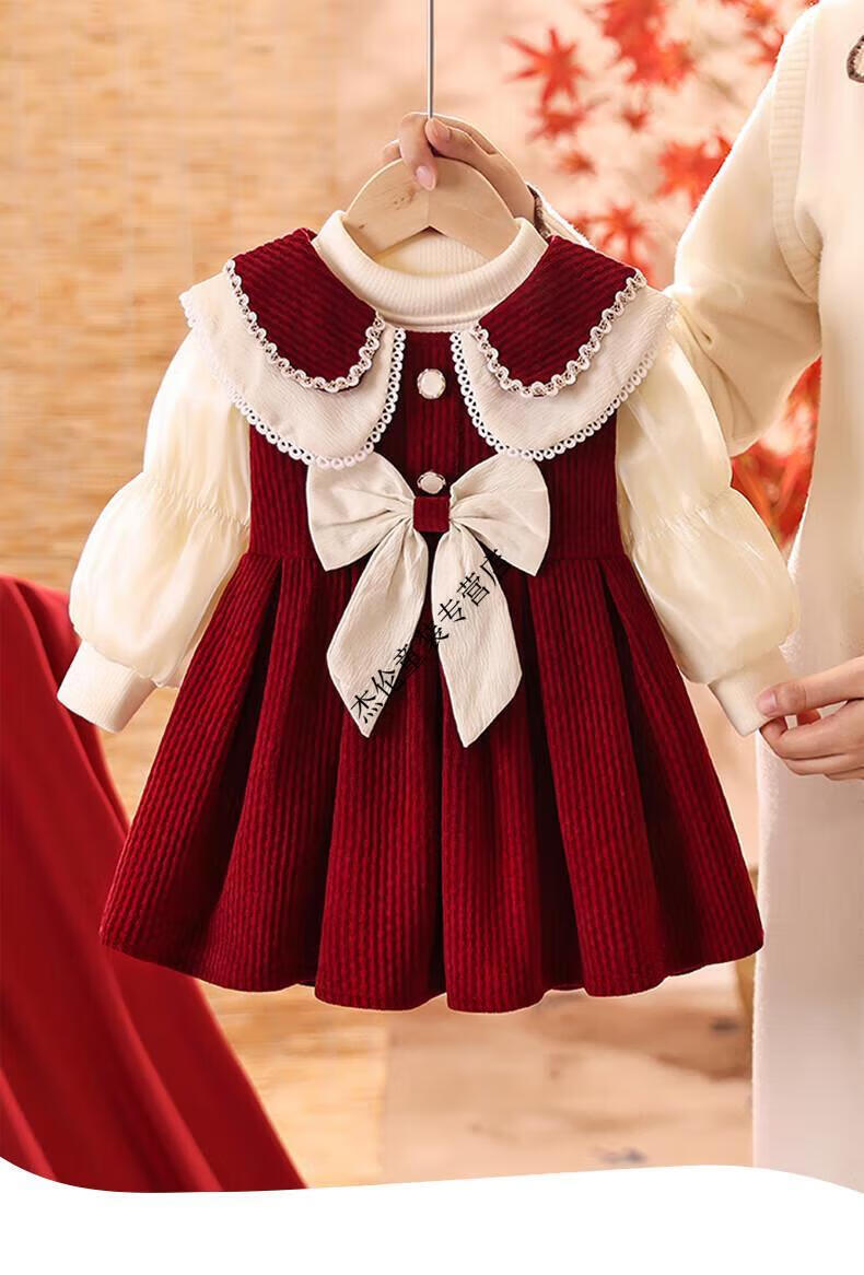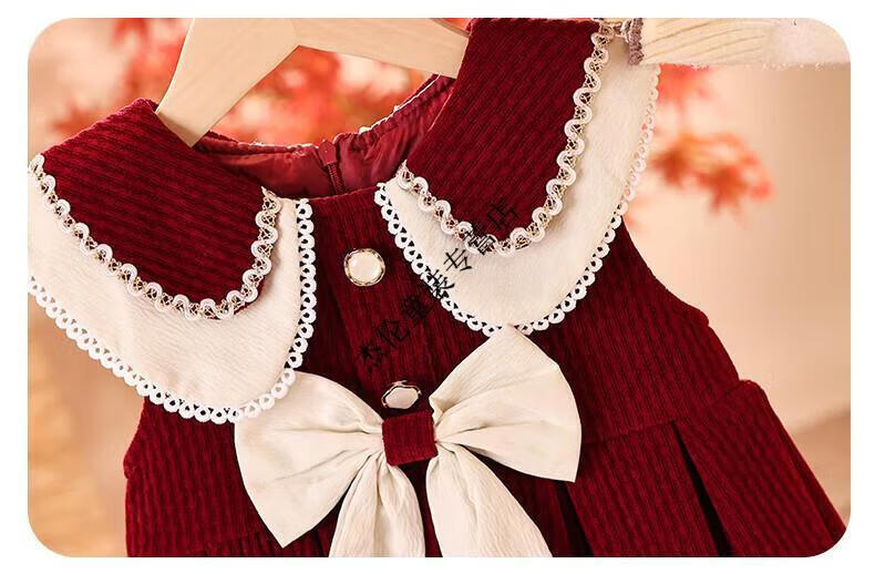 G.duck little yellow duck girls dress two-piece set 2026 autumn and winter new style baby one-year-old dress plus velvet princess dress red autumn and winter plus velvet 100 cm