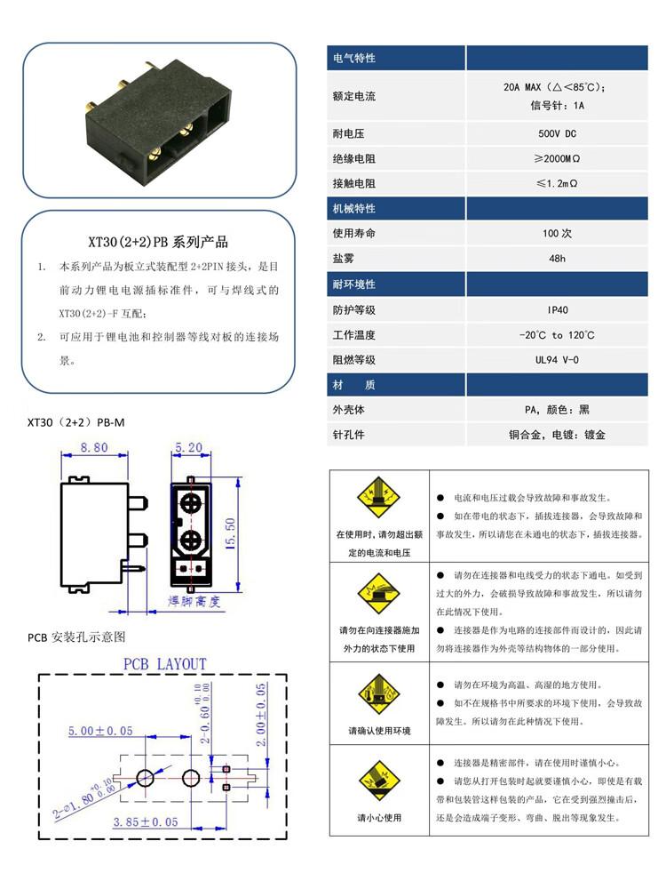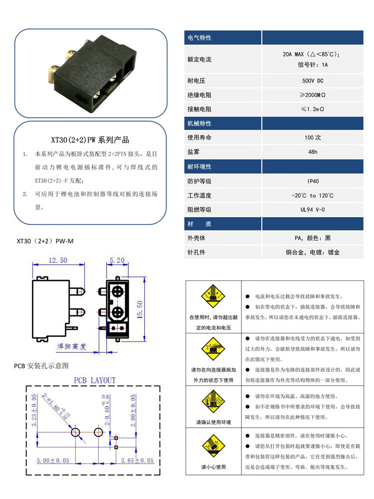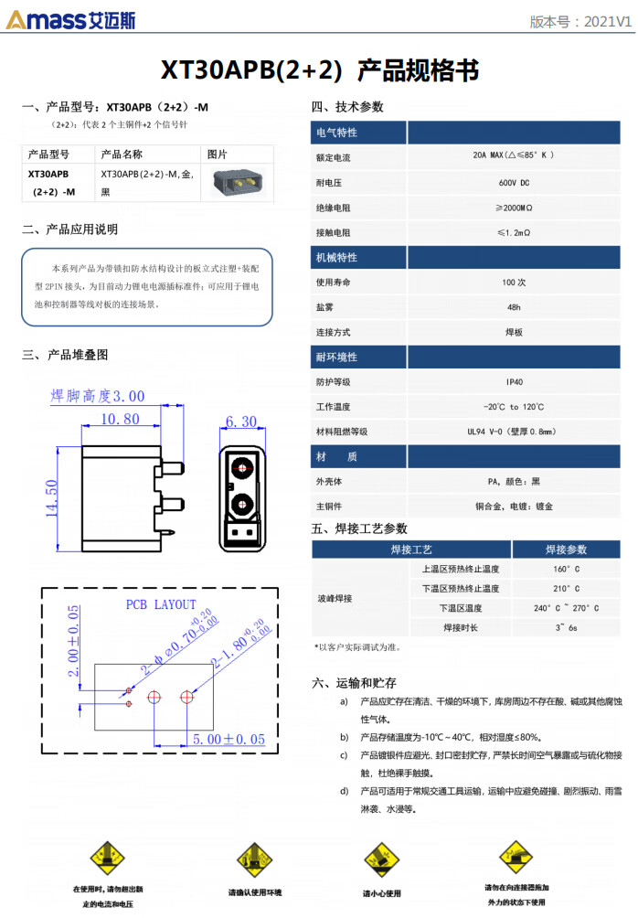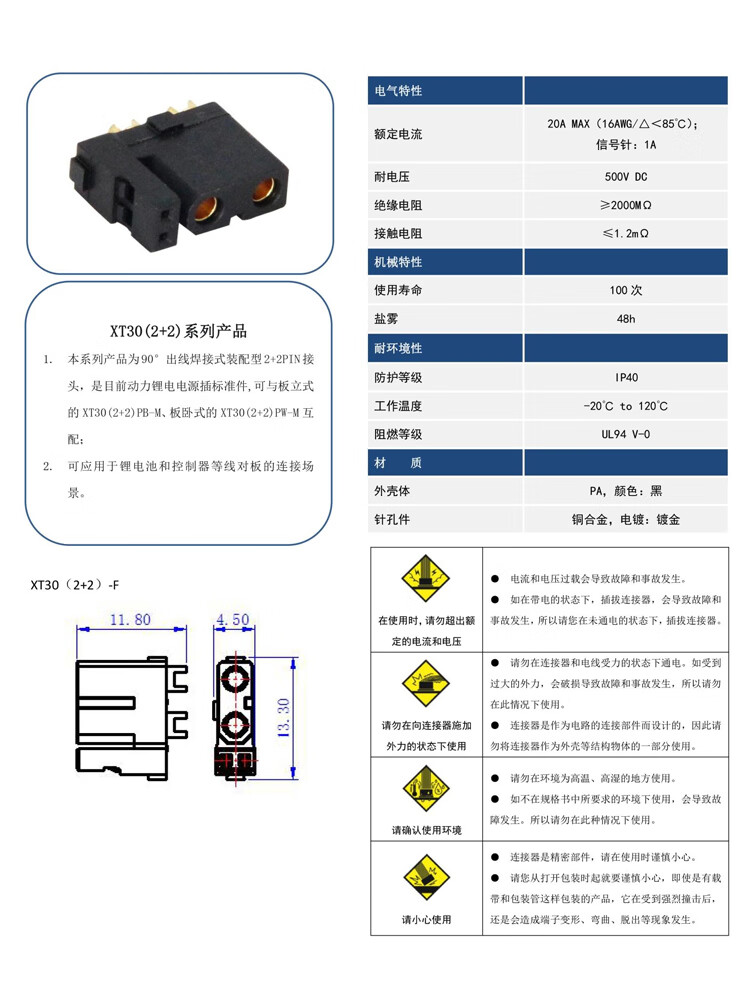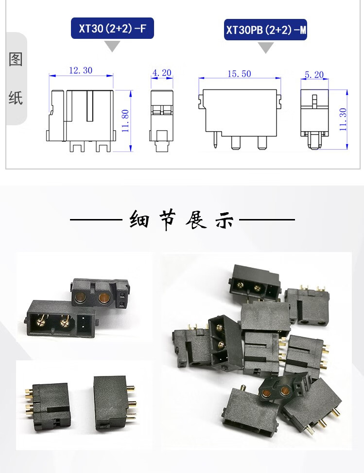 Genuine Amass XT30 plug with signal pin XT30(2+2)PB/PW-MXT30(2+2)-F