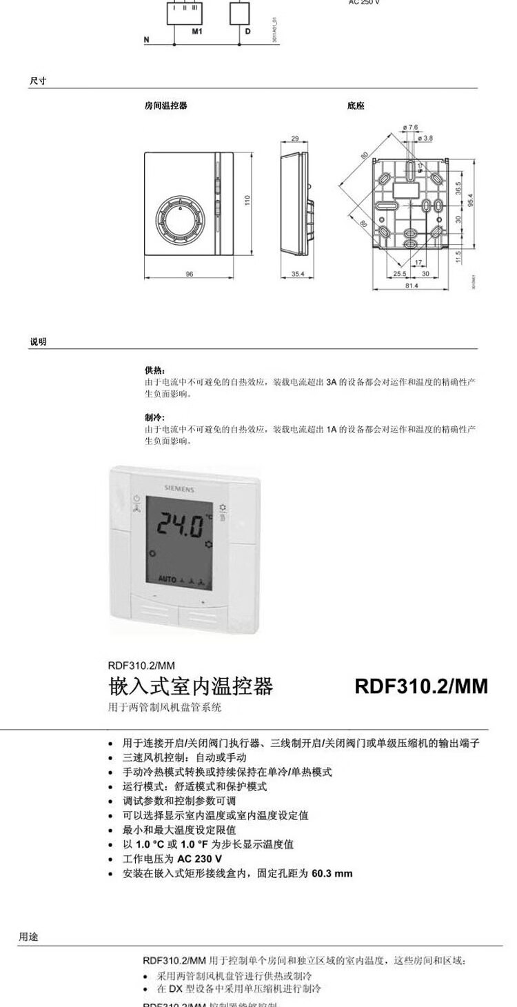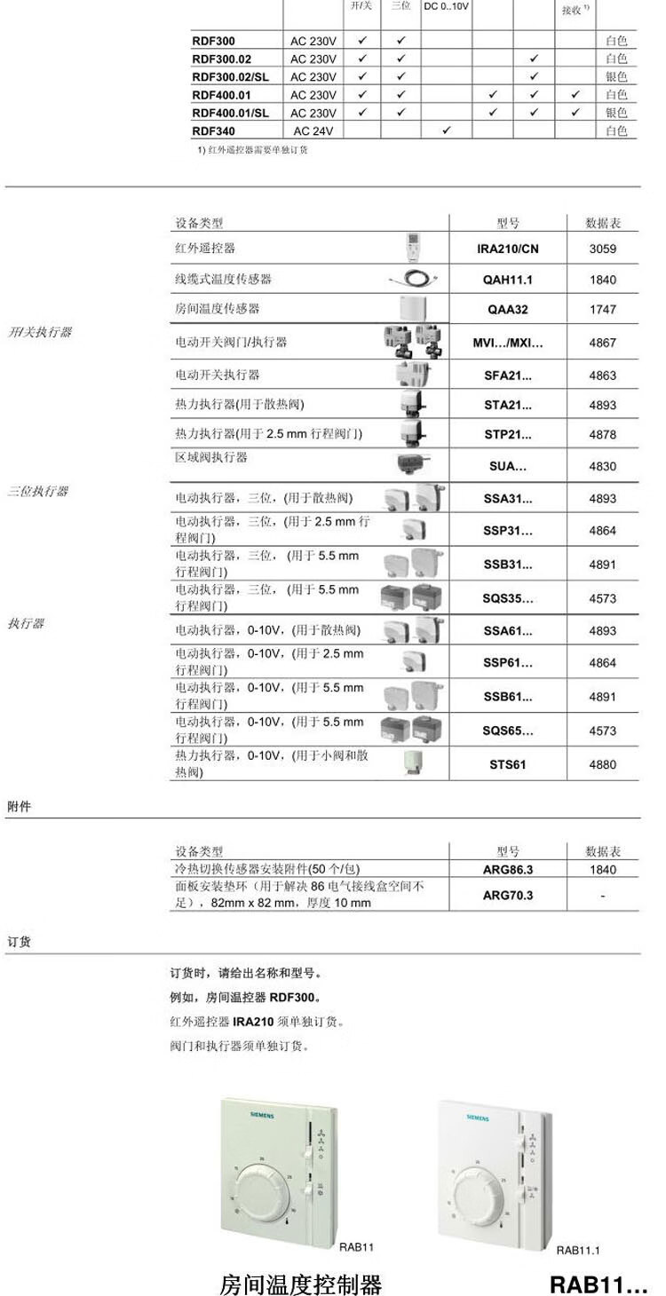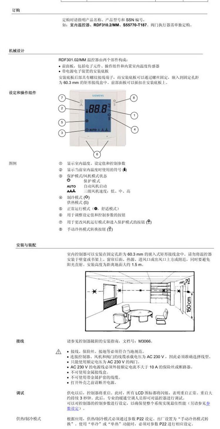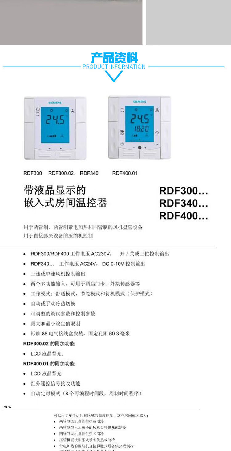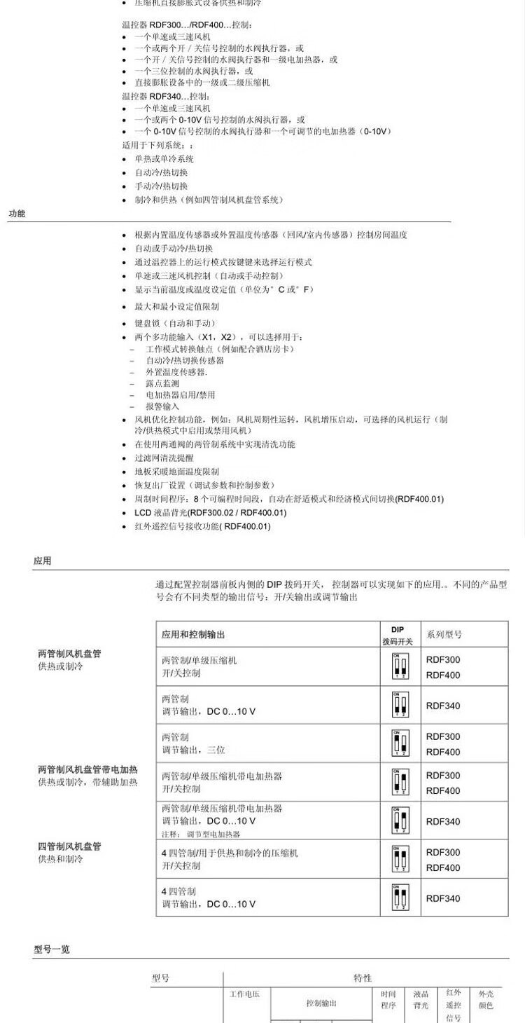Siemens air conditioning temperature control panel RDF/300.02/340/510/530/310.2/302.B/MM/302 RDF340