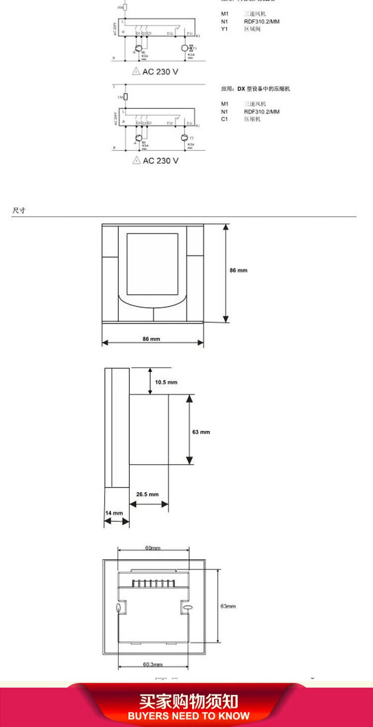 Siemens air conditioning temperature control panel RDF/300.02/340/510/530/310.2/302.B/MM/302 RDF340