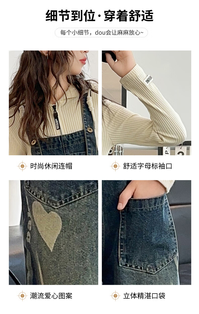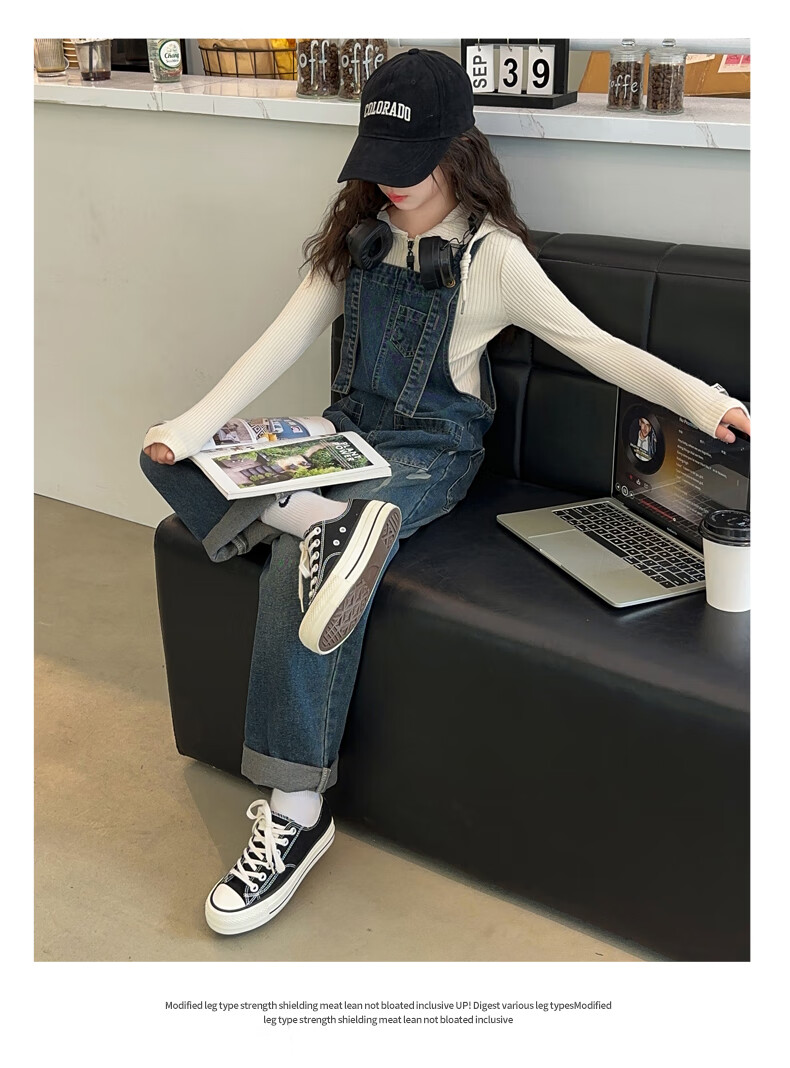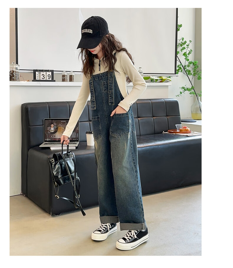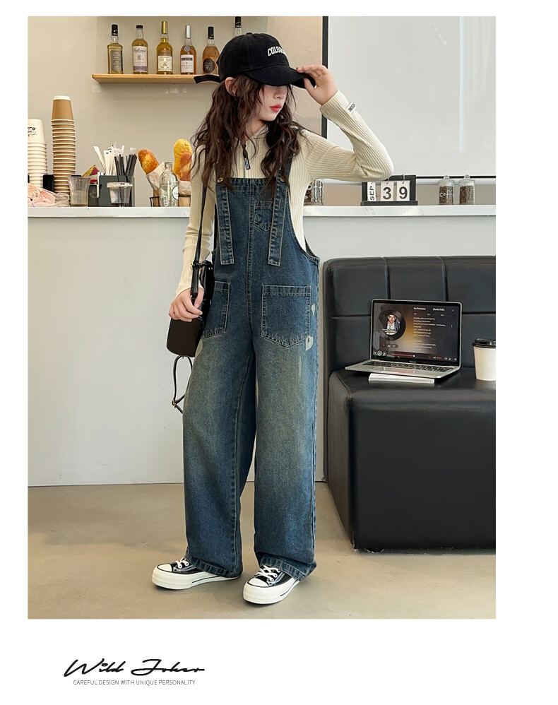 Maidou Xiong Girls Internet Celebrity Overalls Set New Spring and Autumn Clothing Medium and Large Children's Fashionable Denim Overalls Two-piece Set Single-piece Overalls Front Pocket Style 150