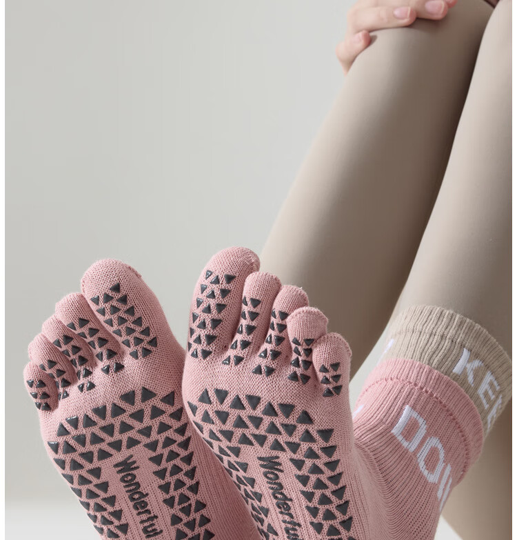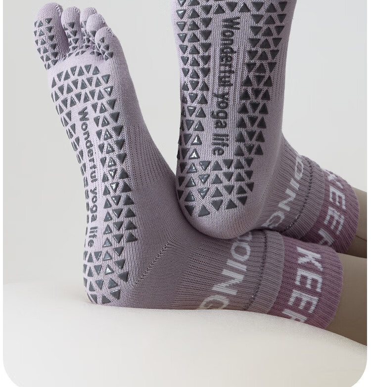 LangSha (LangSha) yoga socks non-slip women's Pilates five-finger socks sports fitness split-toe socks indoor training mid-calf stockings, optional five-finger silicone non-slip 2 pairs, one size fits all, 35-42 sizes, no limit on foot size - add to collection and purchase