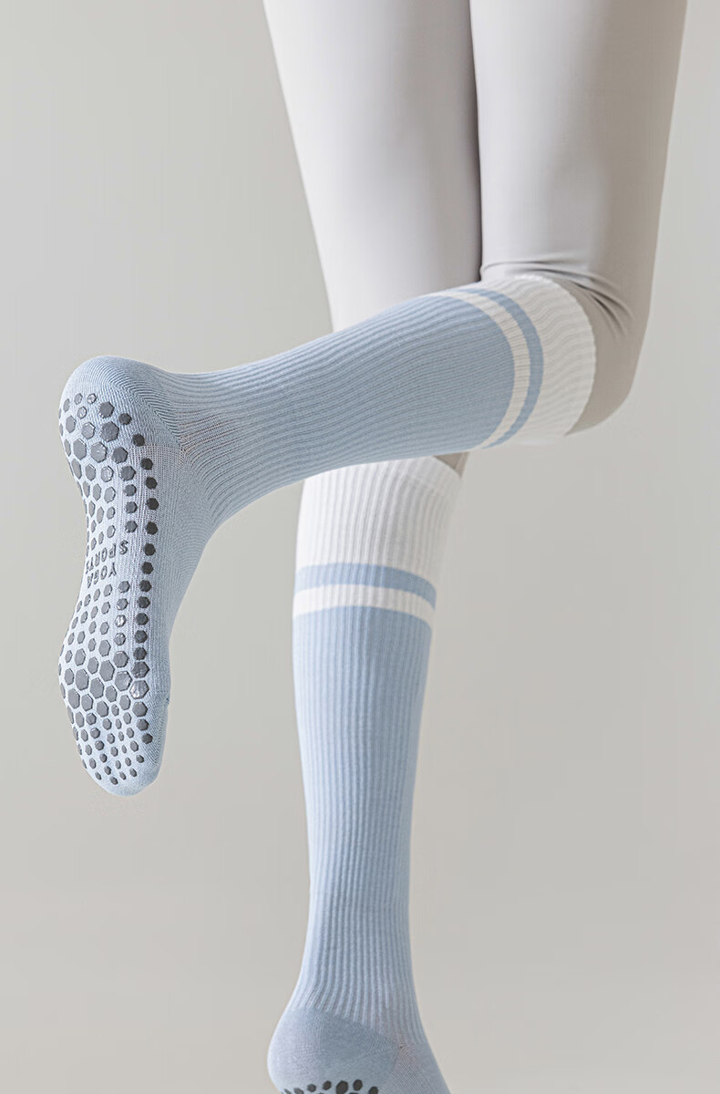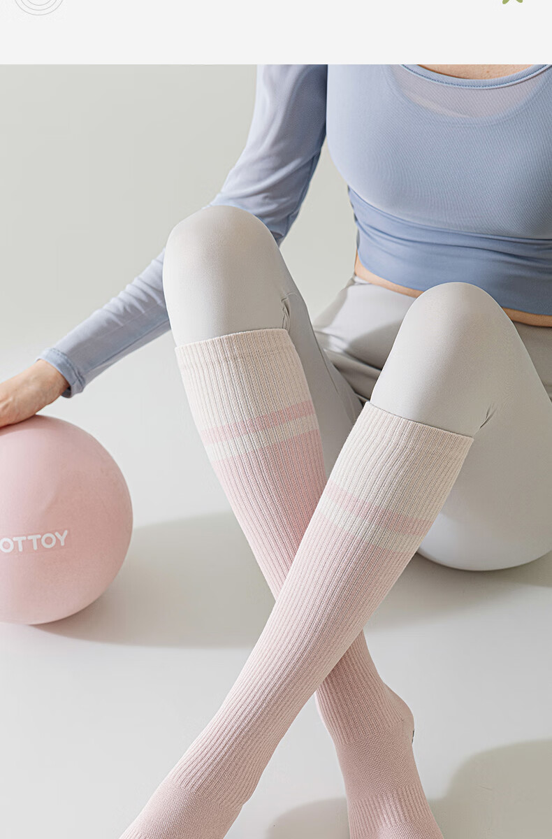 LangSha pressure sports calf socks, spring and autumn yoga socks, non-slip women's fitness socks, summer Pilates stockings, pink, 2 pairs, one size fits all