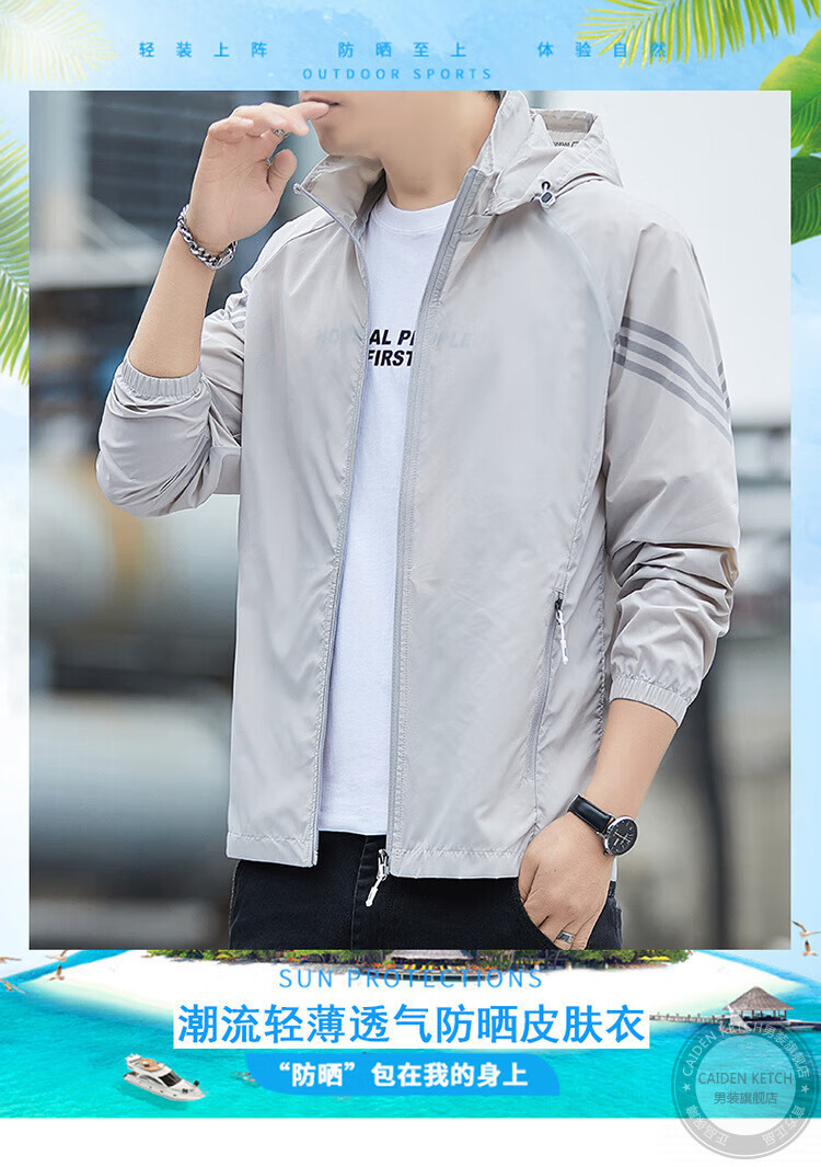 CAIDEN KETCH brand men's sun protection clothing men's 2025 summer new outdoor casual quick-drying fishing clothing thin versatile jacket gray 2XL